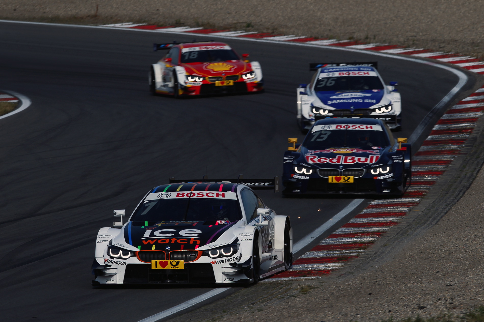 Behind the leading trio, Augusto Farfus (BR, Shell BMW M4 DTM), Bruno Spengler (CA, BMW Bank M4 DTM), Timo Glock (DE, DEUTSCHE POST BMW M4 DTM) and DTM rookie Tom Blomqvist (GB, BMW M4 DTM) came home fourth, fifth, sixth and seventh to complete an extraordinary result for BMW Motorsport.