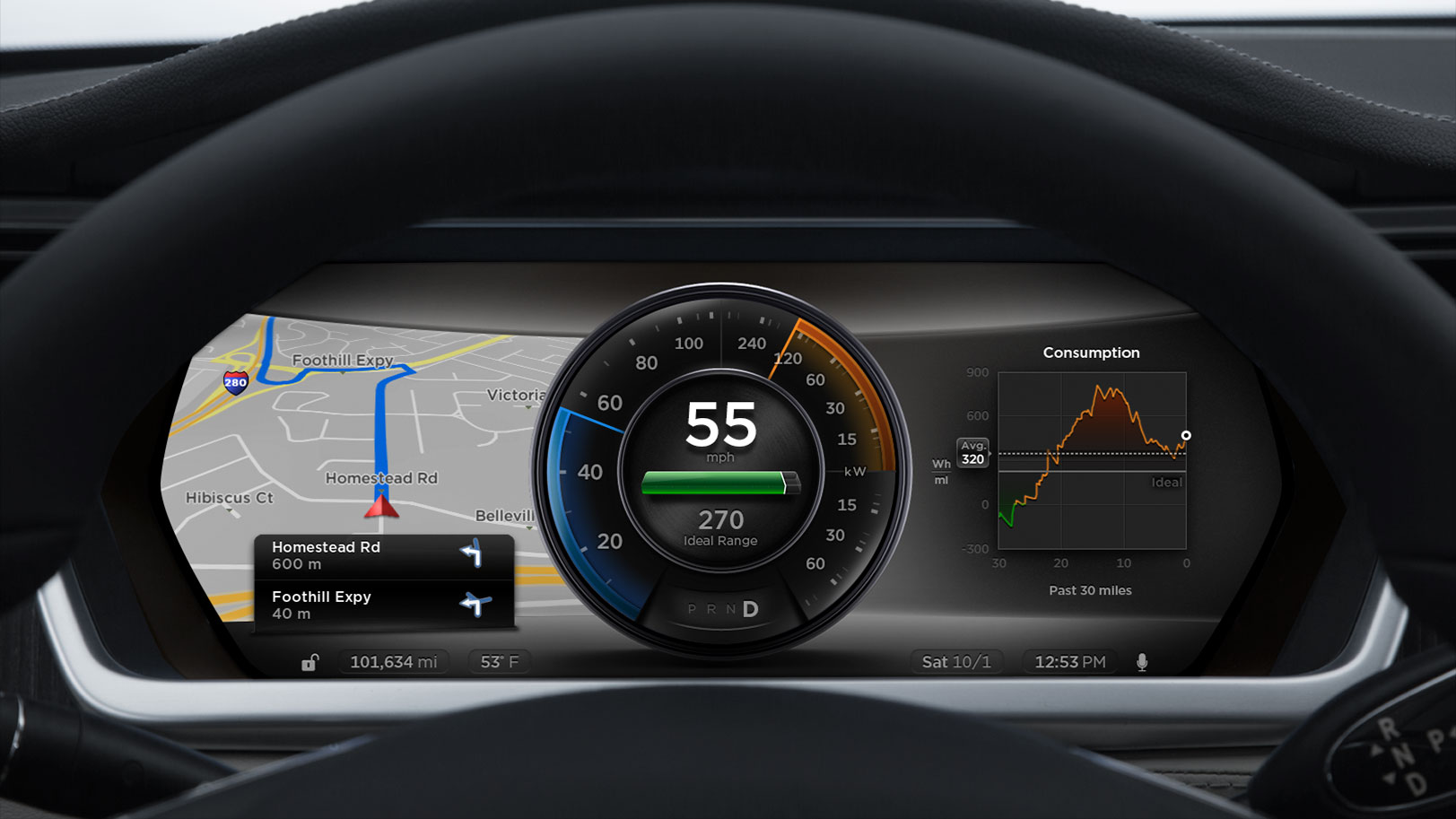 While under way, the Tesla has lane departure warnings that give a gentle shudder to the steering wheel when you drift out of the lane. Tesla has an Autopilot option that uses cameras, radar and sonar to keep the Tesla safely on course even with traffic, though the P85D I drove was missing the feature. Tesla does update their cars software over the air so they can add or enables features when required.