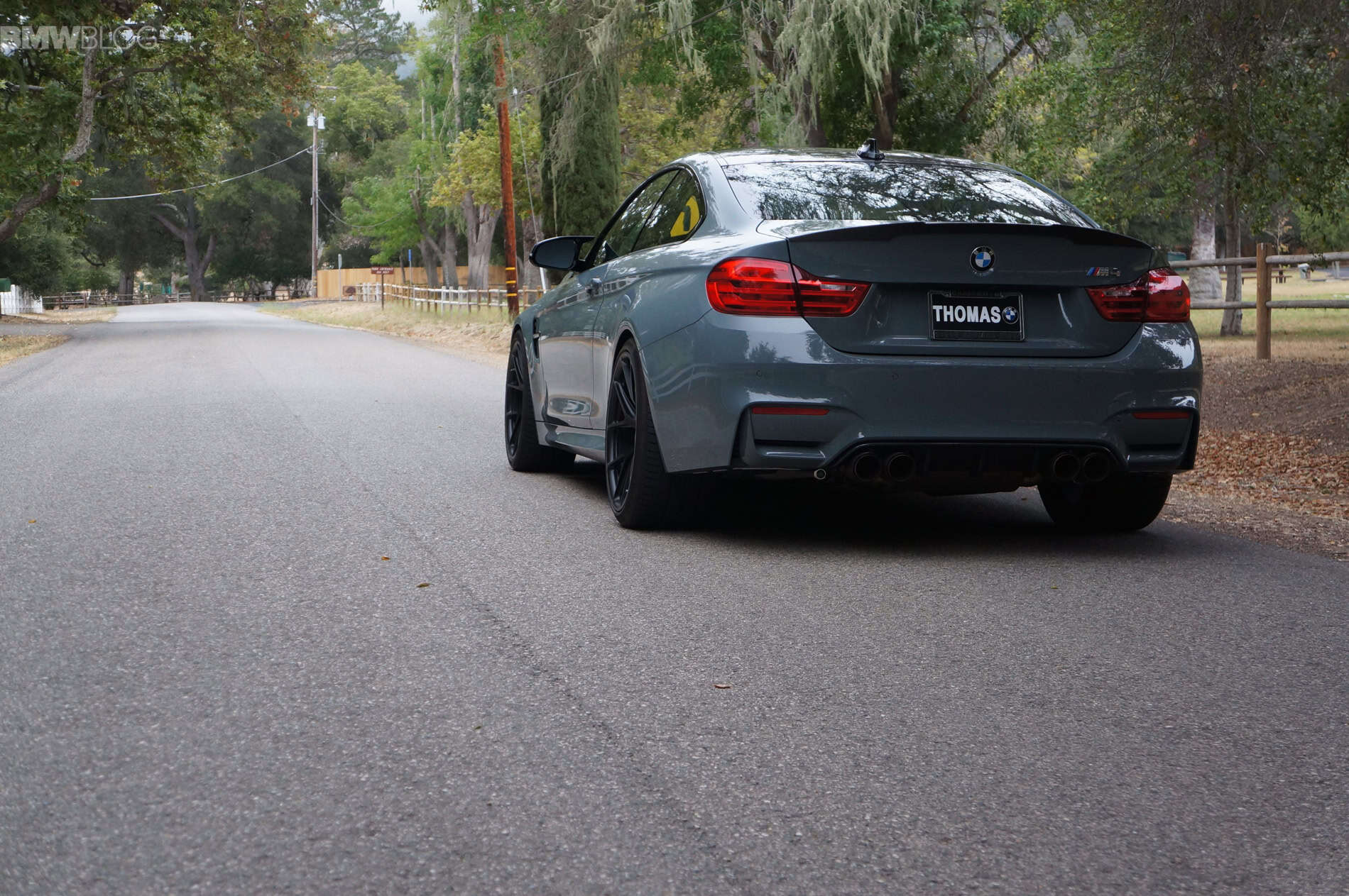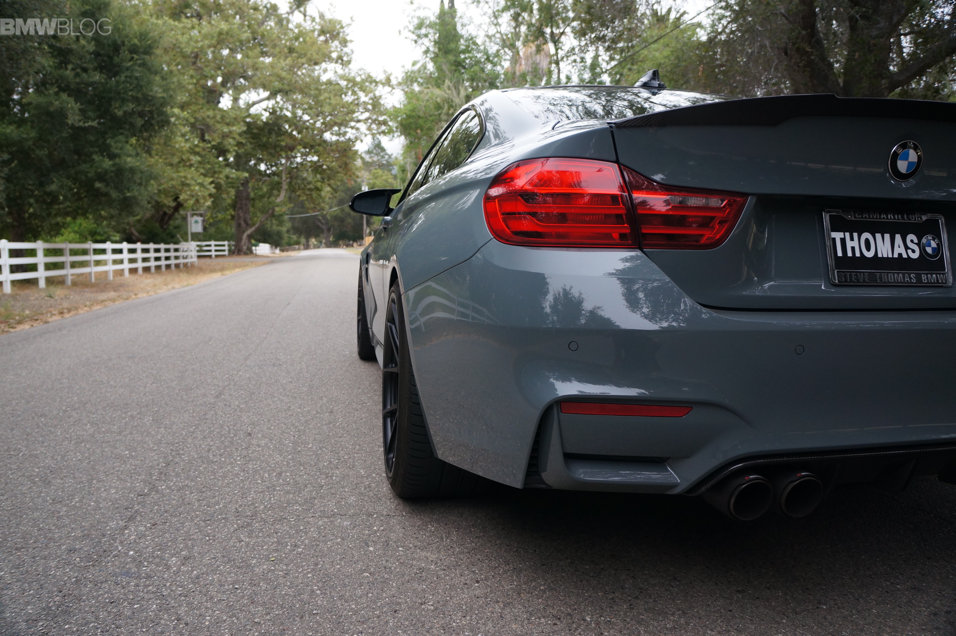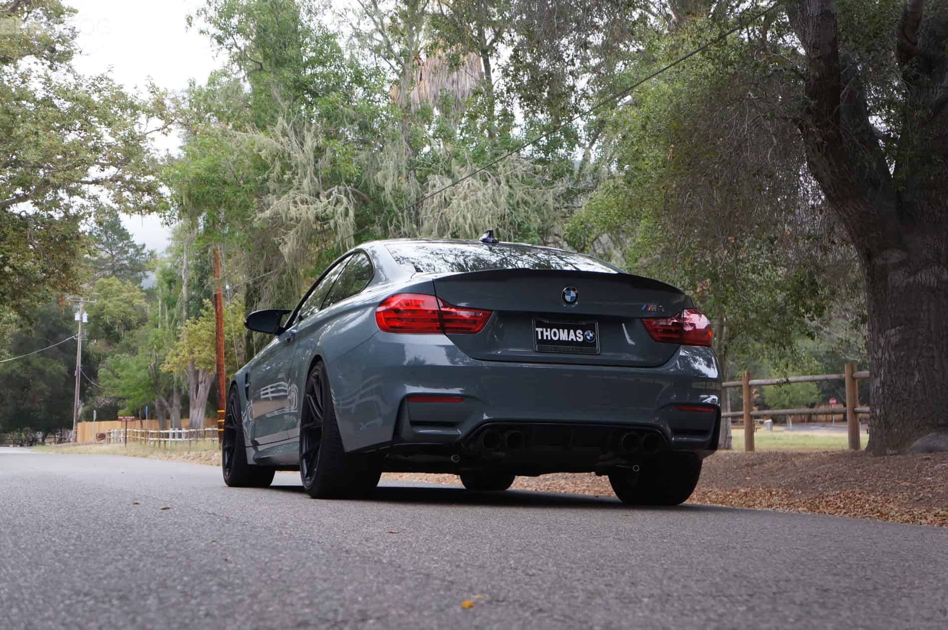 Jimmy at Thomas BMW dealership in California brings us one of the most exciting M4s found on the U.S. market. Painted in the Ferrari-color Grigio Medio, the M4 not only stands out with its unique and likely the first color, but also with a series of BMW M Performance Parts.