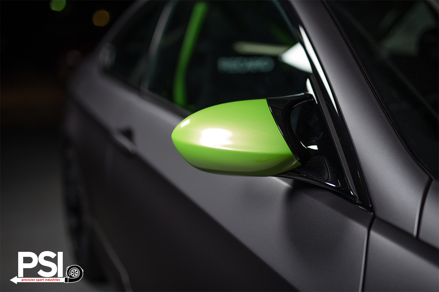 While the original paint color was black, PSI had a matte gray wrap applied by Carbon Wraps Orlando, and the effect is mouthwatering when paired up with the black wheels, carbon fiber roof and those unmistakeable Ithaca Verde accent pieces. In the end, PSI created a machine designed for relentless attack during competition events, and integrated the highest quality parts with ingenuity and creativity.