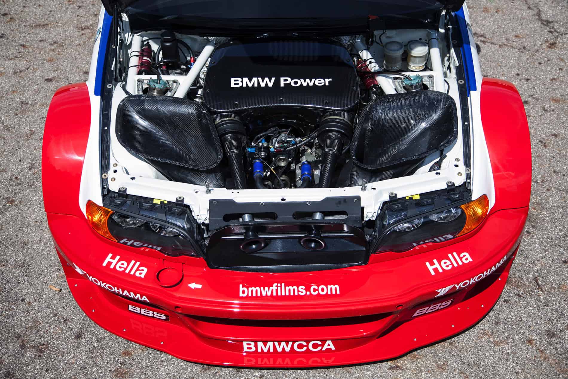The most unique feature of the M3 GTR was its powerplant, the first M3 in the history of the company to feature a V8 engine. Designated “P60” the 4.0-liter engine was the first engine designed and constructed by BMW Motorsport specifically as a race engine. This unique machine was smaller and weigh 30 pounds less than the inline six, despite adding two cylinders. Featuring a dry sump for optimal lubrication at high cornering loads and a “flat plane” crankshaft, the design allowed for more efficient exhaust scavenging without the need to have header primaries cross over from one bank to the other enabling optimal flow at high rpms. This resulted in a very reliable 444 horsepower at 7500 rpm in race trim.