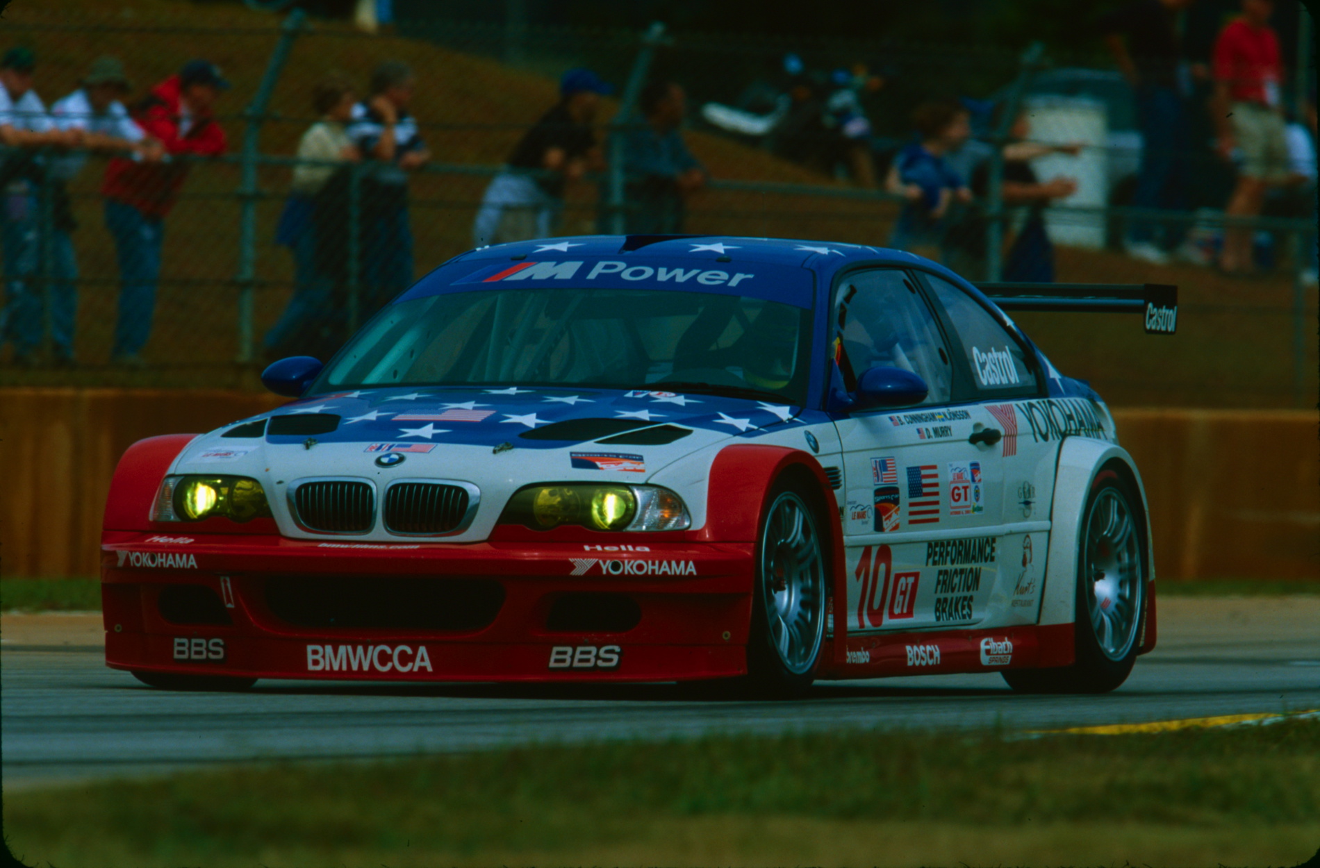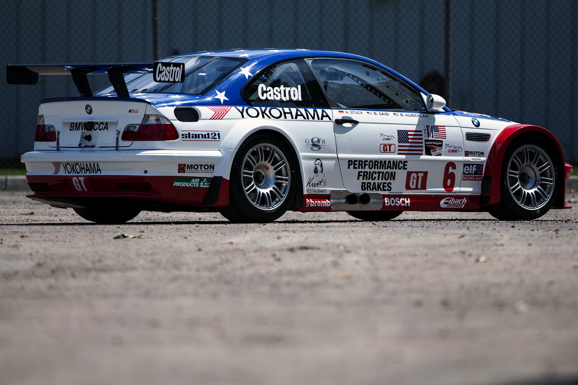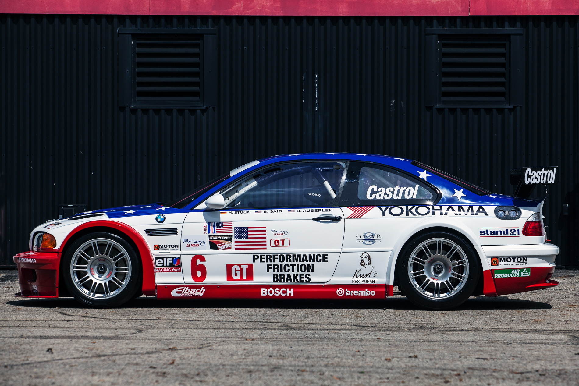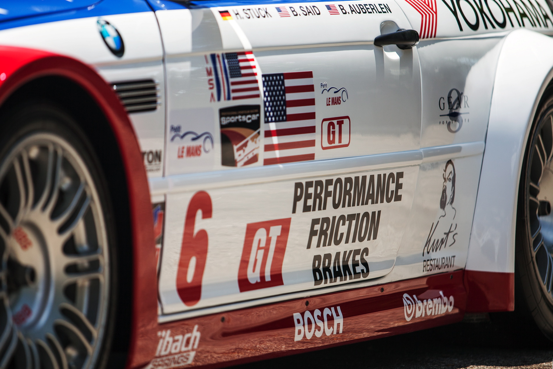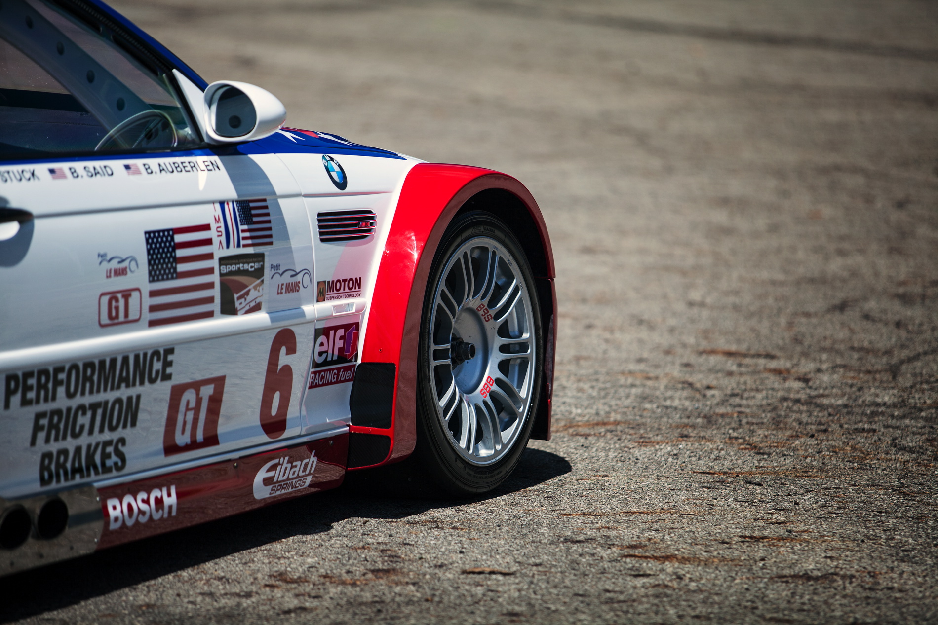 The BMW M3 GTR was a dominant competitor throughout the single season that it contested. Bill Auberlen, Boris Said and Hans J-Stuck capped off the season for BMW North America by winning the 2001 Petit Le Mans finale. As a tribute to a grieving nation and to those who lost their lives in 9/11, BMW Team PTG owner Tom Milner had created the patriotic “Stars and Stripes” design specifically for this race. As a result of the win and the special livery, the car became a legend for BMW racing fans in America. Bill Auberlen will be in attendance at the Legends of the Autobahn M3 GTR display for the unveiling of the car that bears his name on its side.