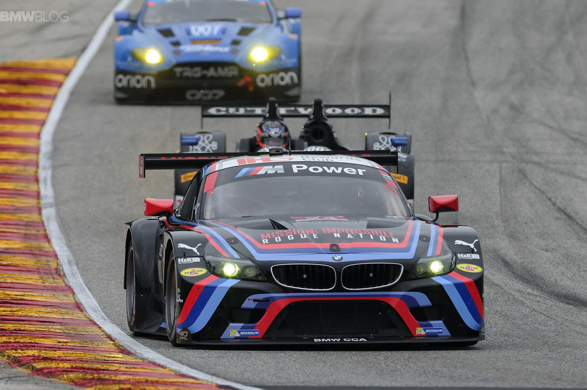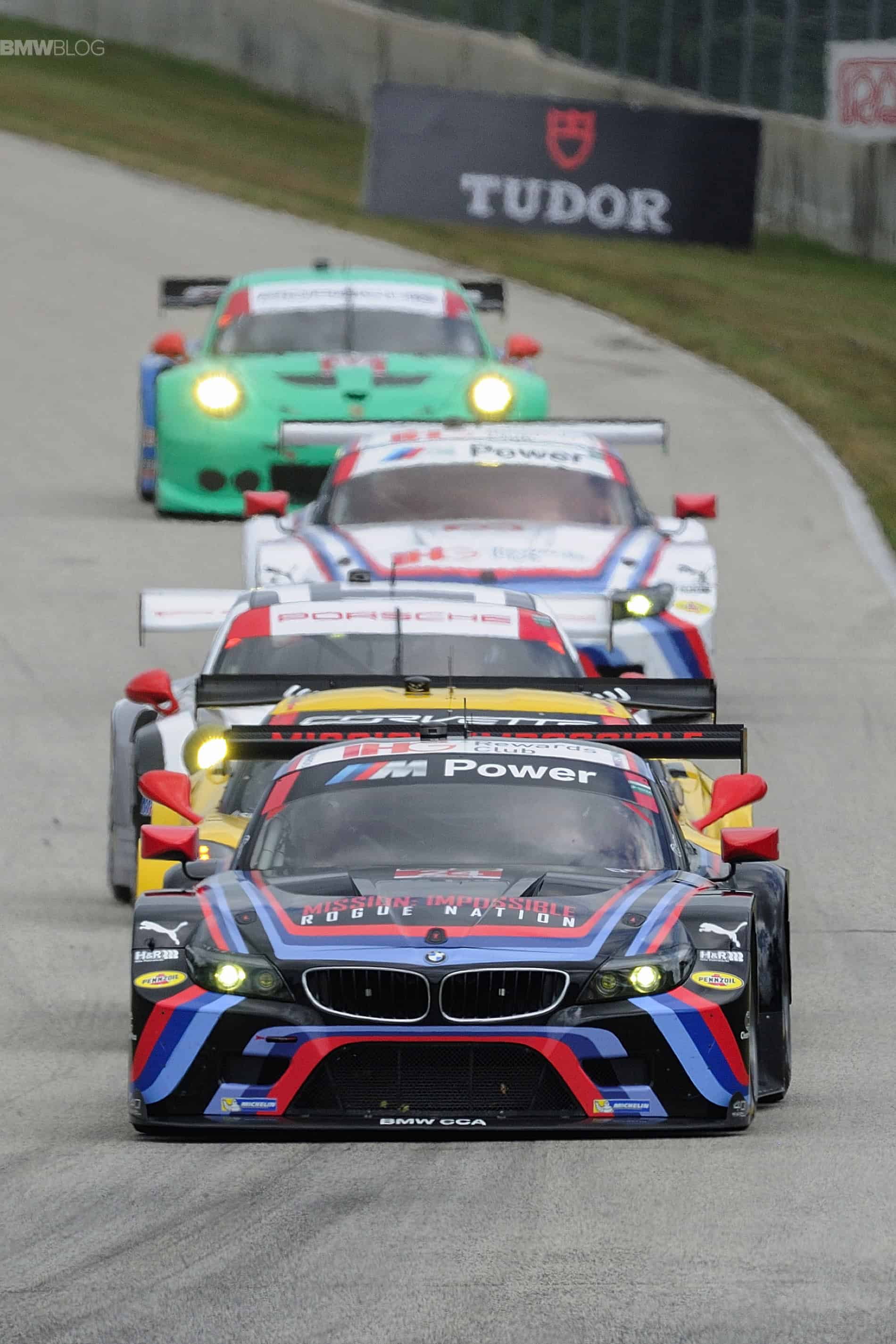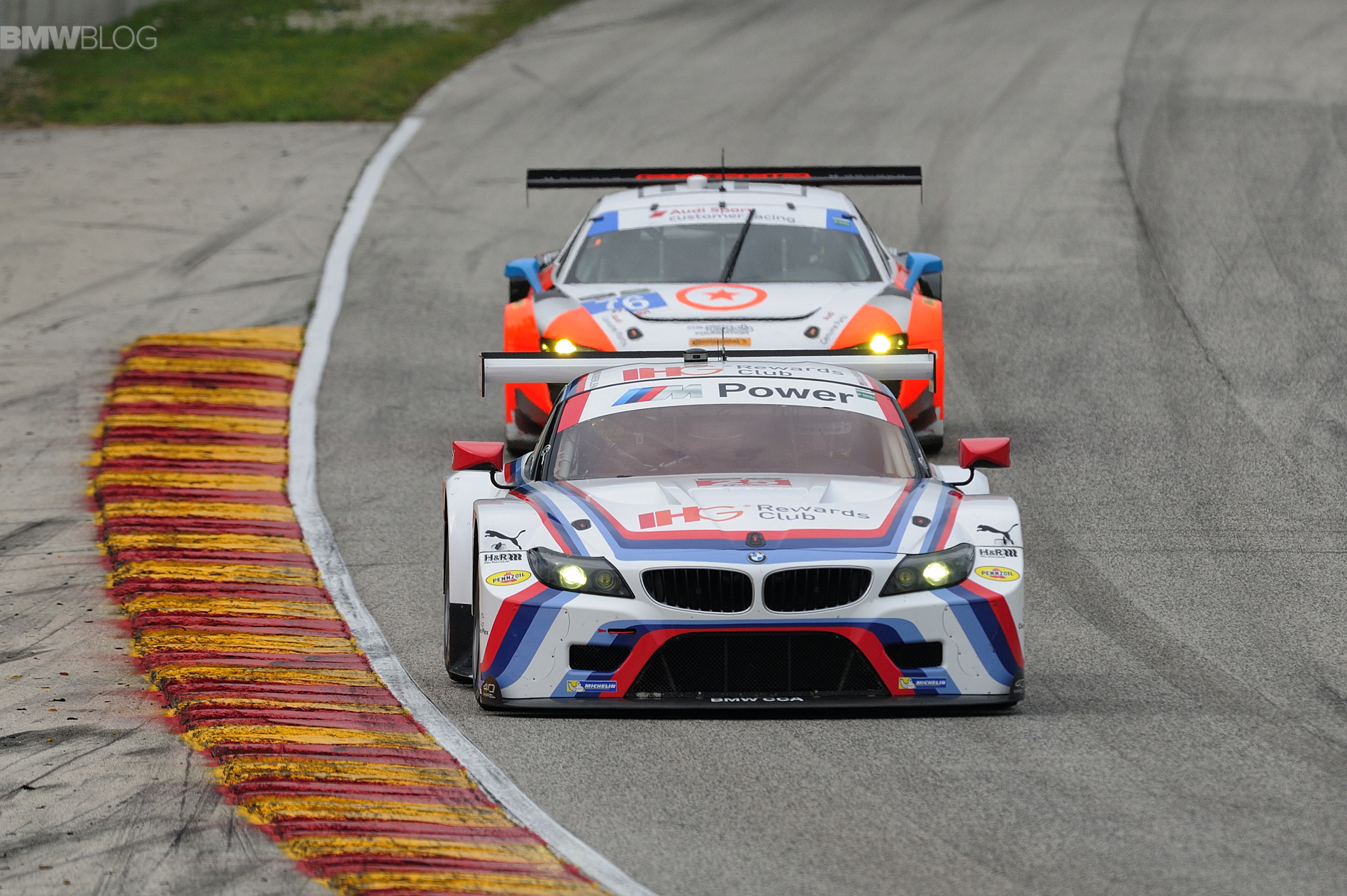 The race began with the No. 24 Z4 of John Edwards starting from fourth and Bill Auberlen sixth in the No. 25 machine. Both BMWs and the rest of the GTLM class took to the pit lane on lap 14 under the only caution period of the race. Edwards stayed in the No. 24 while the crew fueled and fitted new Michelin tires. He reentered the race in fifth place. Dirk Werner took over for Auberlen in the No. 25 Z4 and after service was the last GTLM car to leave the pits. As the race passed the one hour mark Edwards held the fifth spot, Werner the eighth. Both cars made their second pit stop under green with just over an hour left in the race. Lucas Luhr took over for Edwards on lap 40 and, one lap later, Werner entered the pits for his stop. After the rest of the GTLM field cycled though Werner and Luhr raced in the sixth and seventh positions respectively. Werner brought the No. 25 Z4 in early for a splash of fuel allowing him to make it to the end. With thirty minutes remaining Luhr was fourth with Werner right behind him in fifth. Luhr had to stop for fuel six laps from the end falling to sixth.