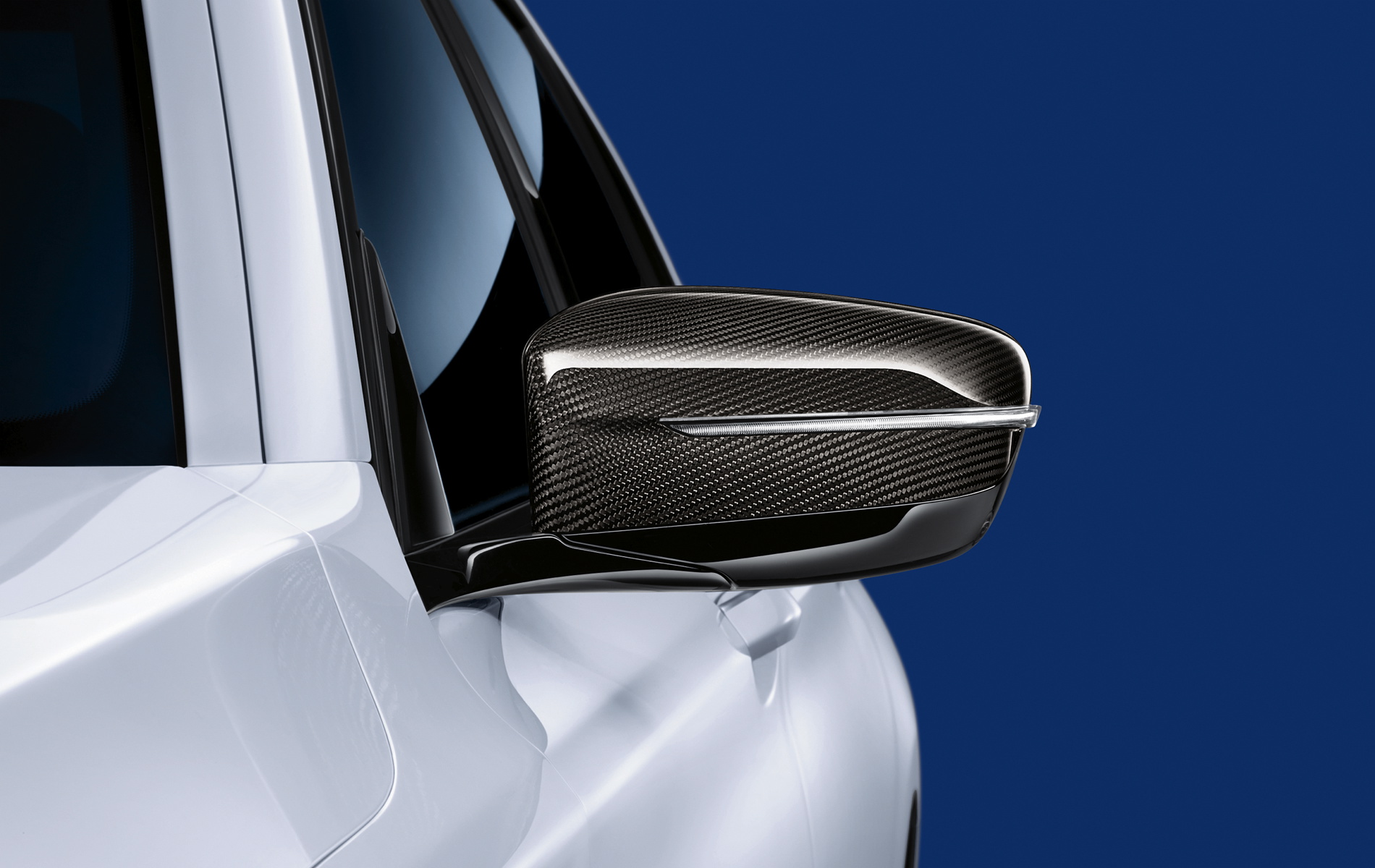 A further sporty feature are the exclusive, elaborately handcrafted BMW M Performance carbon door mirror caps, which also provide the luxurious new BMW 7 Series with a touch of racing flair. Due to the application of several layers of paint followed by high-gloss polishing, they boast a sporty and elegant depth effect. The carbon door mirror caps can be easily replaced by standard caps.