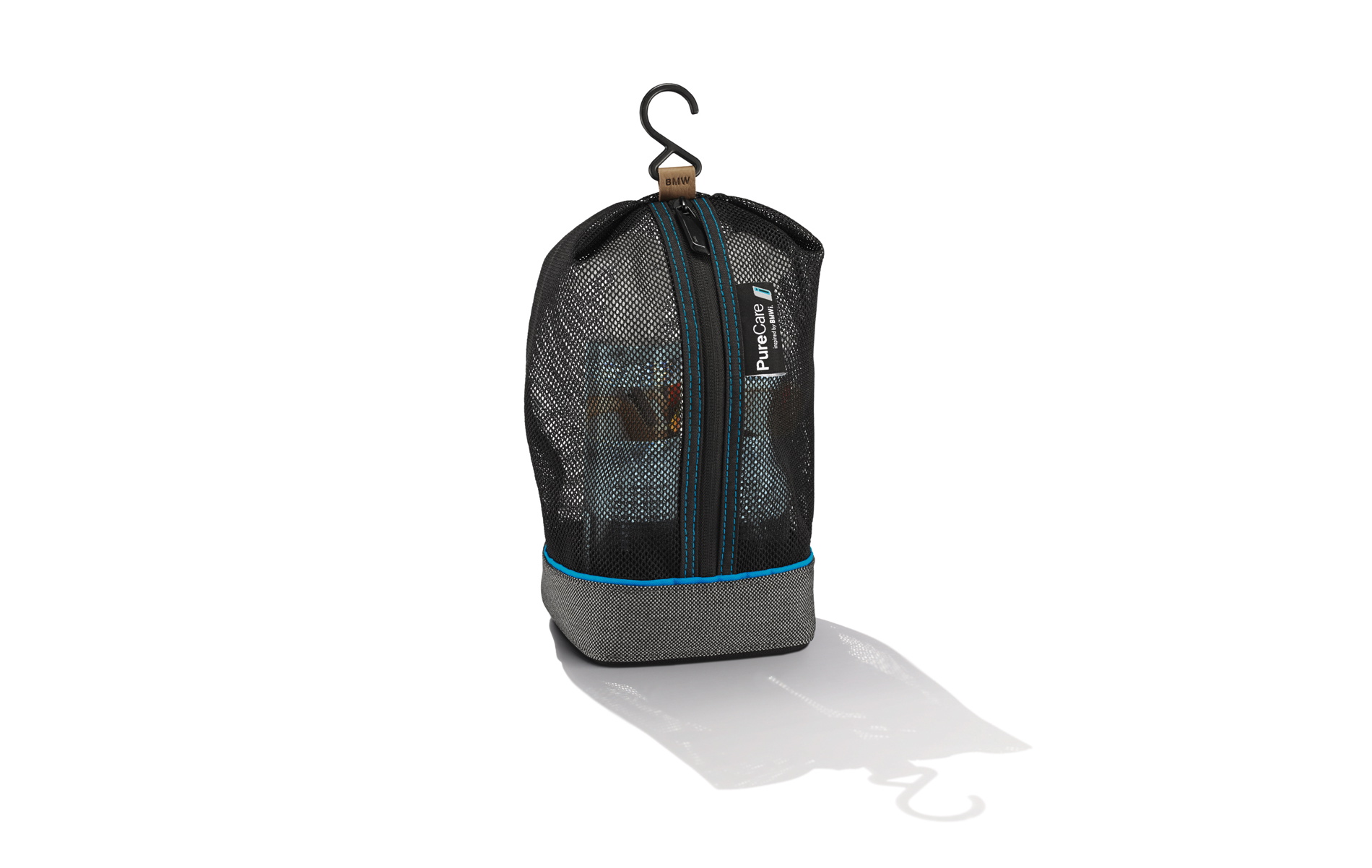 The PureCare set comprises a leather and upholstery cleaner with organic orange oil extract as well as the glass cleaner with organic grapefruit extract, which both come in a practical pouch. In order to conserve valuable resources, the pouch is manufactured using fabric and leather waste from BMW i seat production. A particular practical feature – the pouch can also be used as an exclusive toiletry bag.