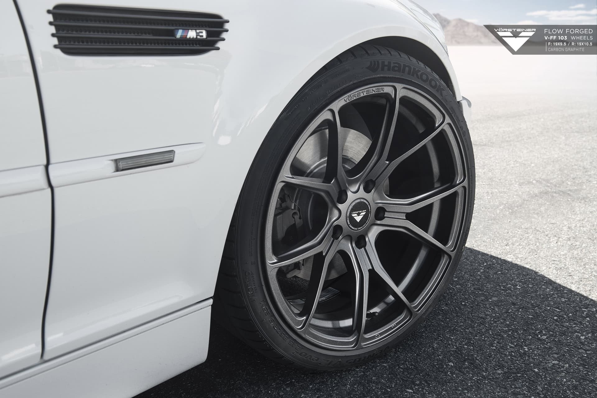 Those E46 M3s are however in need of some contemporary updates to give them back that flair they once used to have. One of the simplest and most elegant solutions to achieve this is a set of aftermarket wheels. Vorsteiner’s new Flow Forged V-FF 103 wheels have now found their new home on this Alpine White E46 M3.