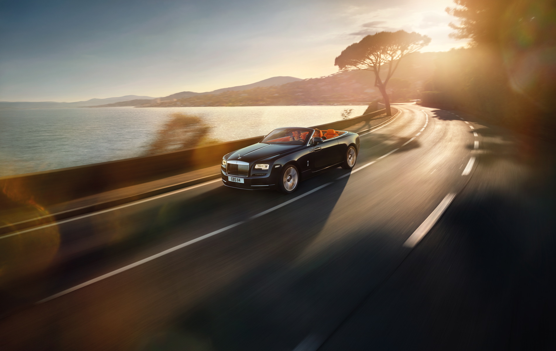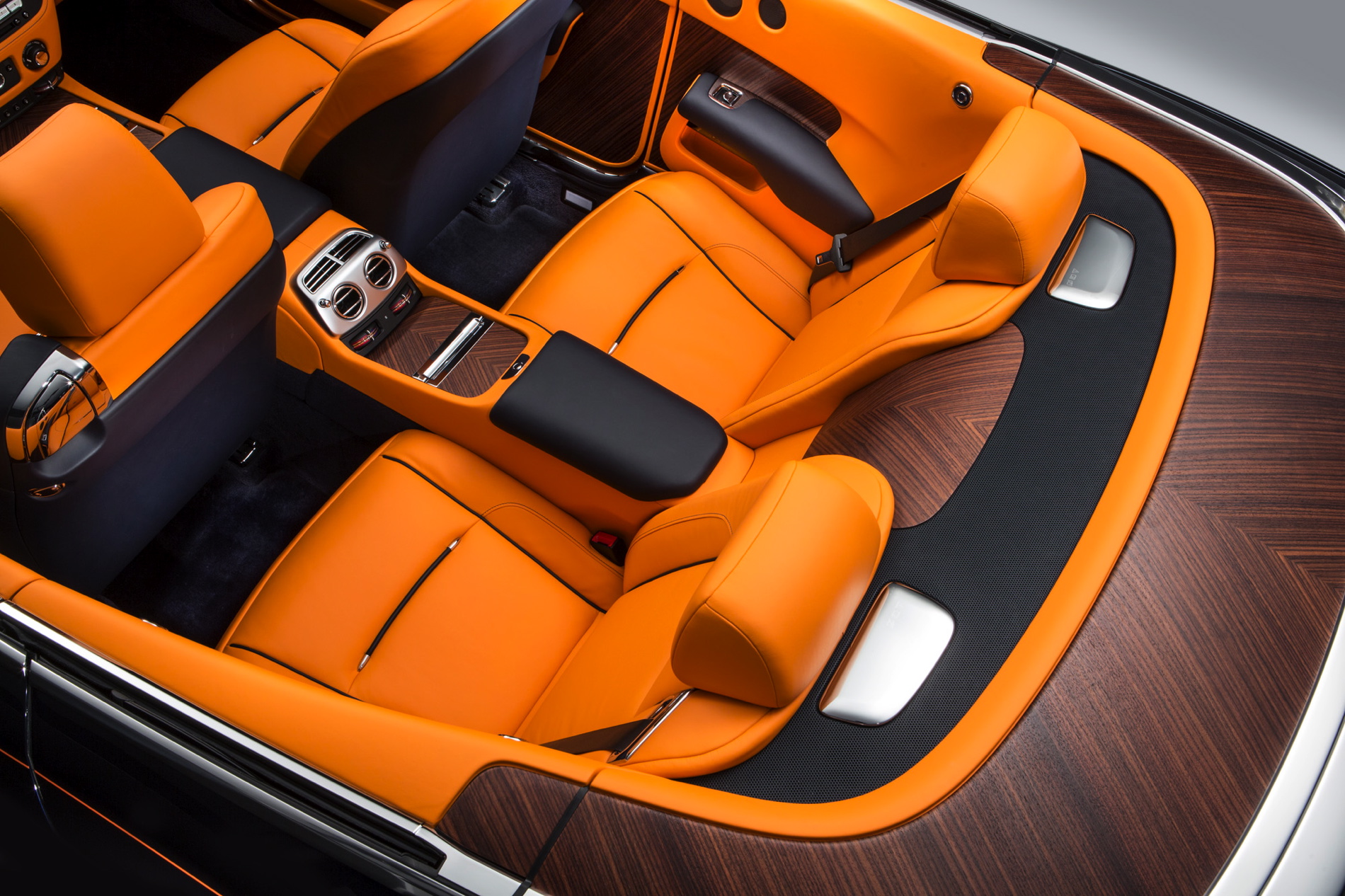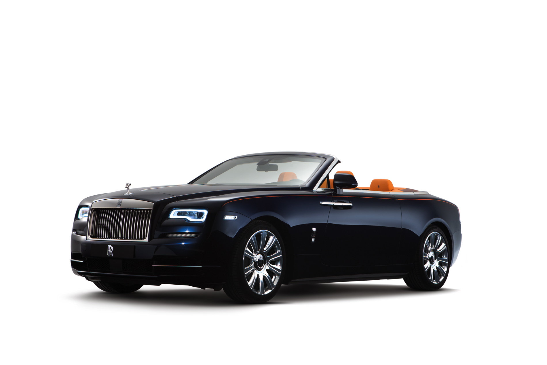 This is the Rolls-Royce Dawn, a four-seater convertible based on the Ghost and Wraith, and described by Rolls as “the sexiest Rolls-Royce ever built.” The company is paying homage to the Silver Dawn — a name applied to 28 vehicles from 1950 to 1954 — with the introduction of the Rolls-Royce Dawn convertible. The super luxurious convertible features a “Mandarin” interior beneath “Midnight Sapphire” bodywork.