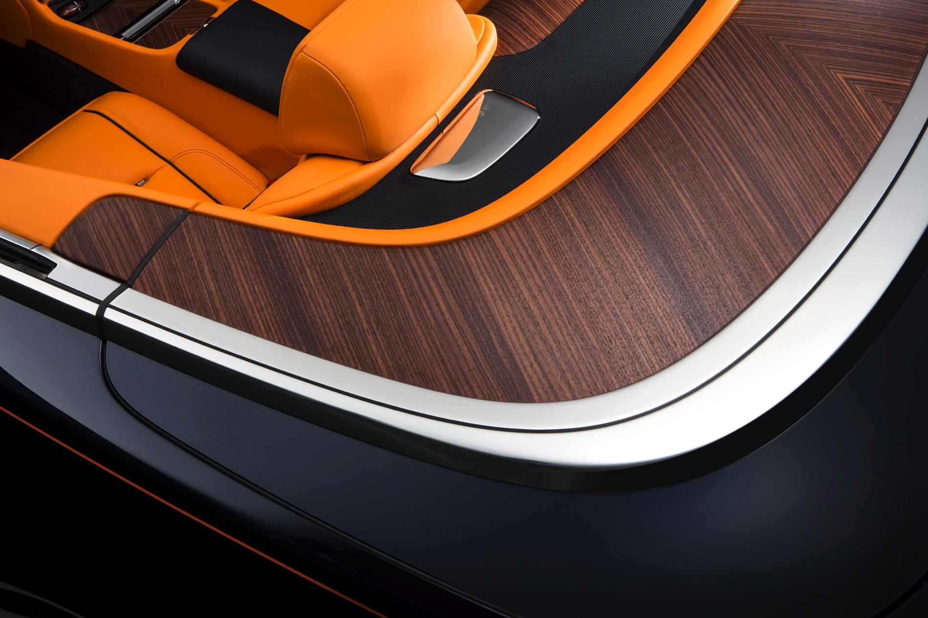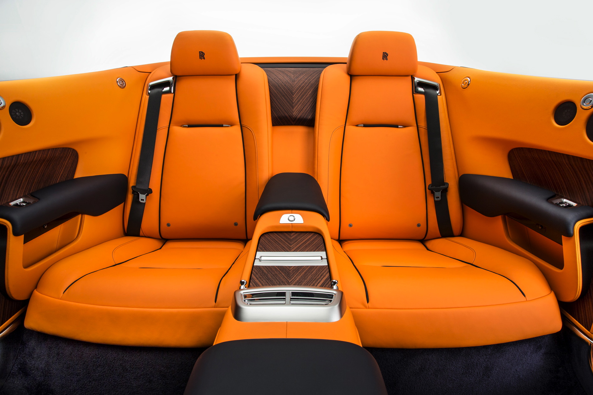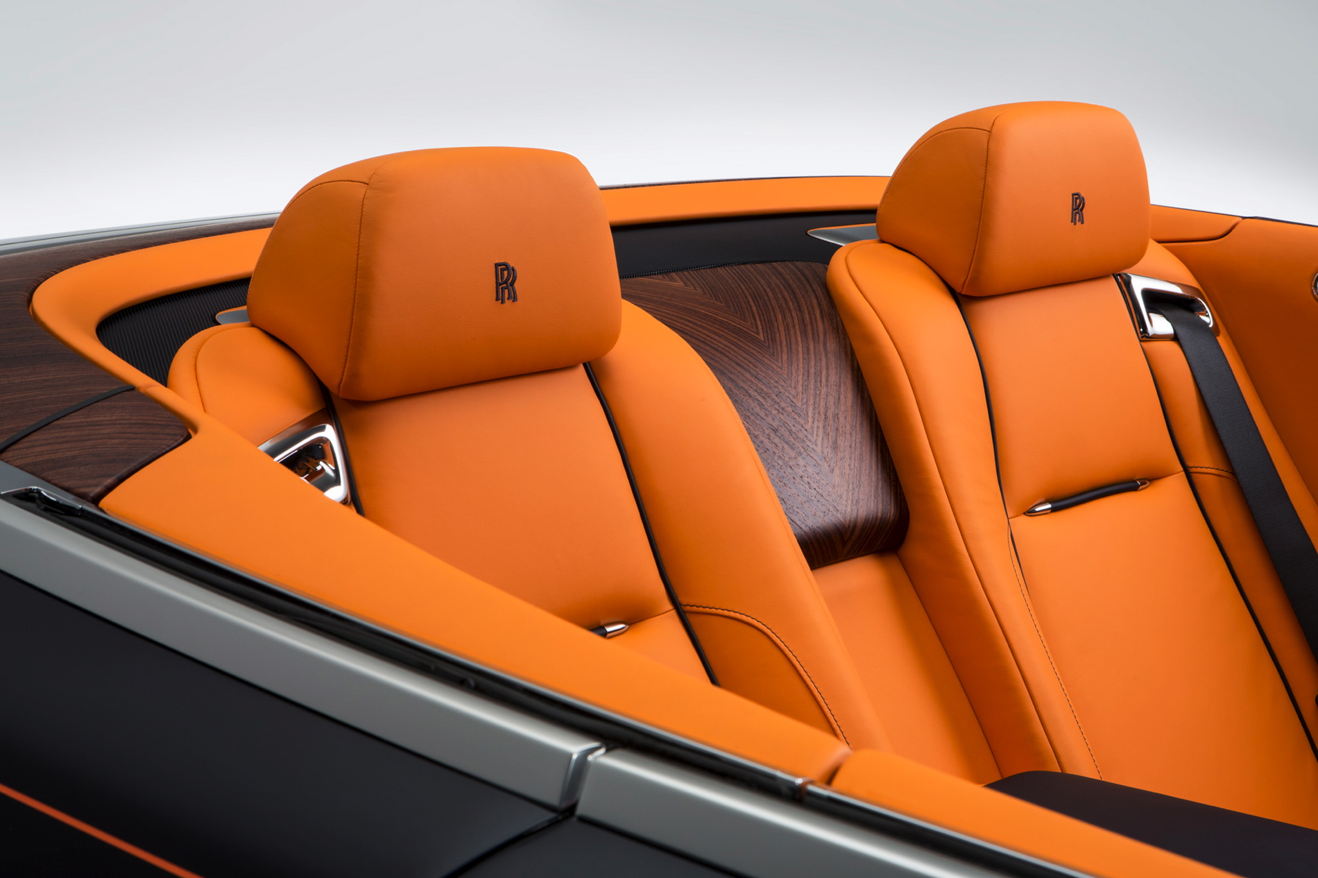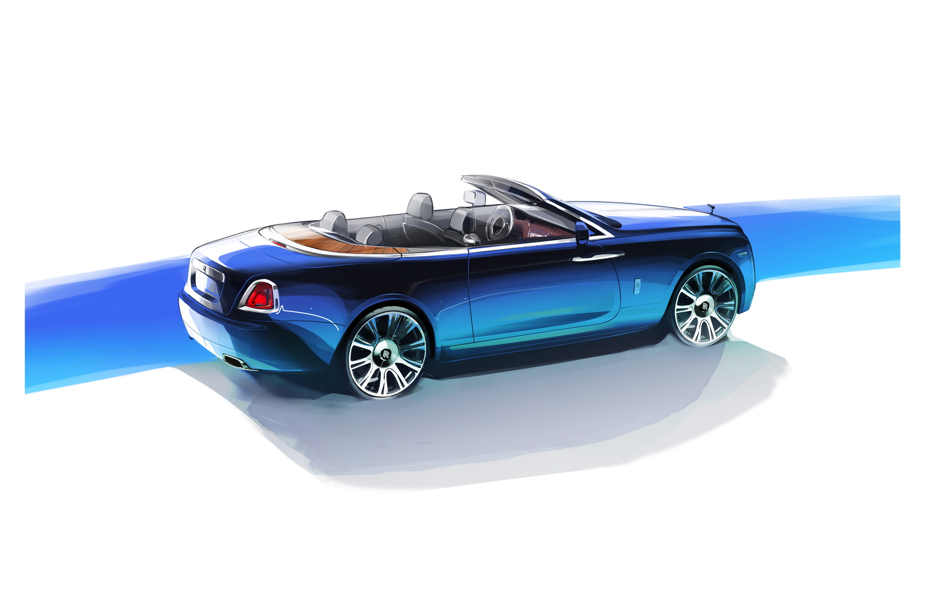 This is the Rolls-Royce Dawn, a four-seater convertible based on the Ghost and Wraith, and described by Rolls as “the sexiest Rolls-Royce ever built.” The company is paying homage to the Silver Dawn — a name applied to 28 vehicles from 1950 to 1954 — with the introduction of the Rolls-Royce Dawn convertible. The super luxurious convertible features a “Mandarin” interior beneath “Midnight Sapphire” bodywork.