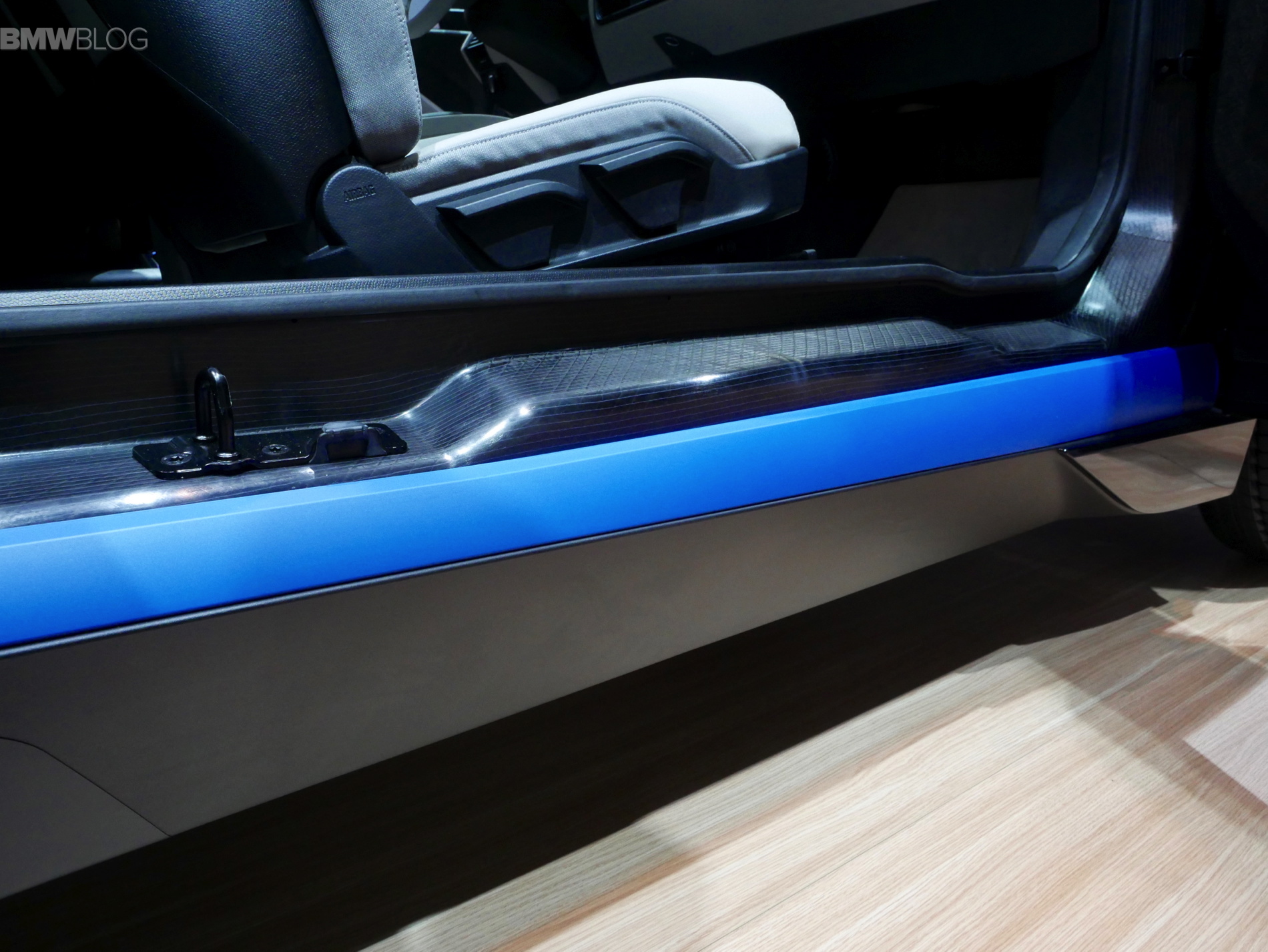 The beautiful black paint job has a bit more pop than the usual black colors and helps accentuate the interesting lines of the monobox i3. The black body color is combined with elements in Frozen Grey and BMW i blue.