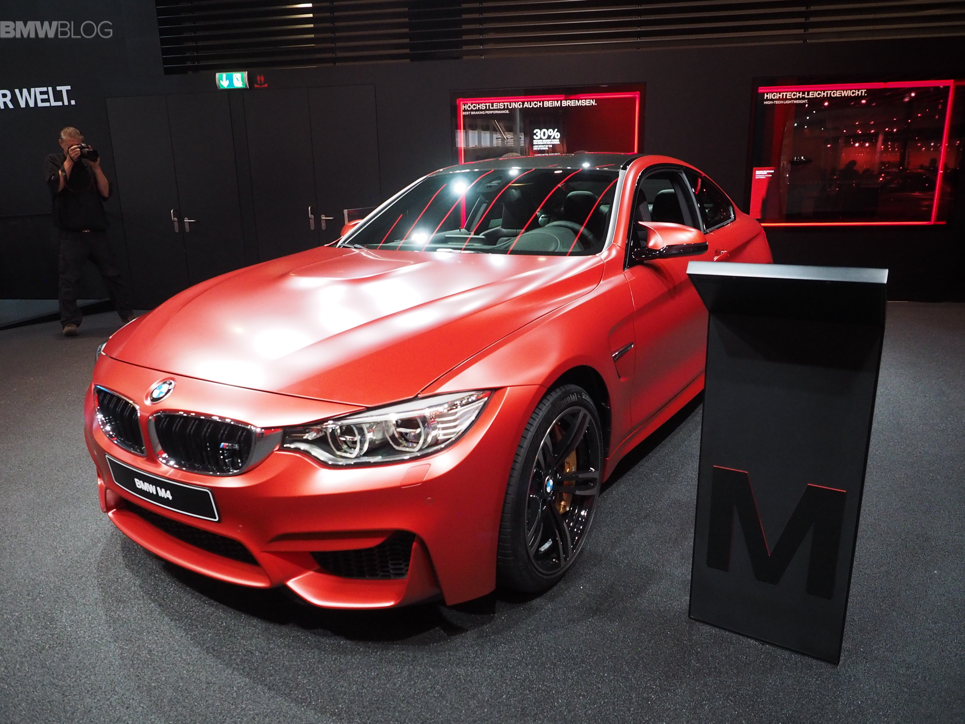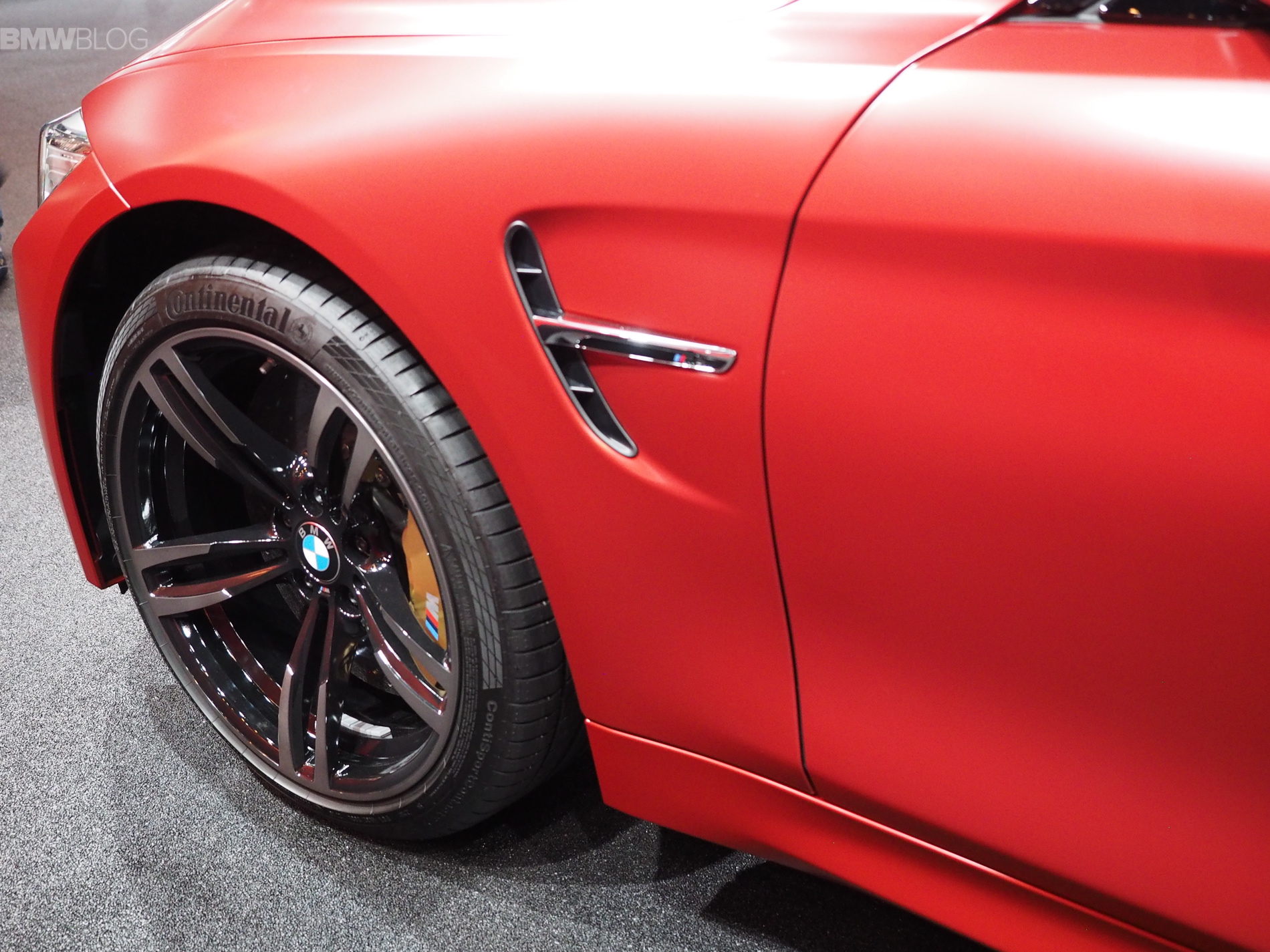 One particular model stood out today at the BMW M stand in Frankfurt: A Frozen Red Metallic BMW M4. The vibrant, yet muted red paint job enhances the beautiful lines of the M4 Coupe and gives the car an unique look.