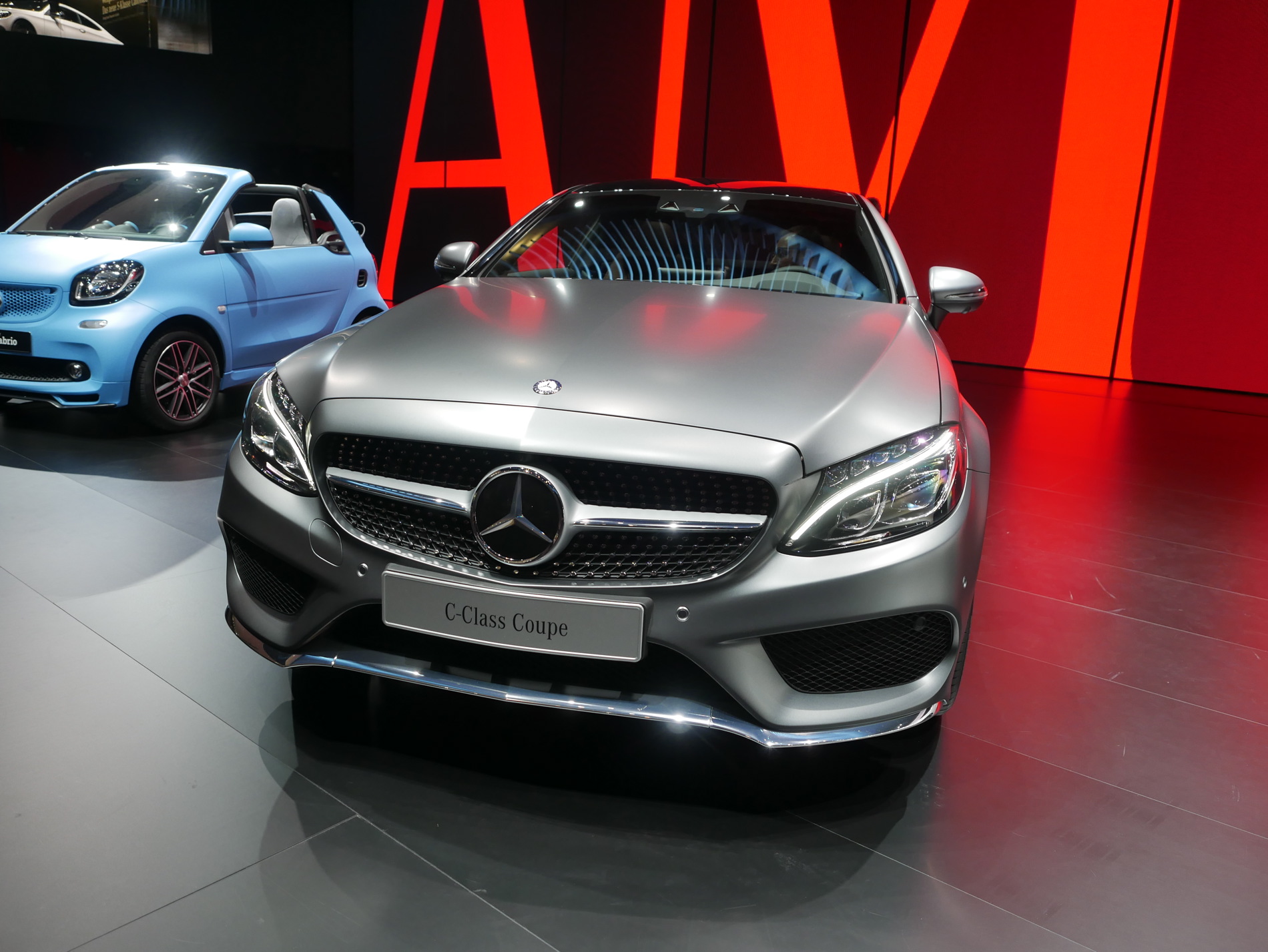 The center stage at the Mercedes stand in Frankfurt is reserved for the new Mercedes-Benz C-Class Coupe and C63 AMG.