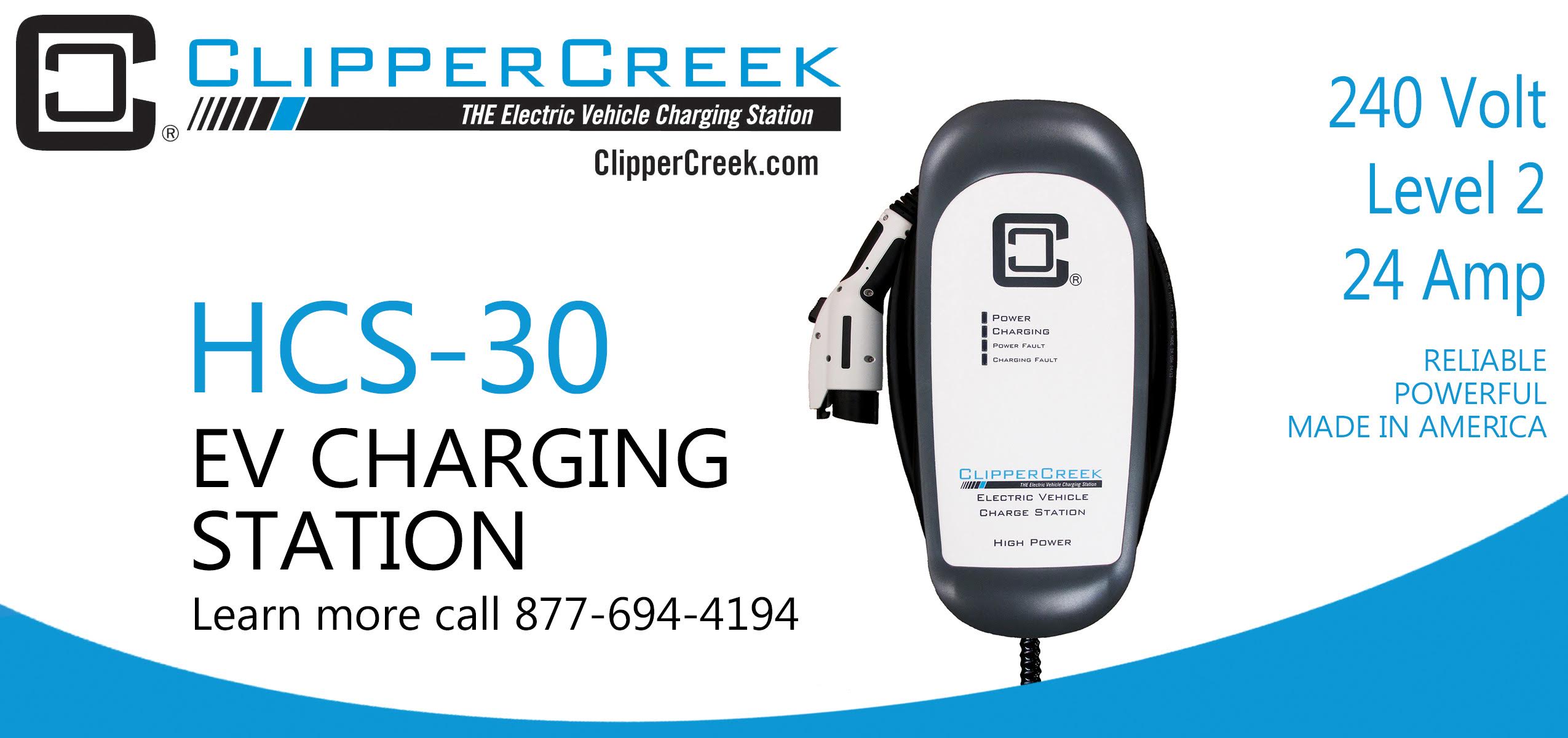 ClipperCreek has added the HCS-30 EVSE to their HCS product line. The HCS-30 is a 24 Amp Level 2 electric vehicle charging station. Offering power suitable for most electric vehicles to recharge in approximately 4 hours, this 240 Volt charging station is priced at $565.