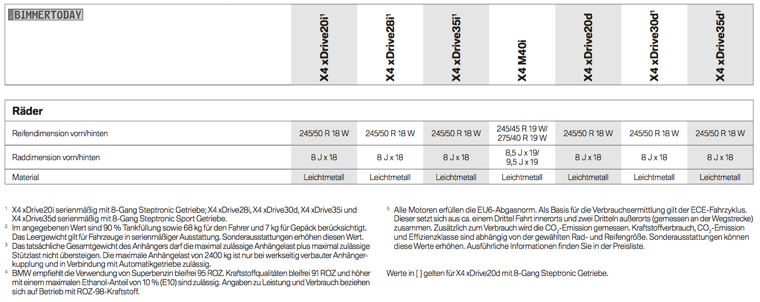 An early catalog upload on bmw.de reveals the powertrain, performance figures and the design of the BMW X4 M40i. Exclusive to the new BMW X4 M40i is a new development stage of the BMW TwinPower Turbo inline six-cylinder engine that offers 360 hp and up to 465 Nm of torque. The new engine accelerates the BMW X4 M40i in 4.9 seconds to 100 km/h. The maximum speed is electronically limited to 250 km/h.