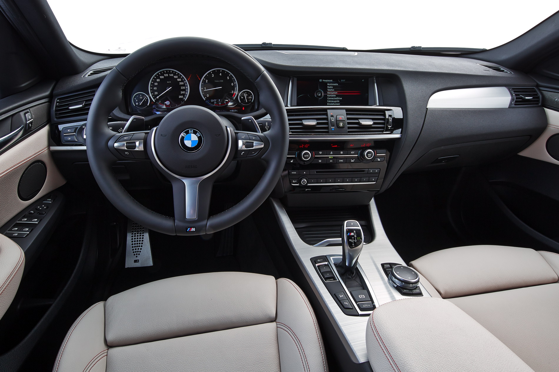 In the interior too, the typical character of the BMW M is present. The M leather steering wheel, the M gear shift lever, the sport seats and model-specific door sills remind us this is a special X4, just like the “X4 M40i” digital lettering on the instrument cluster.