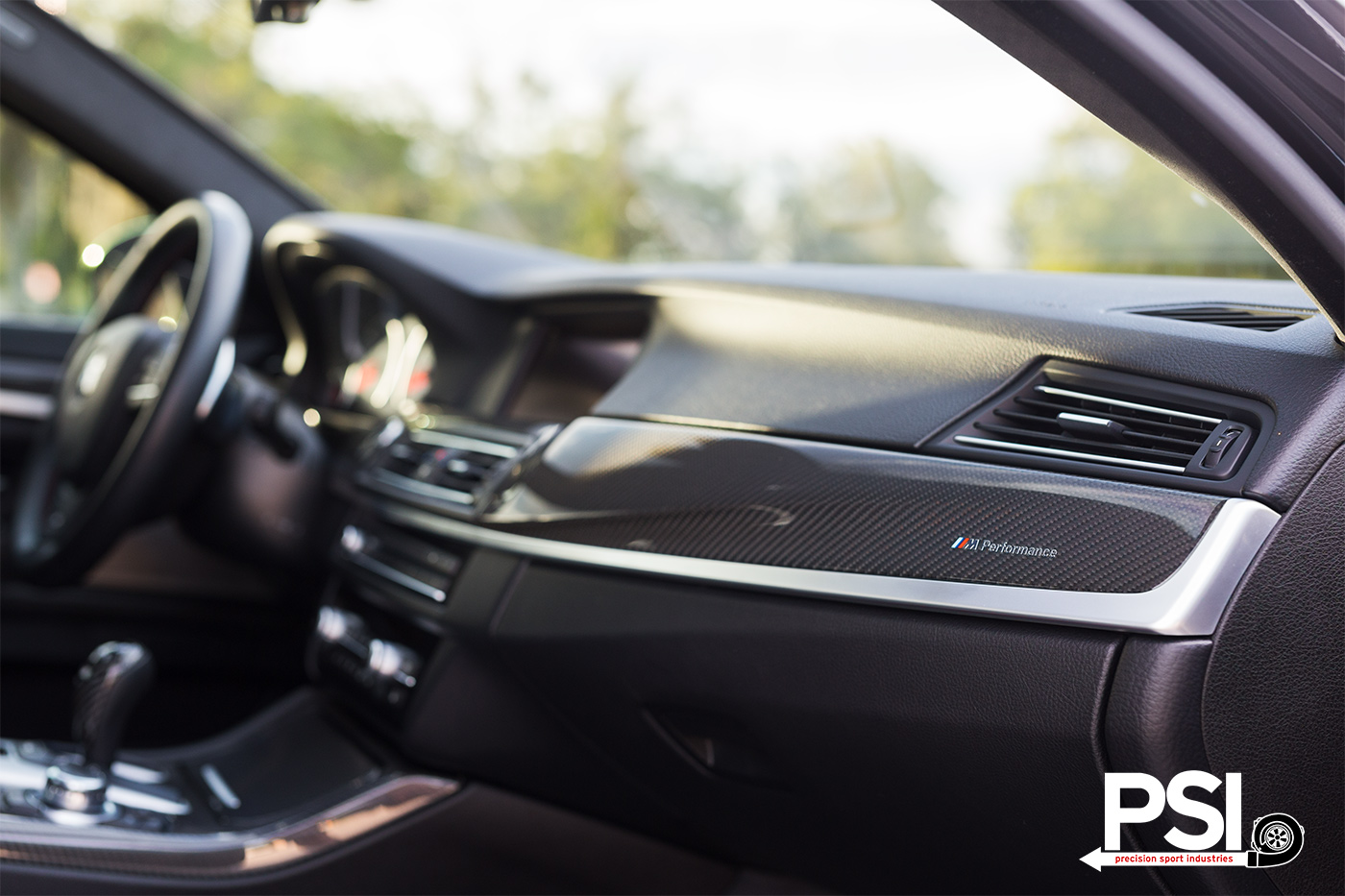 To complete the look, PSI added a carbon fiber Vorsteiner front spoiler and rear diffuser, which enhance the elegantly aggressive appearance, while inside a complete BMW M Performance carbon fiber trim set was carefully installed. IND supplied the finishing touches in the form of gloss black front and side grilles.