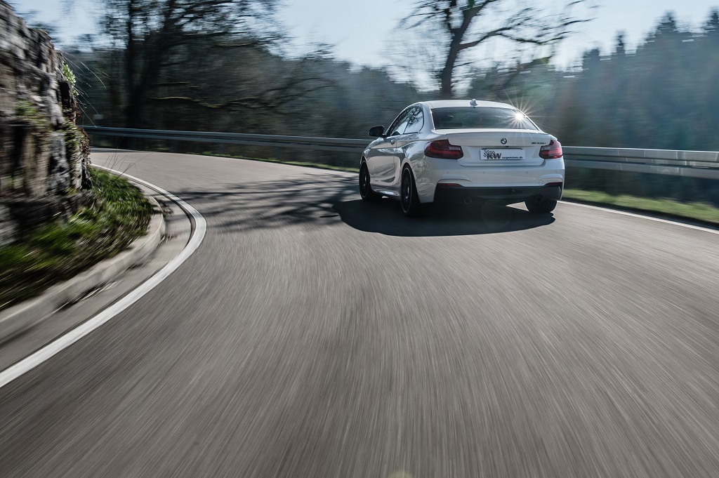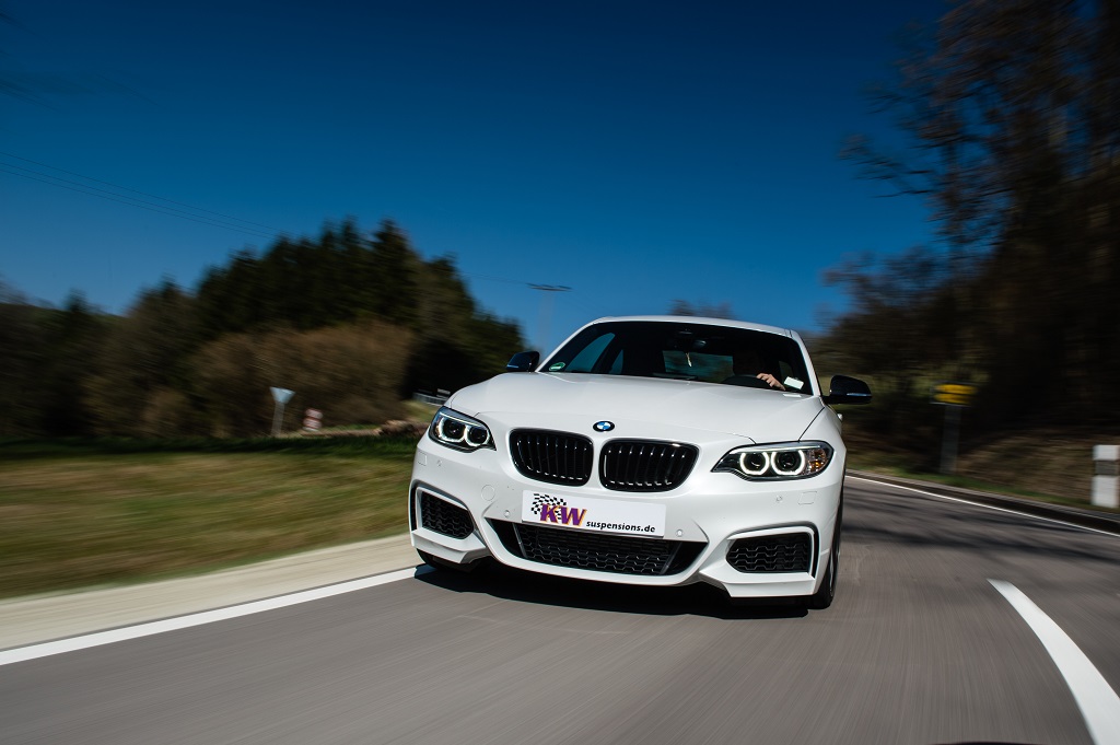 “When choosing the sport mode, the BMW 2-series feels much more direct and agile with the DDC coilovers “, explains KW Product Manager Johannes Wacker. “If that’s too sporty for the road condition, simply press the original BMW button and within five milliseconds, the KW damper will switch ride mode to comfort.” This is possible with the adaptive KW DDC technology and electromechanical valves.