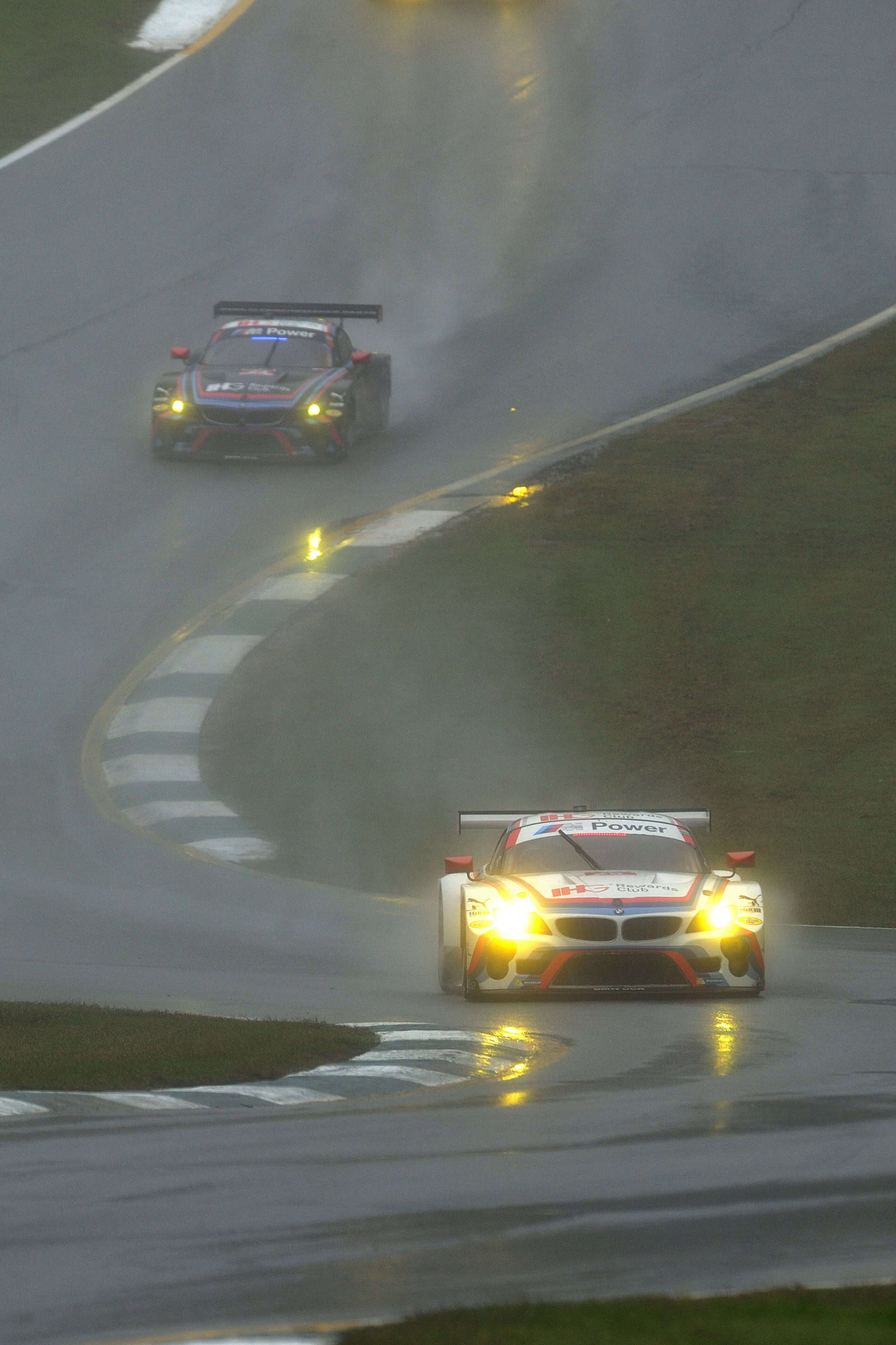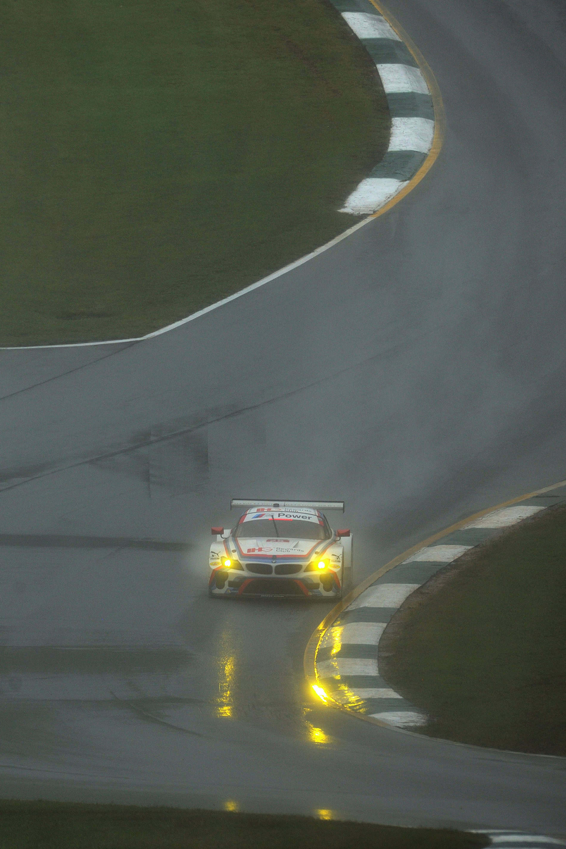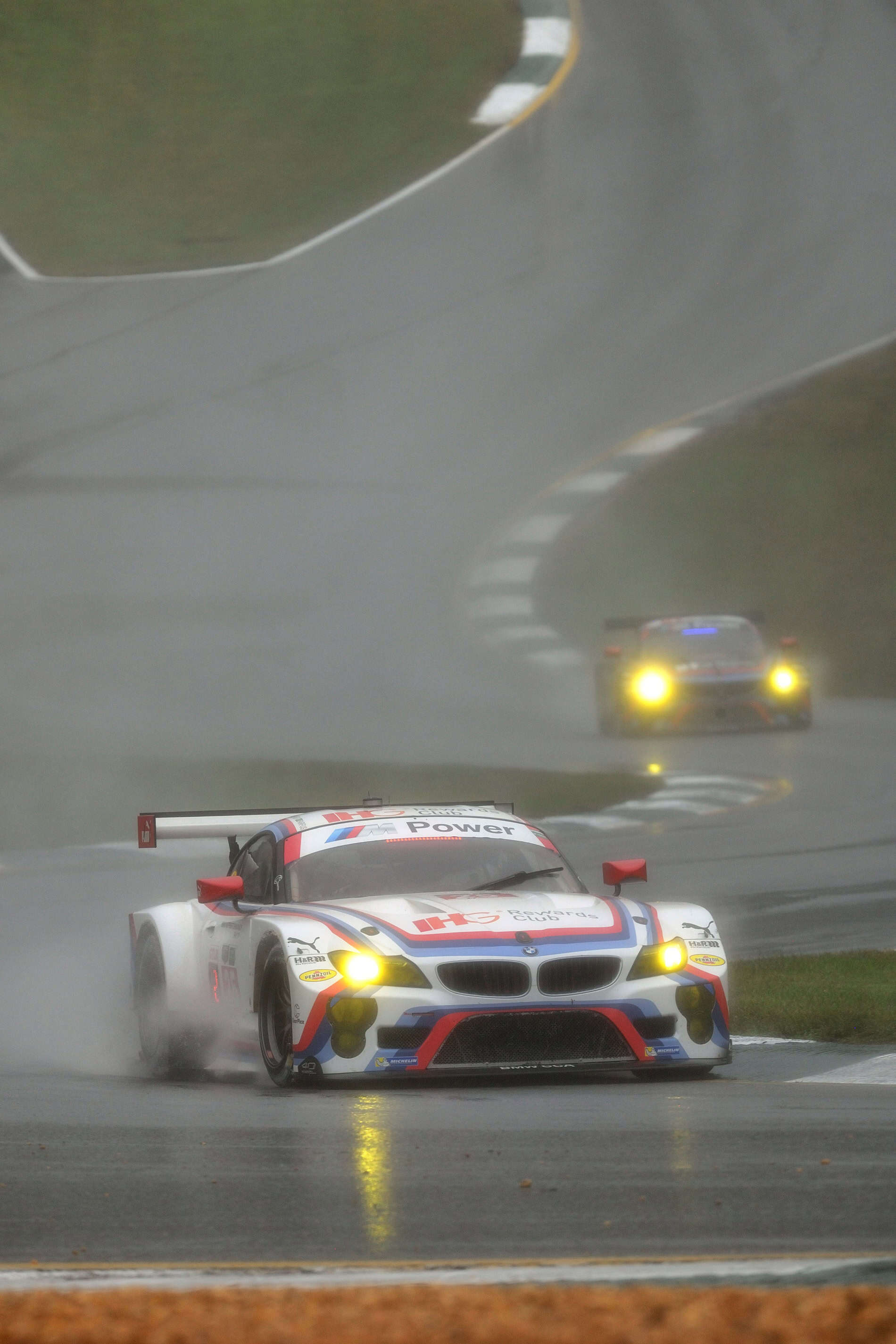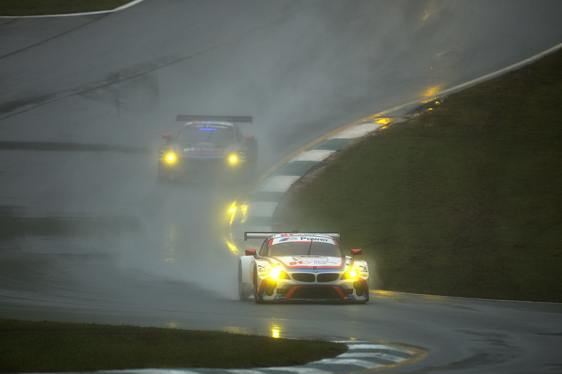 The iconic Petit Le Mans turned into the predicted water fight: When the race got underway at 11:10hrs local time, the track was already extremely wet due to the heavy rain. This made for tricky conditions. Several accidents caused full-course yellows, in which the USCC field was neutralised. Despite the terrible conditions, the BMW Team RLL drivers put in great performances without any mistakes, keeping their BMW Z4 GTLMs on track even in the heaviest periods of rain. Five hours and 22 minutes into the USCC season finale, however, the red flag was brought out due to bad track conditions. Another weather system bringing even heavier rain was visible on the radar, moving straight in the direction of Road Atlanta. After a one-hour break, the race was re-started. However, with darkness setting in, it was ultimately stopped for safety reasons at 19:01hrs local time – and the season came to an early end.