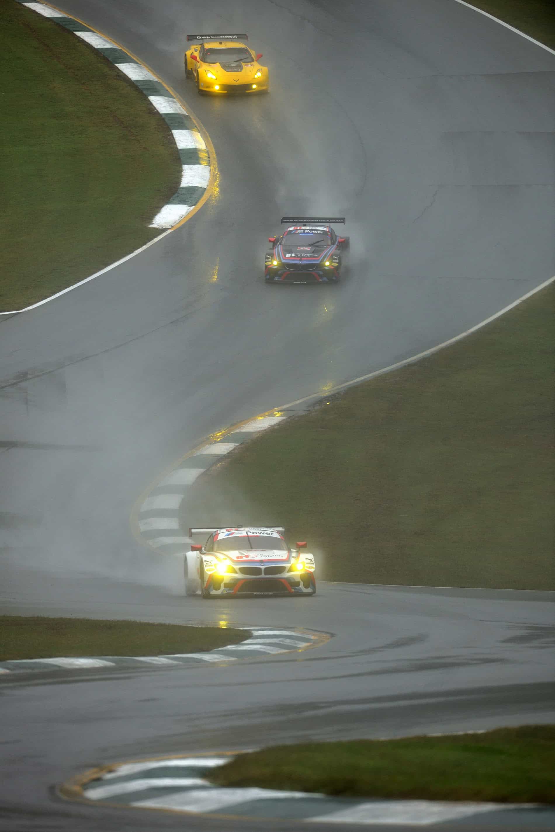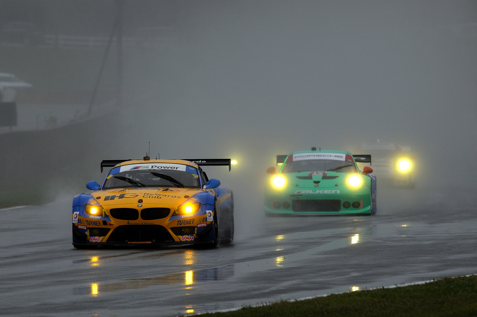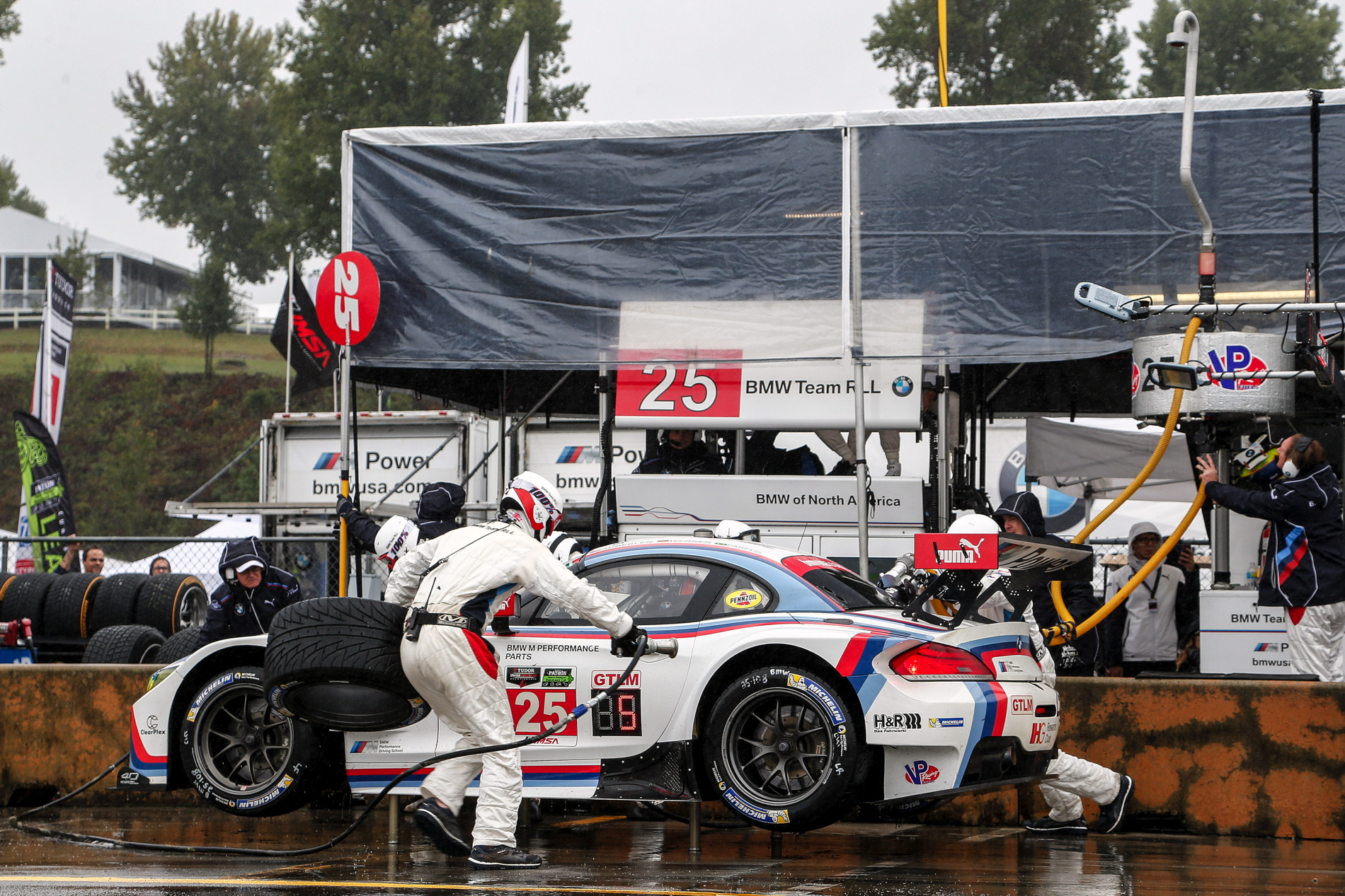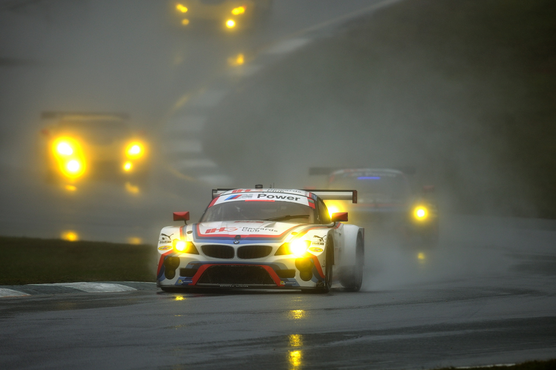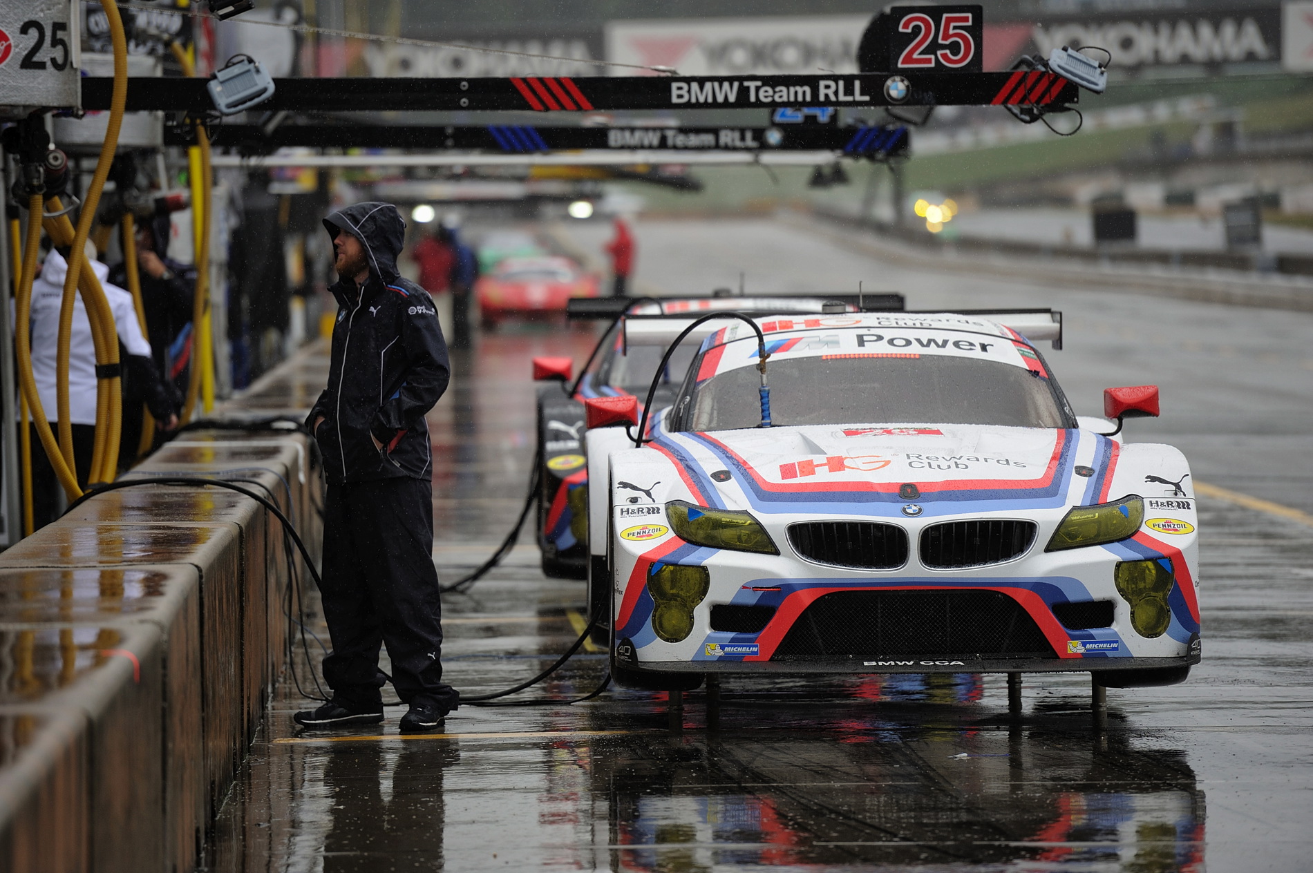 The iconic Petit Le Mans turned into the predicted water fight: When the race got underway at 11:10hrs local time, the track was already extremely wet due to the heavy rain. This made for tricky conditions. Several accidents caused full-course yellows, in which the USCC field was neutralised. Despite the terrible conditions, the BMW Team RLL drivers put in great performances without any mistakes, keeping their BMW Z4 GTLMs on track even in the heaviest periods of rain. Five hours and 22 minutes into the USCC season finale, however, the red flag was brought out due to bad track conditions. Another weather system bringing even heavier rain was visible on the radar, moving straight in the direction of Road Atlanta. After a one-hour break, the race was re-started. However, with darkness setting in, it was ultimately stopped for safety reasons at 19:01hrs local time – and the season came to an early end.