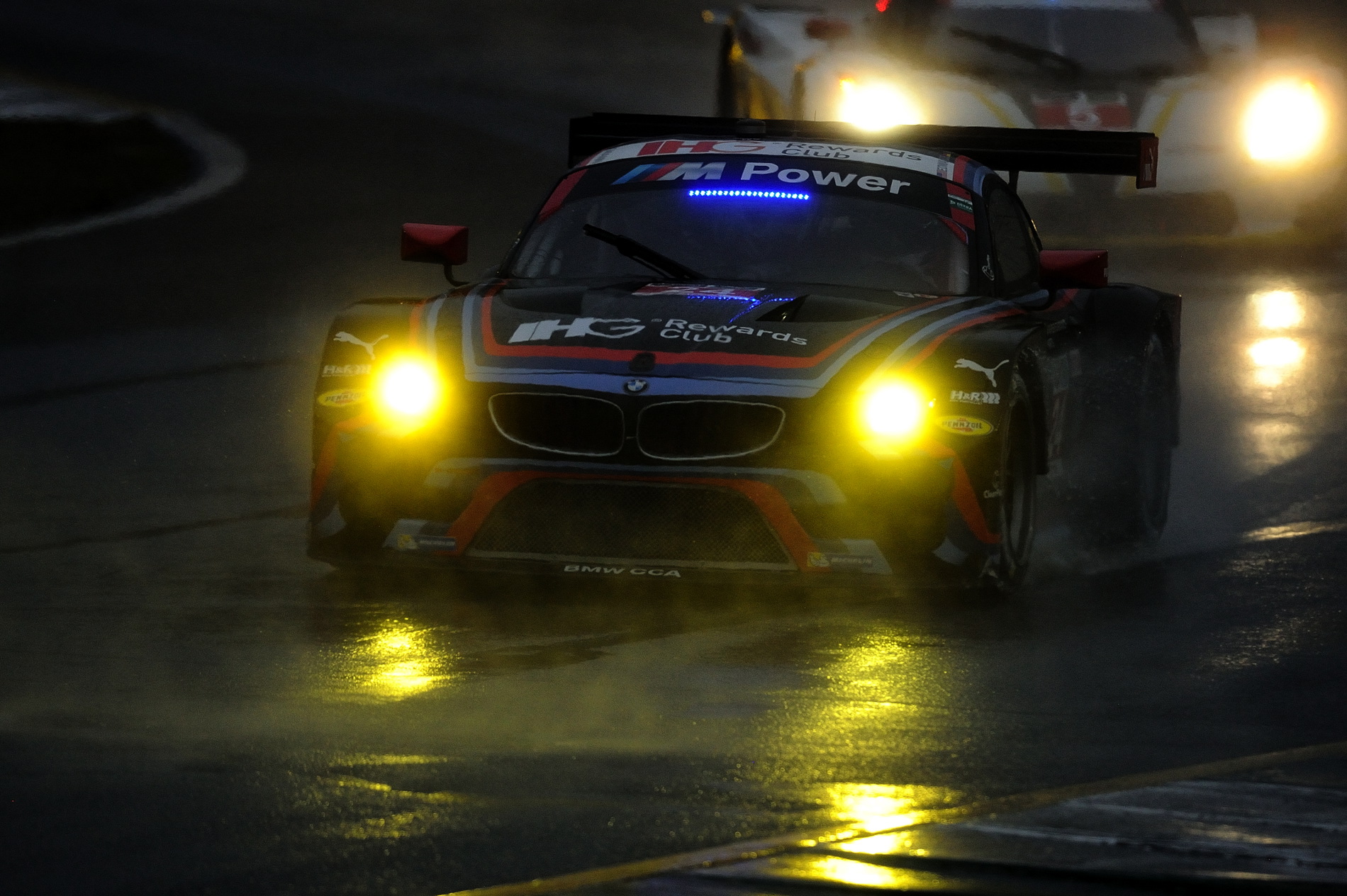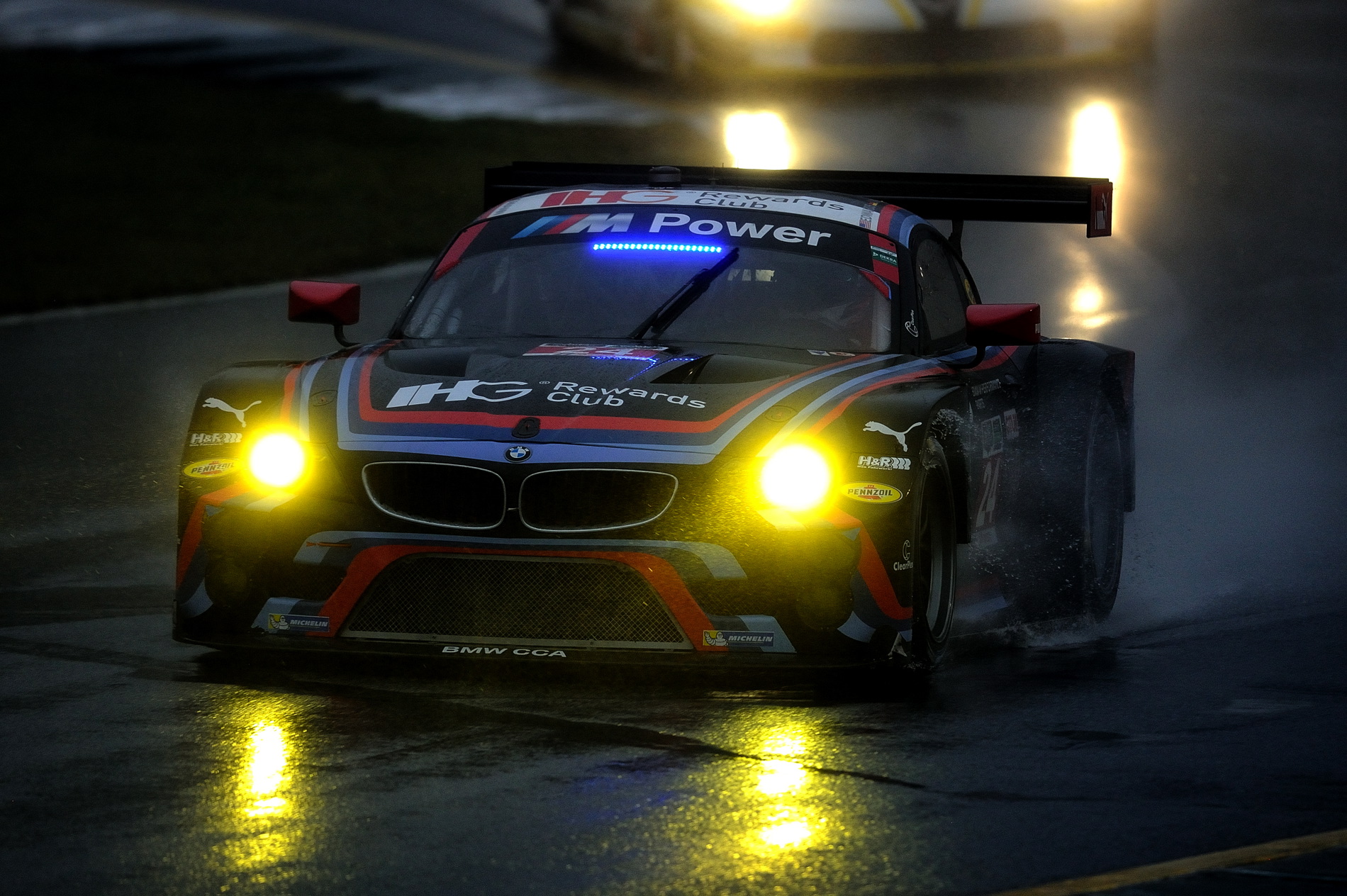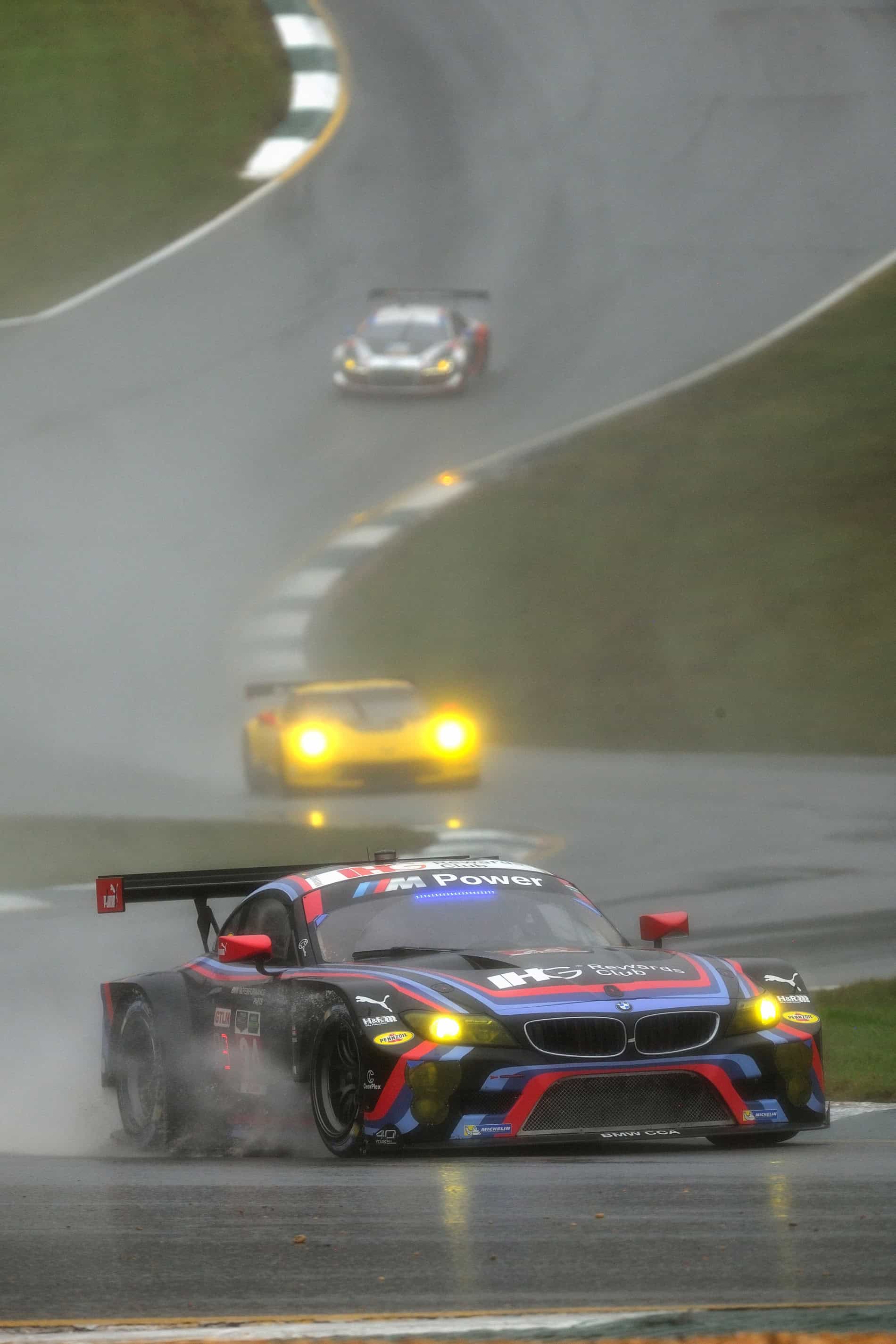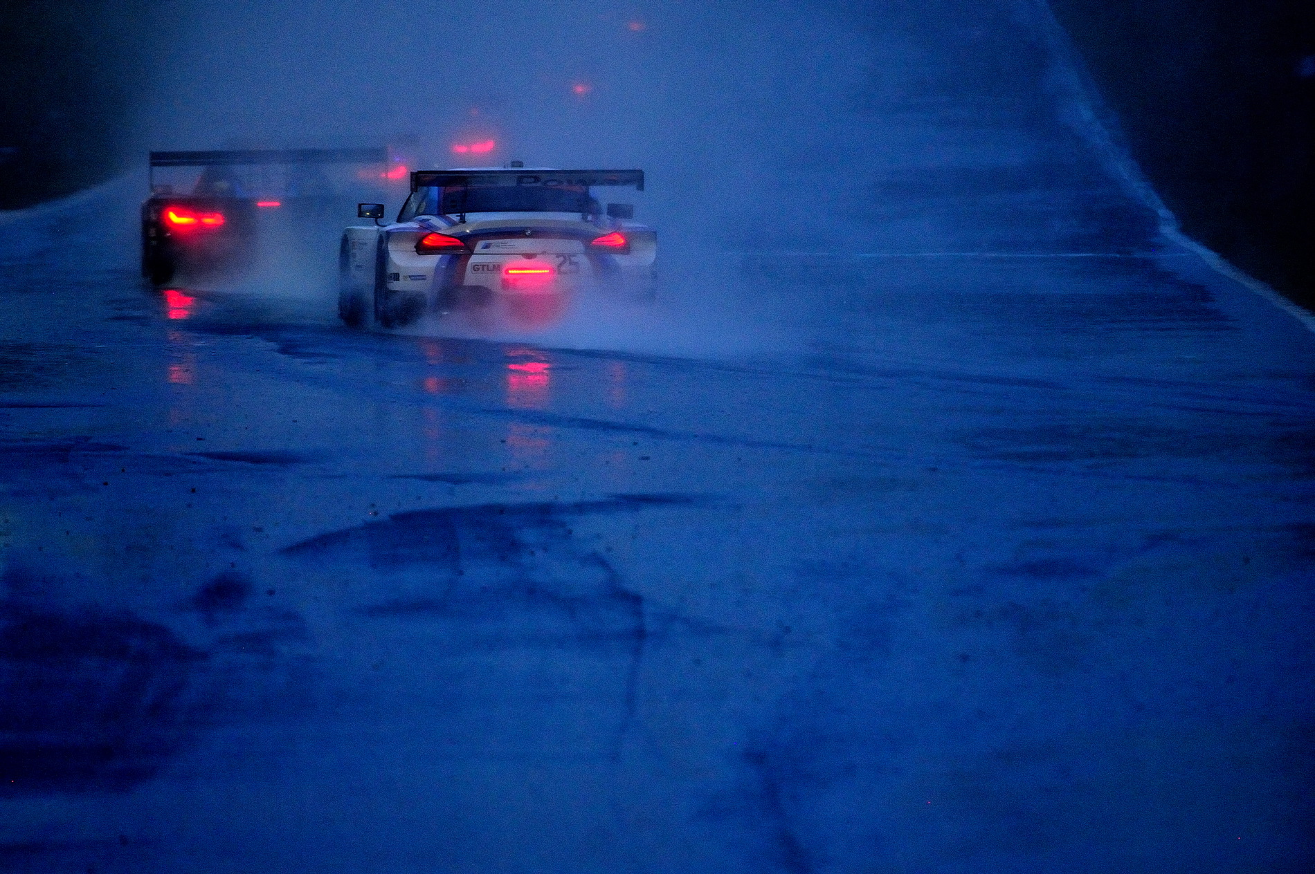 The iconic Petit Le Mans turned into the predicted water fight: When the race got underway at 11:10hrs local time, the track was already extremely wet due to the heavy rain. This made for tricky conditions. Several accidents caused full-course yellows, in which the USCC field was neutralised. Despite the terrible conditions, the BMW Team RLL drivers put in great performances without any mistakes, keeping their BMW Z4 GTLMs on track even in the heaviest periods of rain. Five hours and 22 minutes into the USCC season finale, however, the red flag was brought out due to bad track conditions. Another weather system bringing even heavier rain was visible on the radar, moving straight in the direction of Road Atlanta. After a one-hour break, the race was re-started. However, with darkness setting in, it was ultimately stopped for safety reasons at 19:01hrs local time – and the season came to an early end.
