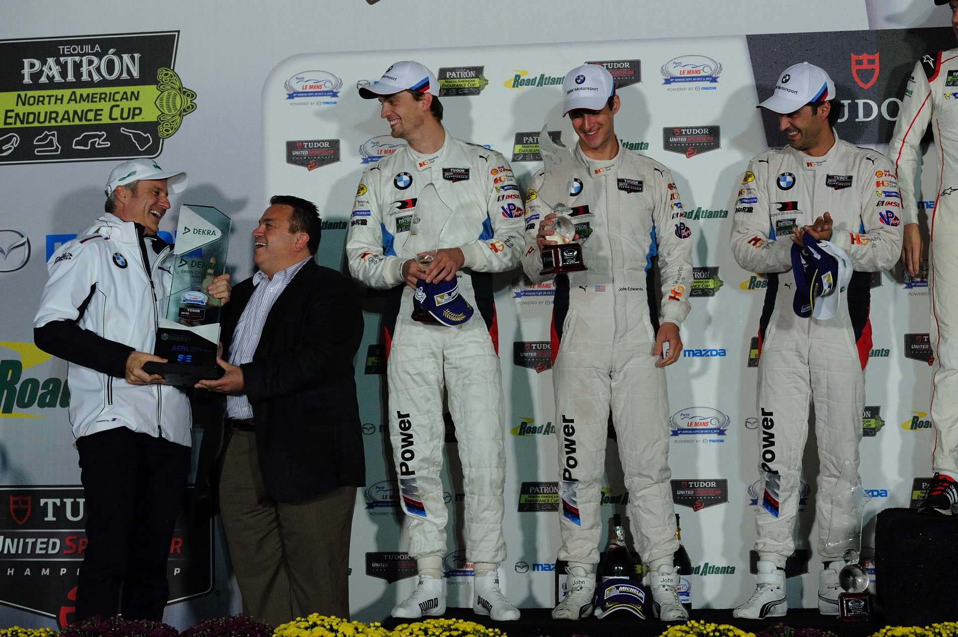 “It was a really crazy day. It was disappointing to lose the manufacturers’ championship for BMW at the last race, but at the end of the day I don’t think we had anything on the Porsches. I was just trying to survive out there in my stint. Jens at the end did a magnificent job just staying on the circuit. There was no time the track dried out, and the showers caused hydroplaning. It wasn’t a fun day, but I am happy to end up with a podium.”