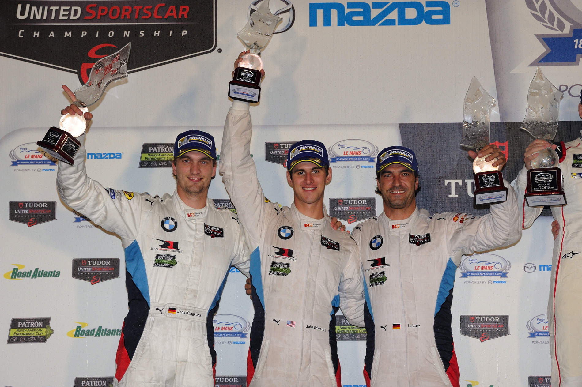 The 2015 United SportsCar Championship (USCC) came to an early end at Road Atlanta (US): At Petit Le Mans, which was called off two hours short of its scheduled ten hours due to bad weather conditions, John Edwards (US), Lucas Luhr (DE) and Jens Klingmann (DE) finished second in the GTLM class with the number 24 BMW Z4 GTLM. It was also P2 in the overall classification for the BMW trio. Car number 25, driven by Bill Auberlen (US), Dirk Werner (DE) and Augusto Farfus (BR), came fourth in the GTLM category. Porsche’s Nick Tandy (GB), Patrick Pilet (FR) and Richard Lietz (AT) secured victory at Road Atlanta (US). For the third time this season, the number 24 BMW Z4 GTLM won the DEKRA Green Challenge Award.