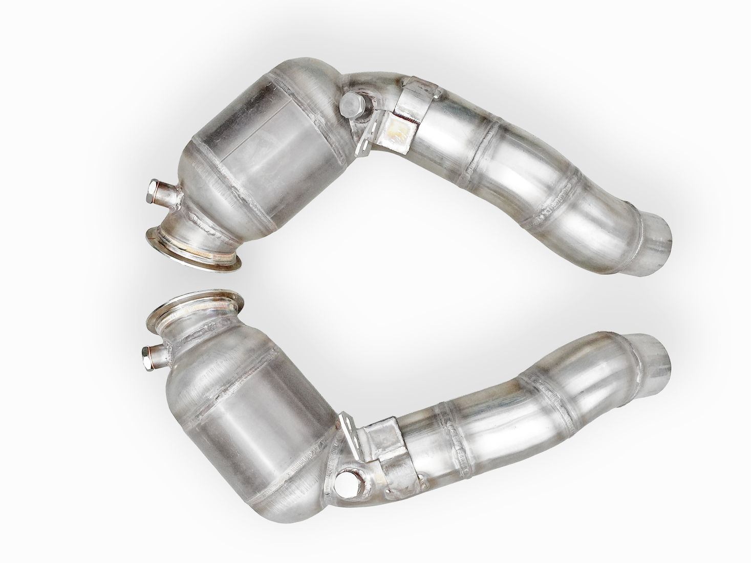 The custom exhaust system also features flow-optimized downpipes that can be offered without a catalytic converter, and some titanium link pipes with tailpipes and resonators.