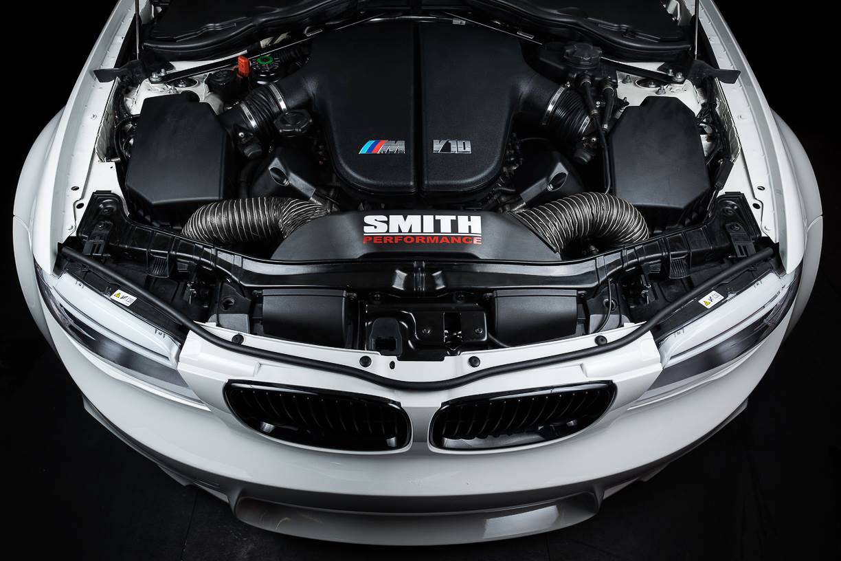 A V10 engine transplant into a small hatchback is a monumental challenge, but the folks over at Smith Performance decided to try the impossible. Using the E87 1 Series hatch as the base platform, the tuning shop takes BMW’s legendary 5.0 liter V10 engine – along with the SMG gearbox – and gives the small hatch 507 horsepower and 520 Nm (384 lb-ft), and unmatched engine sound for a car in this segment.