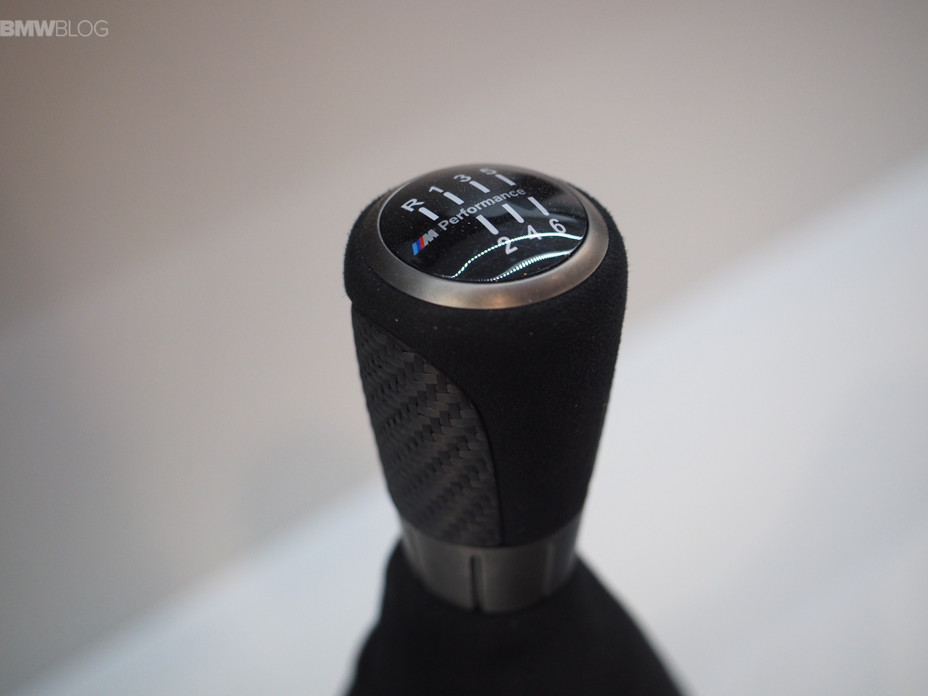 Another item displayed was the BMW M Performance gear selection lever complete with trim element for the M twin-clutch transmission in open-pore carbon fiber. The manual shift knob was available as well.