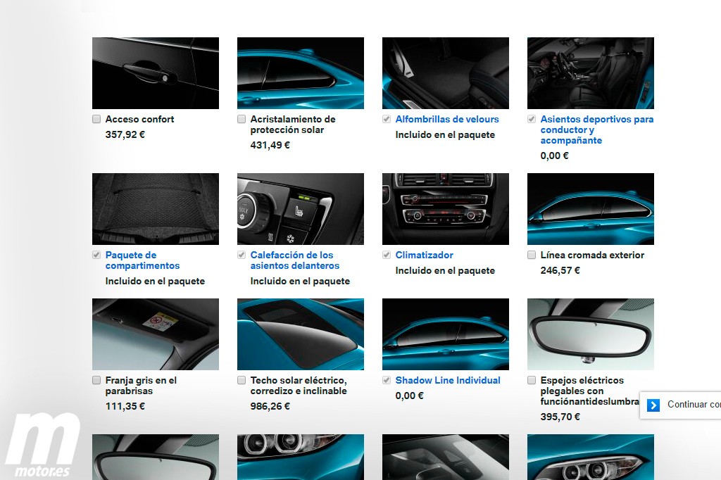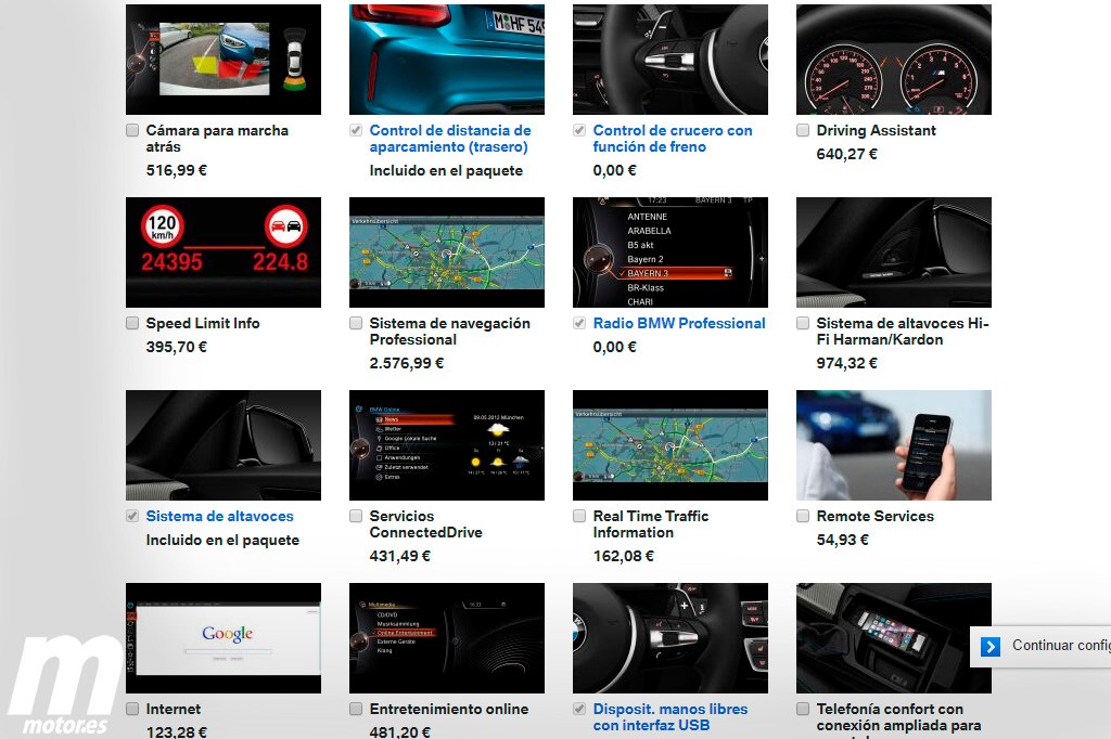 The Connected Drive services package will cost 756.40 euros and includes Remote Services (interact with the car at a distance) and access to traffic information in real time. It also has other interesting options available, like reversing camera or adaptive lights.