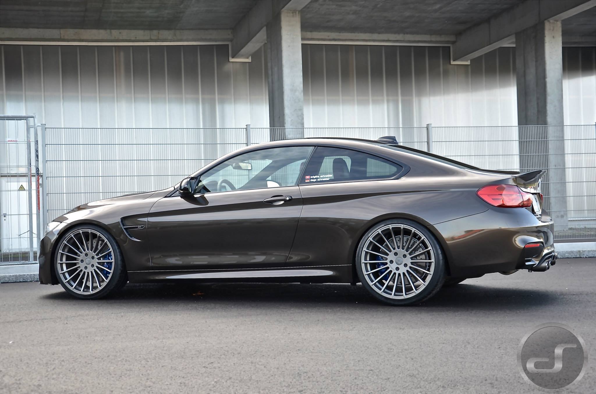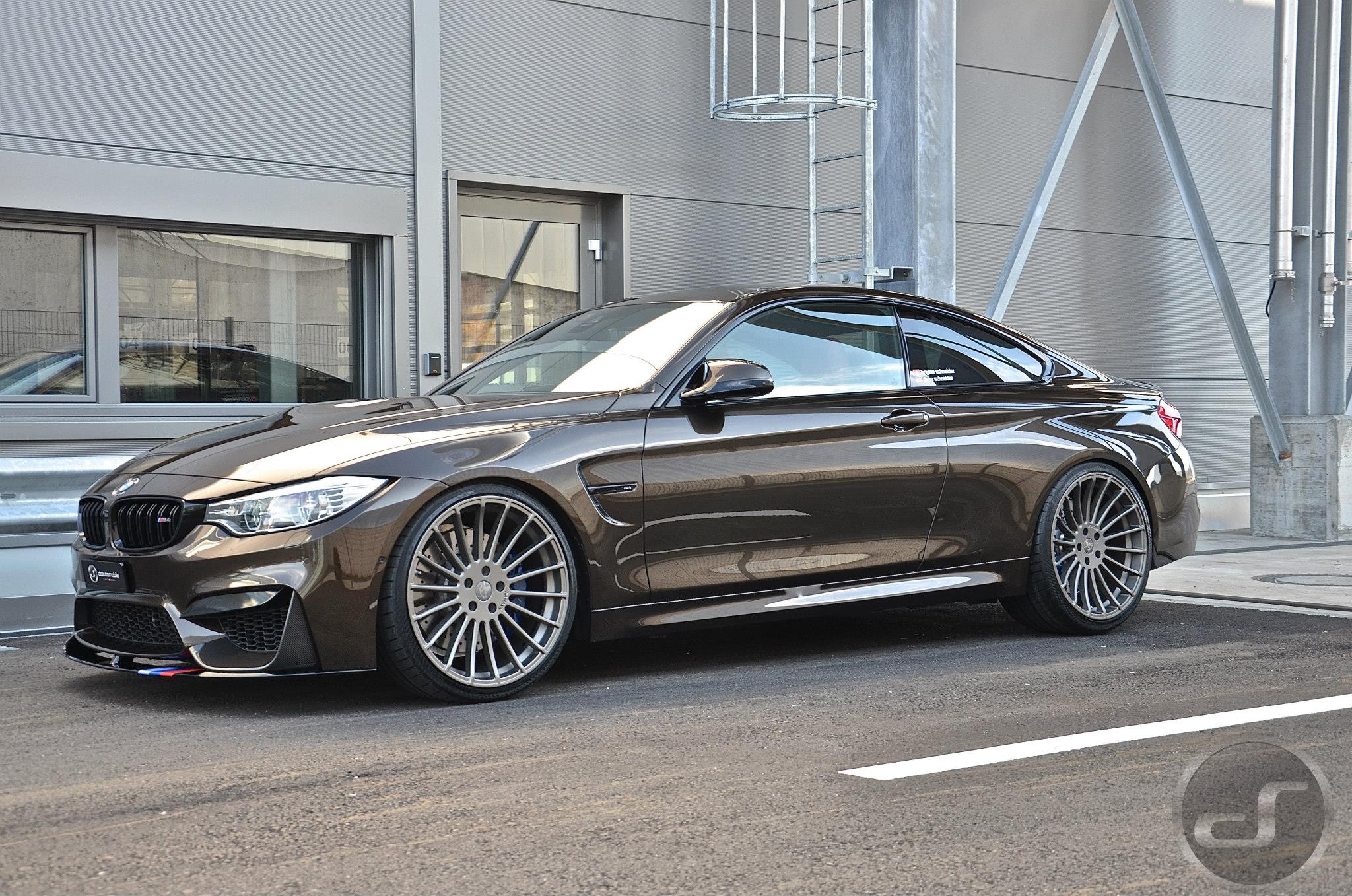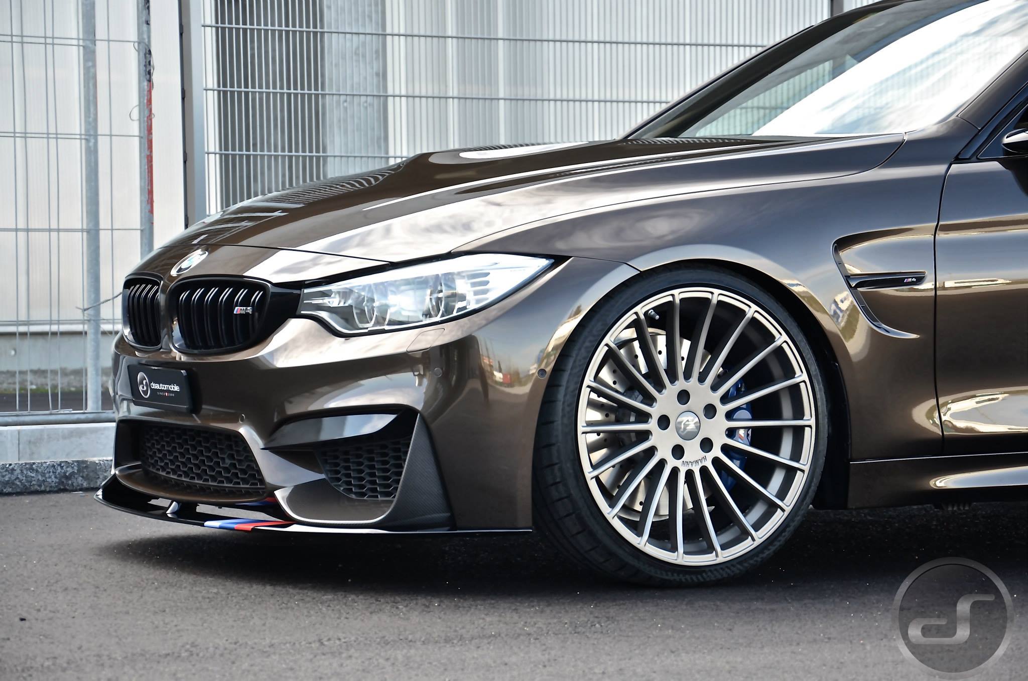 The folks over at DS Automobiles & Auto Works decided to combine the beauty of the metallic brown with the sporty parts from the M Performance Parts catalog. The Pyrite Brown M4 Coupe now comes with a black kidney grille, a front carbon fiber splitter attachment and a carbon fiber rear spoiler lip. Furthermore, the sporty coupe now sits on new custom wheels from Hamann Motorsport.