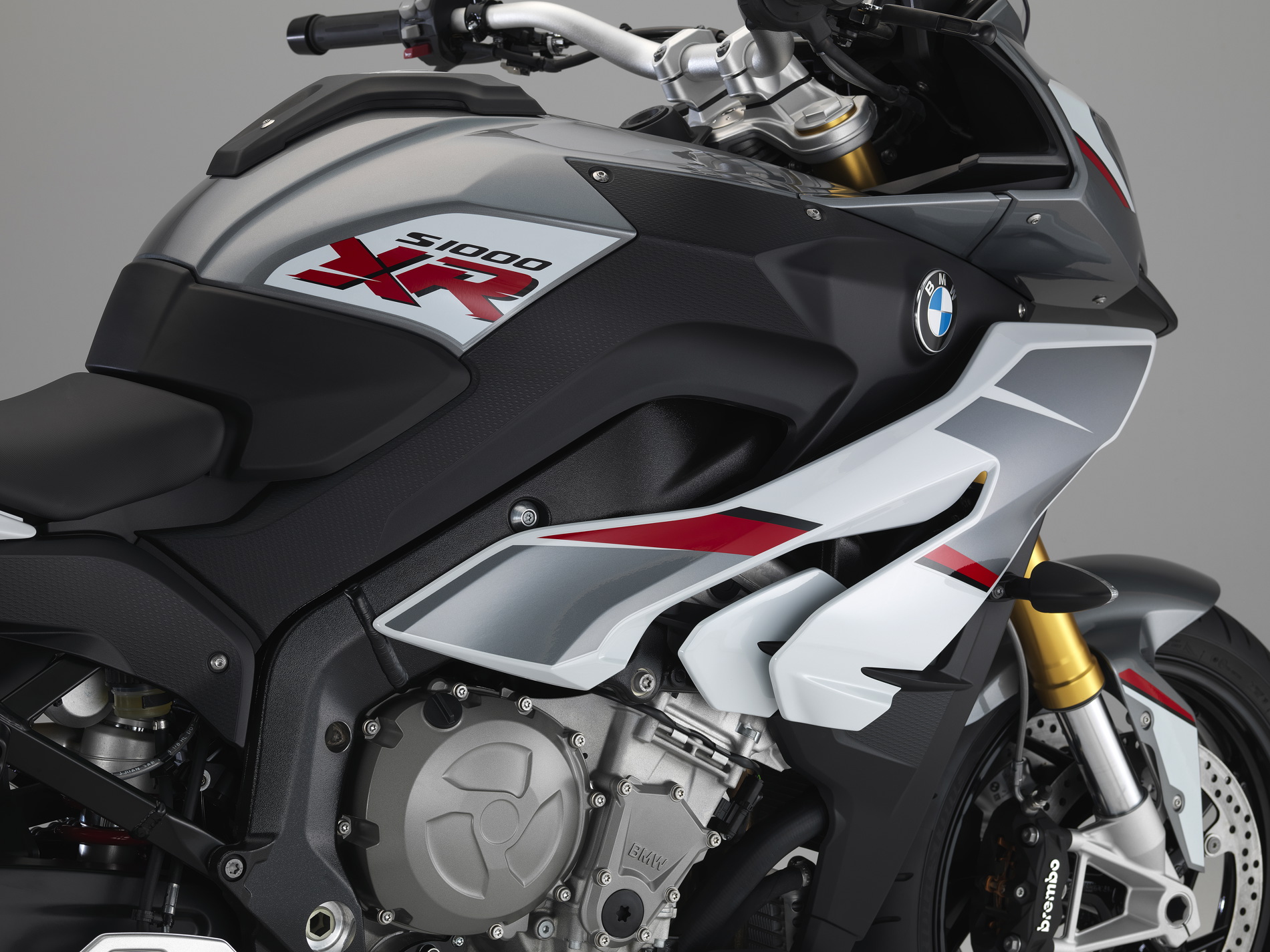 Light white/Granite grey metallic/Racing red encompasses both of the aforementioned colors as well as the grey for further, dramatic effect. However, in choosing the newest color option, you also consequently opt for the model inscription to be on the side areas of the fuel tank instead of being placed on the side fairing parts.