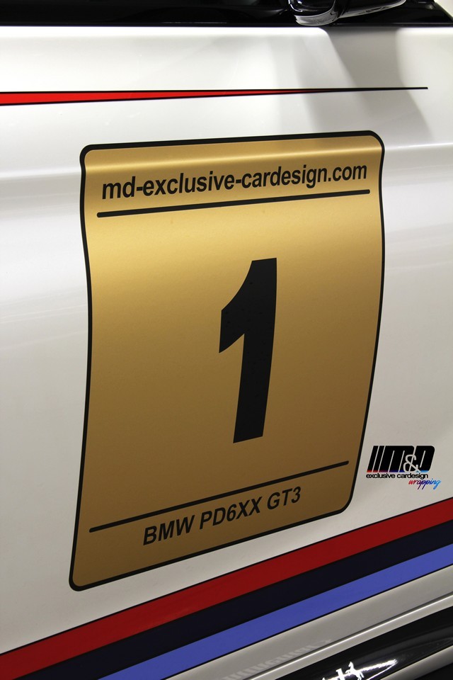Using a BMW 650i Coupe as the base, the PD6XX GT3 project car gets a bespoke wide-body aerodynamic kit which resembles the dimensions of the M6 race car. The livery is similar to the M6 GT3 with the usual M colors. Gold number graphics on the doors are also included, as are a few sponsorship logos on the skirts to complete the M6 GT3 transformation.