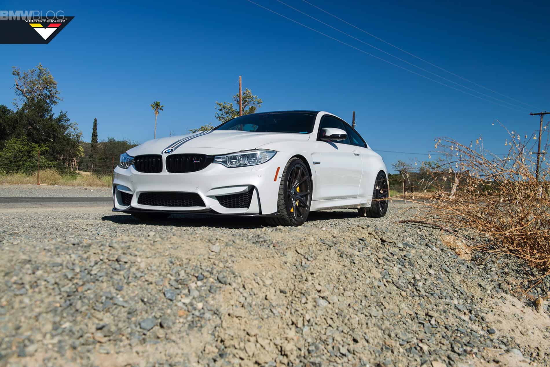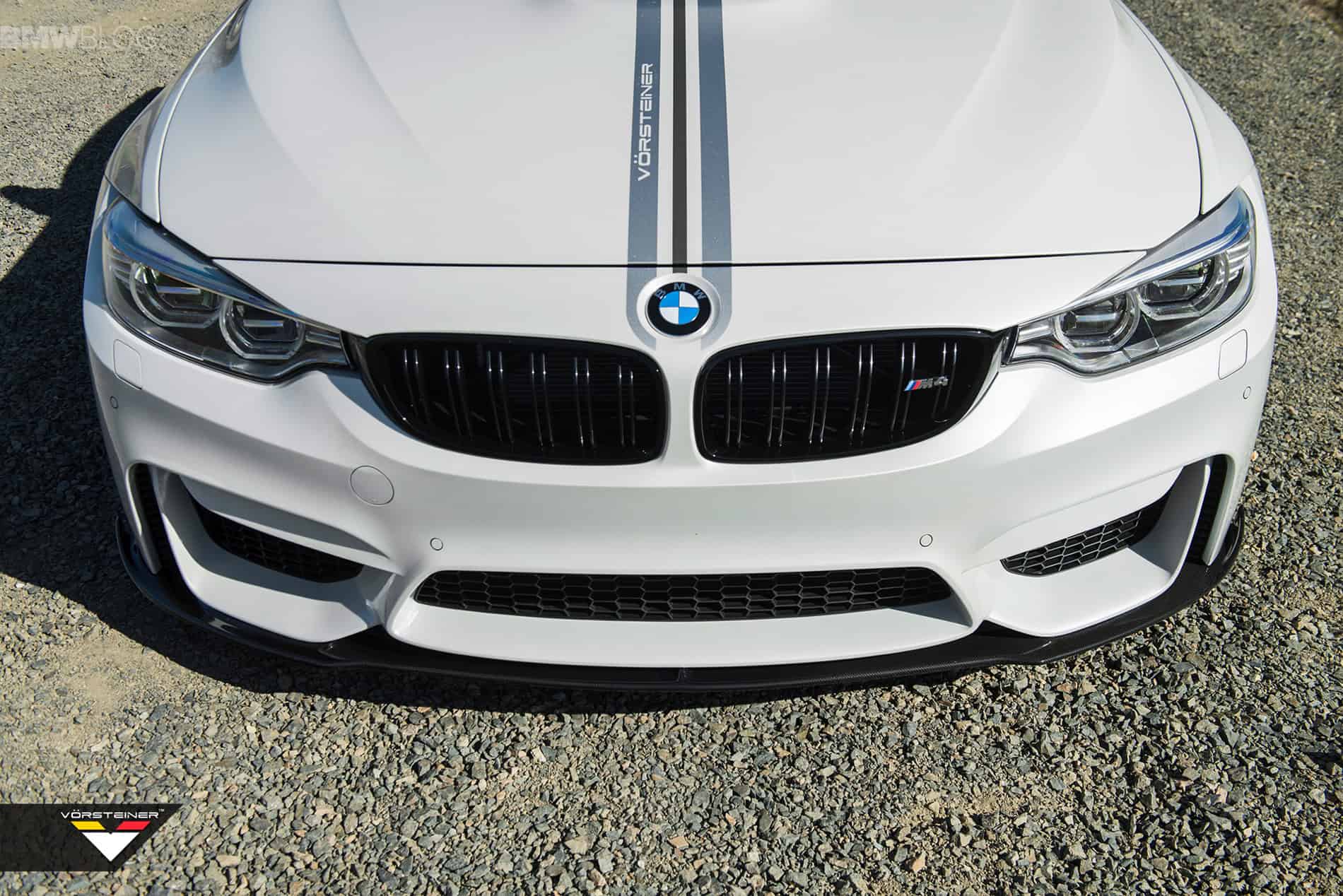 Additionally fitted to this BMW M4 are Vorsteiner V-FF 103 Flow Forged wheels. These come in sizes of 20×9.5 in the front and 20×10.5 in the rear. Thanks to a Carbon Graphite finish, the wheels look impressive against the Alpine White exterior.