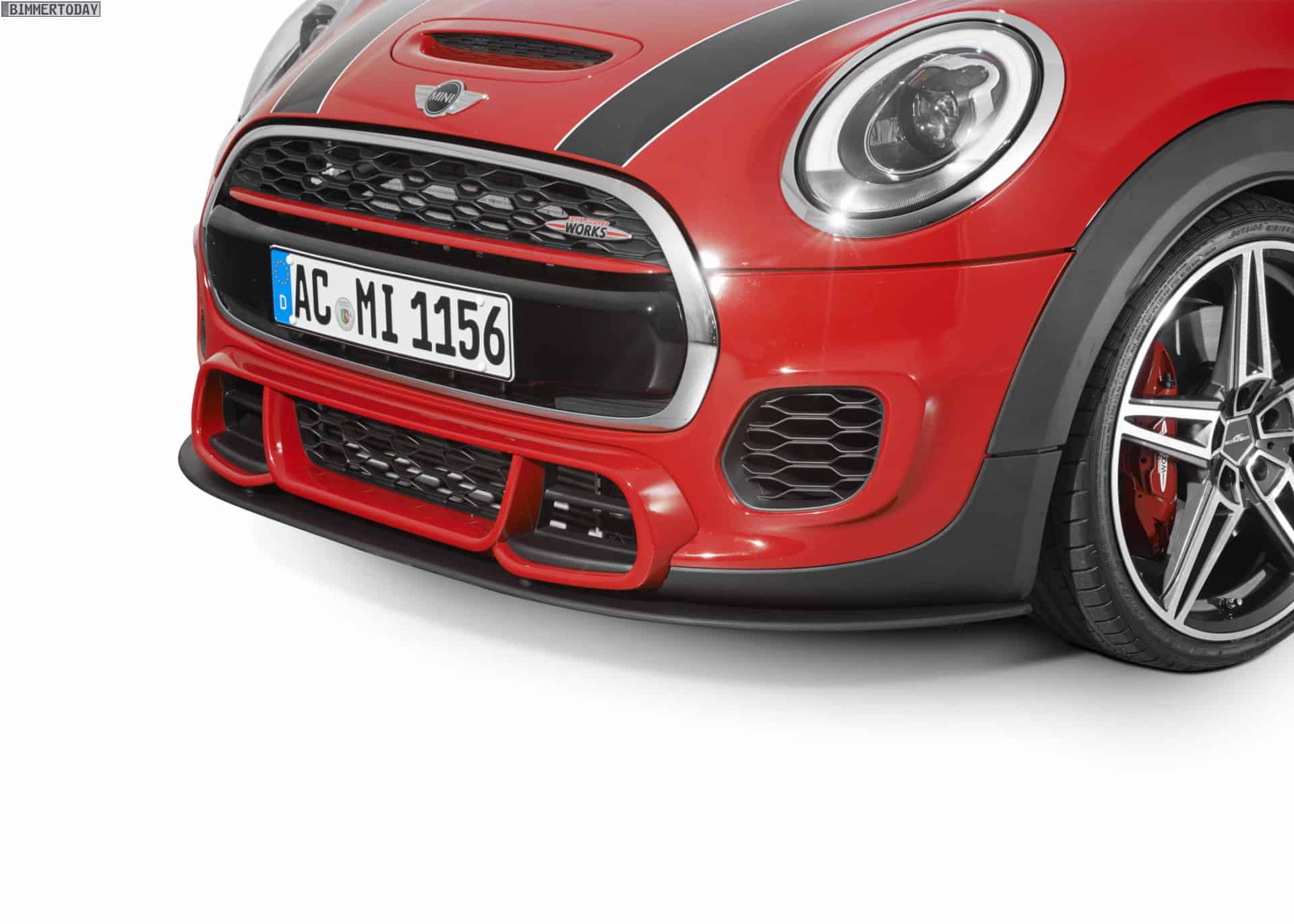 To match the increased power, the AC Schnitzer program for the new MINI John Cooper Works also comes with design and aerodynamic changes. The front splitter and the 19-inch double-spoke wheels are specially developed for the F56. The ride height was lowered by up to 30 millimeters at the front and up to 35 millimeters in the rear, thanks to new suspension springs.