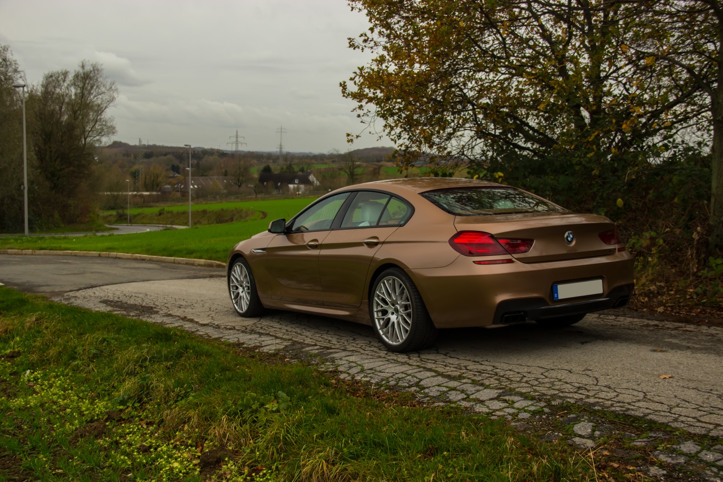 Featuring an elegant copper matte metallic body wrap, the 6er Gran Coupe sits on a set of custom 20-inch Y-spoke alloys wrapped in 245/35 ZR20 front and 275/30 R20 rear Pirelli P Zero tires.