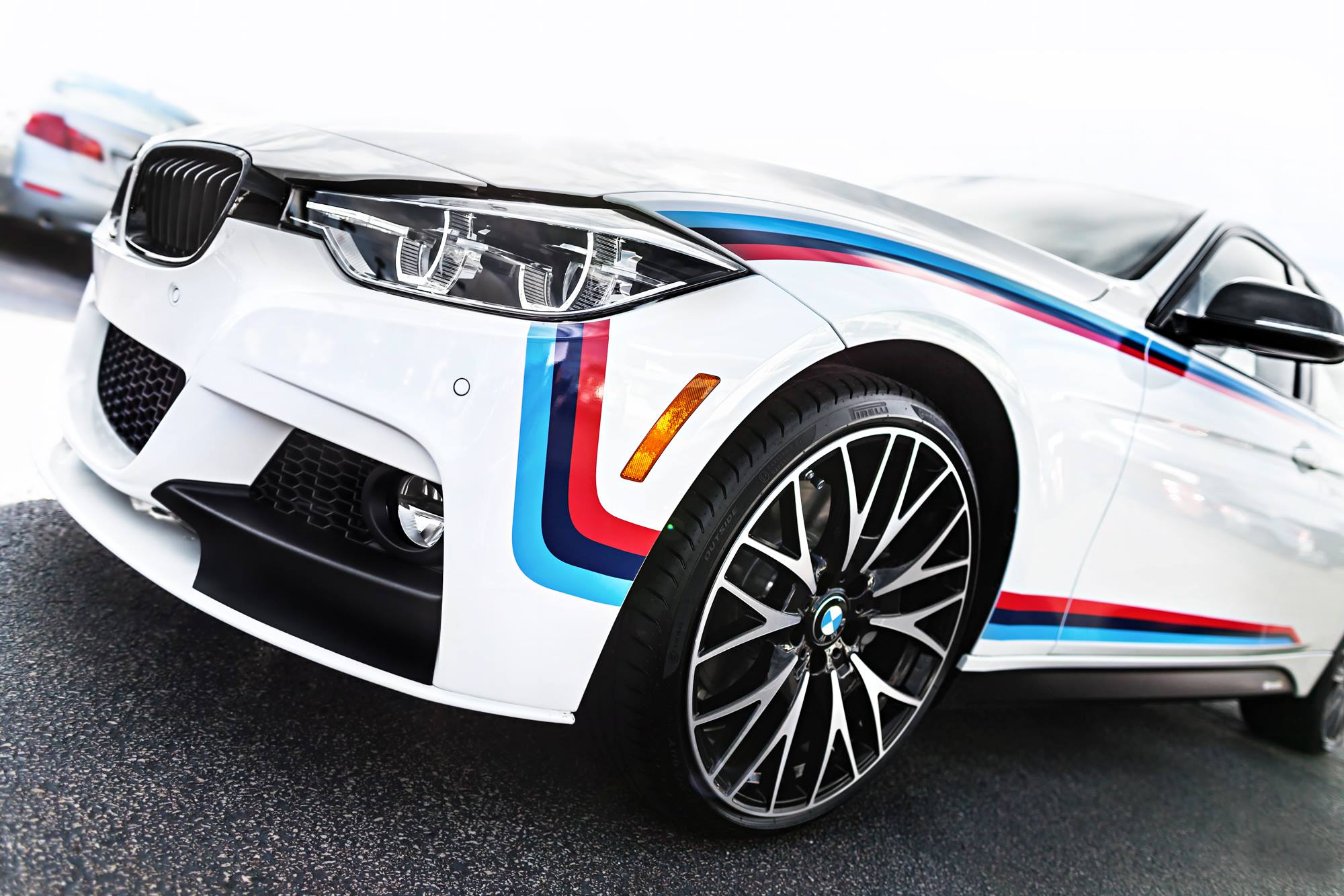 Laurel BMW of Westmont has prepared a special project based on the new 2016 BMW 340i. The Illinois-based dealership used an Alpine White model while dipping into the M Performance Parts Catalog for some aero parts. Yet the first thing that stands out is the M Stripes packages which matches perfectly the pristine white while accentuating the design lines. The stripes are available for several BMW models and they can be ordered directly from BMW or your local dealer.