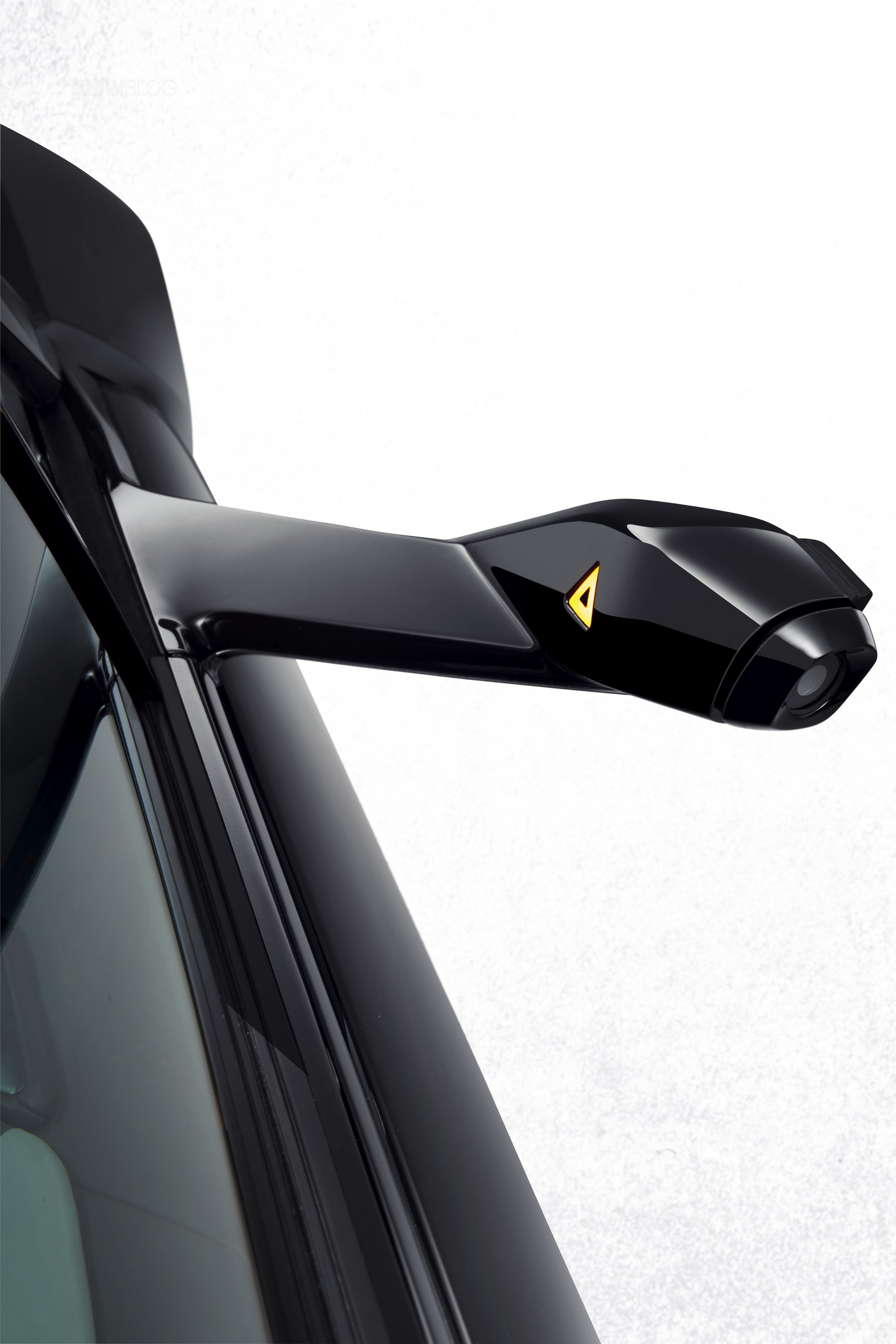 BMW i8 Mirrorless incorporates two insignificant looking cameras, accommodated in aerodynamically optimized holders, which replace the existing exterior mirrors. They are supplemented by a third camera mounted on the upper edge of the rear windscreen.