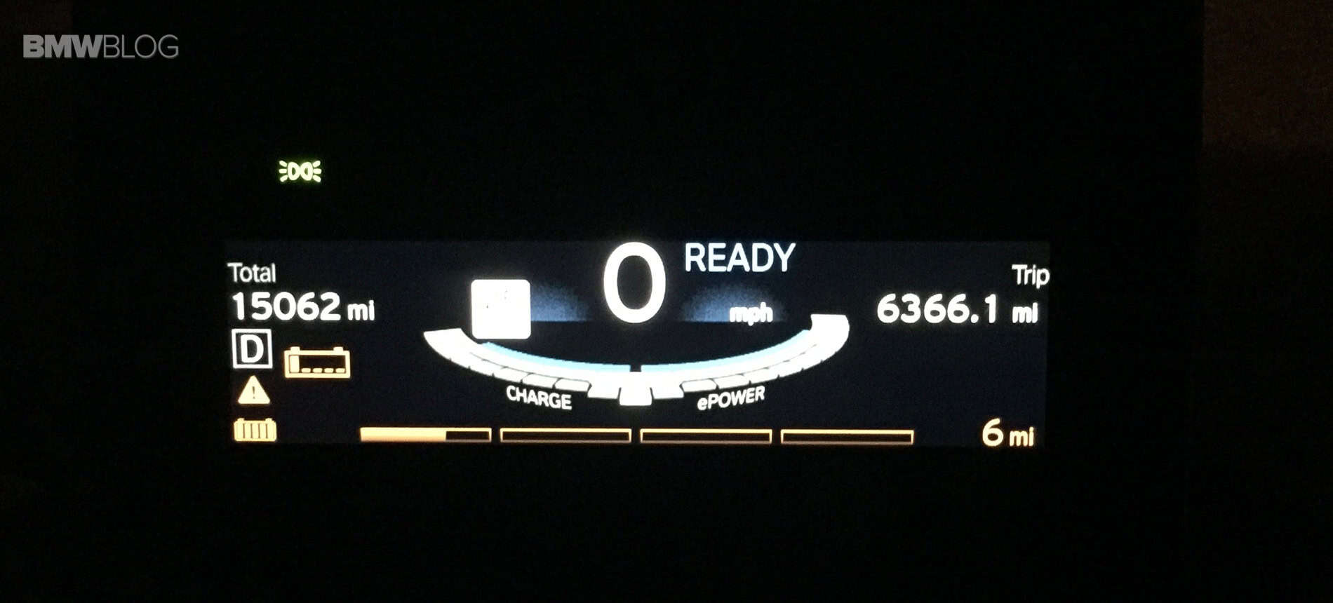 I did not pre-condition as this was a last minute trip but the battery was fully charged and again the i3 was in a heated garage. Setting off I used the heat sparingly and cycled the defroster on and off to remove the recurrent internal window fogging. The temperature was between 26-30F and the sun was out. My overall predicted range fell from its usual 80 miles to about 60 miles. When I got home our i3 BEV had 6 miles left on the Guess-O-Meter.