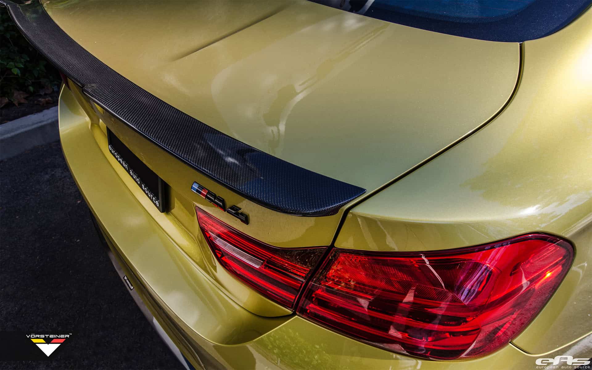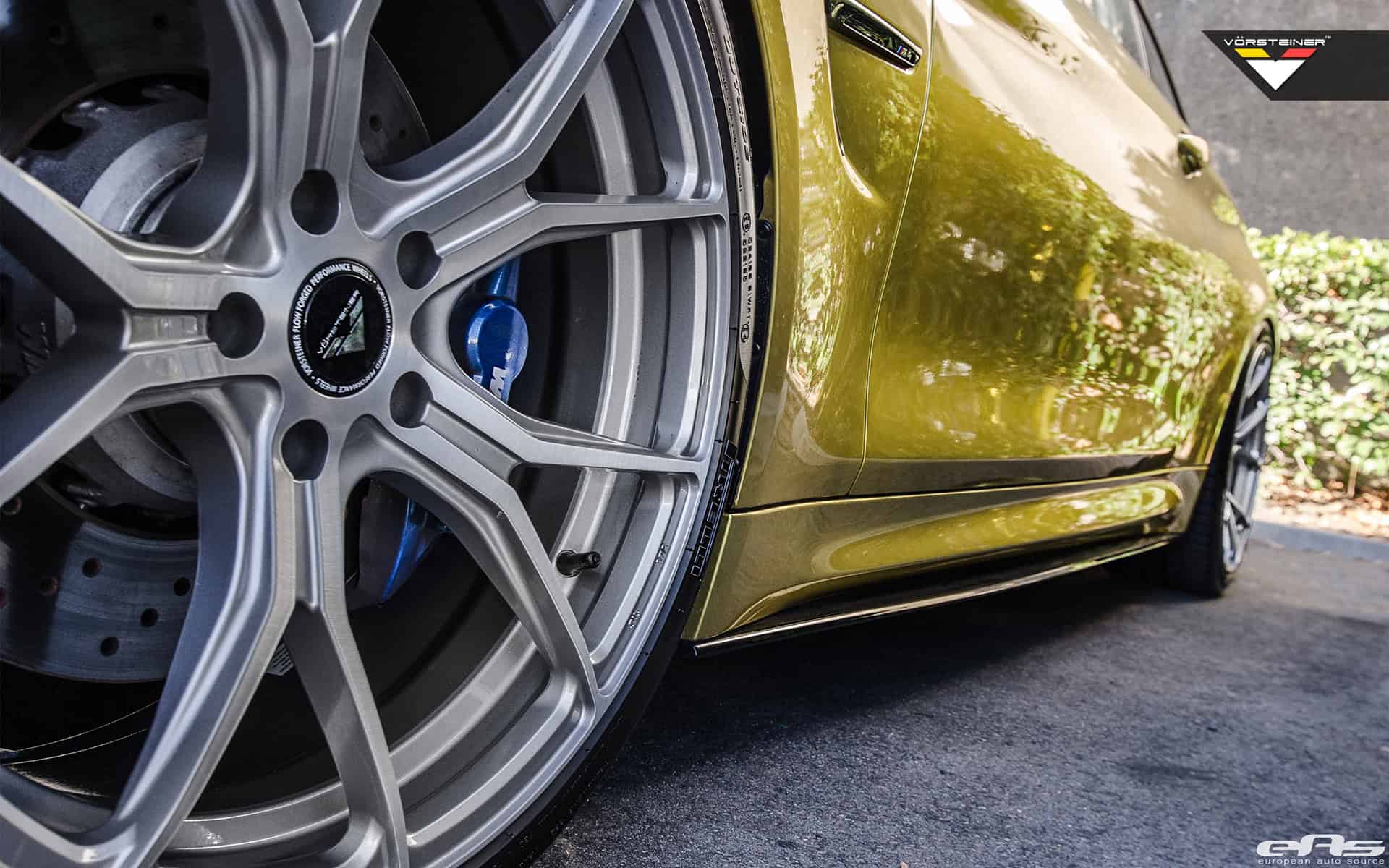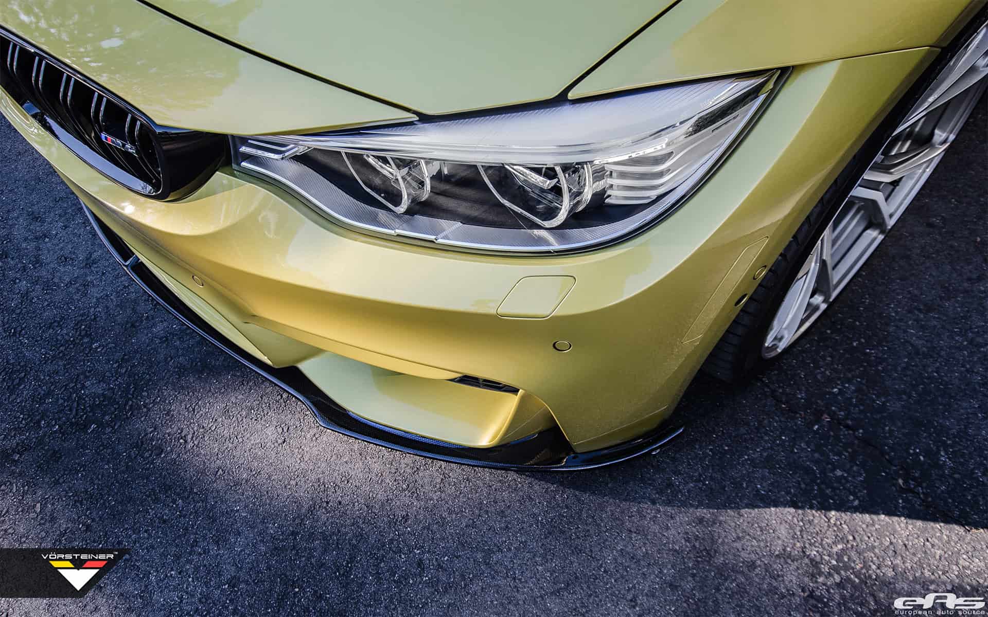 The BMW M4 seen here comes equipped with a Vorsteiner EVO front lip spoiler, Vorsteiner EVO rear diffuser and a Vorsteiner EVO decklid spoiler. All of the parts are perfect examples of what Vorsteiner stands for – high-quality, precision and perfect fitment, yielding excellent looking carbon fiber aero parts.