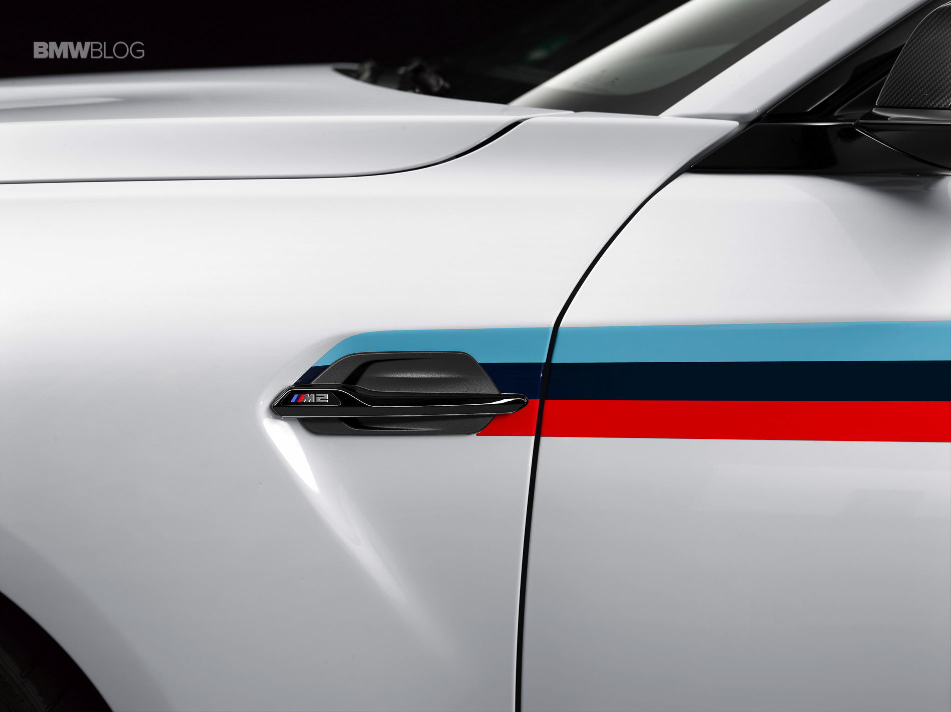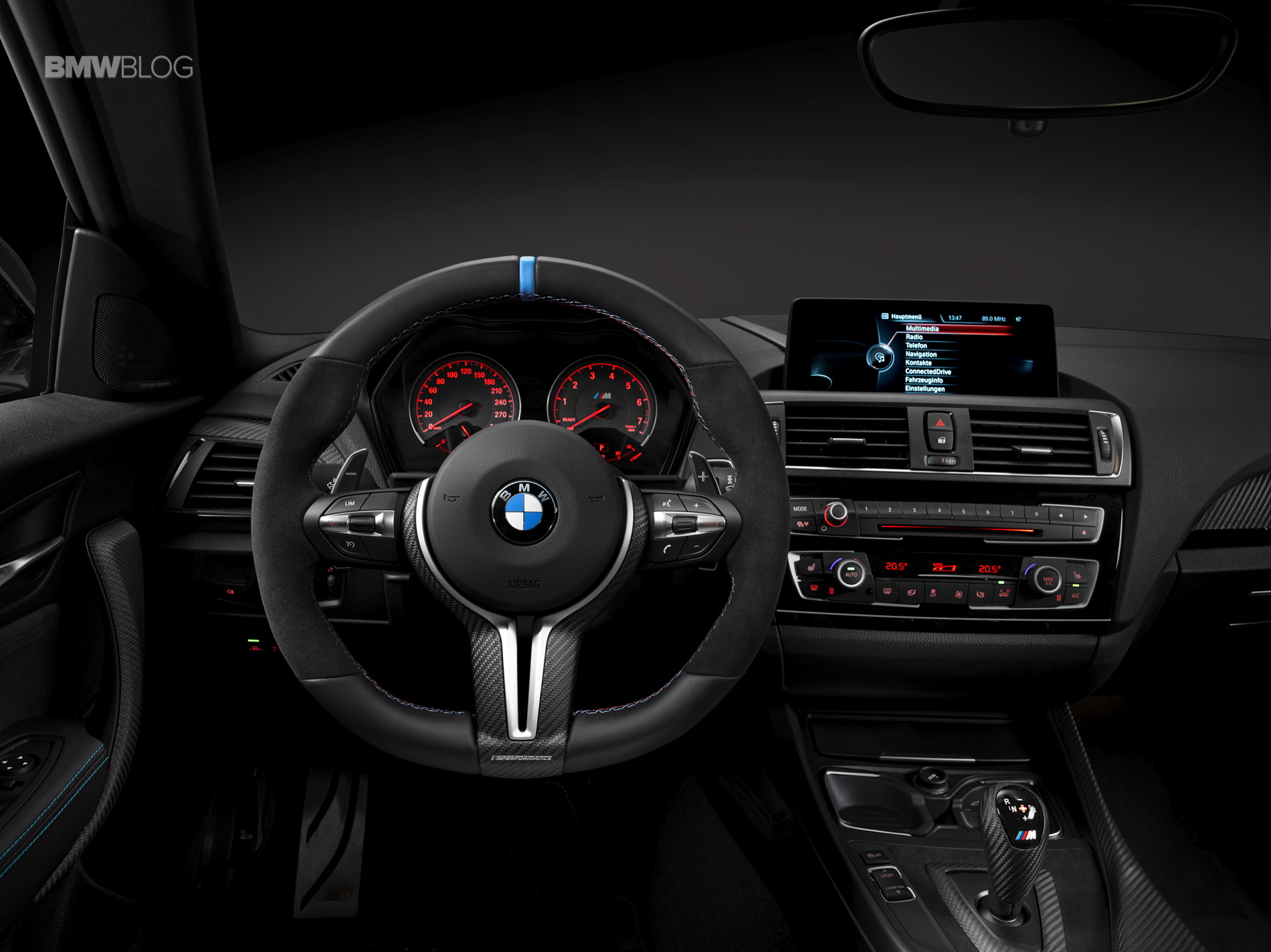 The new BMW M2 Coupé (combined fuel consumption: 8.5 l/100 km; combined CO2 emissions: 199 g/km)* sets the benchmark in the segment of compact high-performance sports cars when it comes to driving dynamics and performance. Its extrovert design further underscores the car’s highly dynamic character and outstanding suitability for the race track. From March 2016, the dynamic qualities and the visual appearance of the BMW M2 Coupé can be further enhanced with the newly presented range of BMW M Performance Parts. They comprise components derived from motor racing for the areas of aerodynamics, engine, cockpit and suspension which meet the very highest standards in terms of functionality and design.