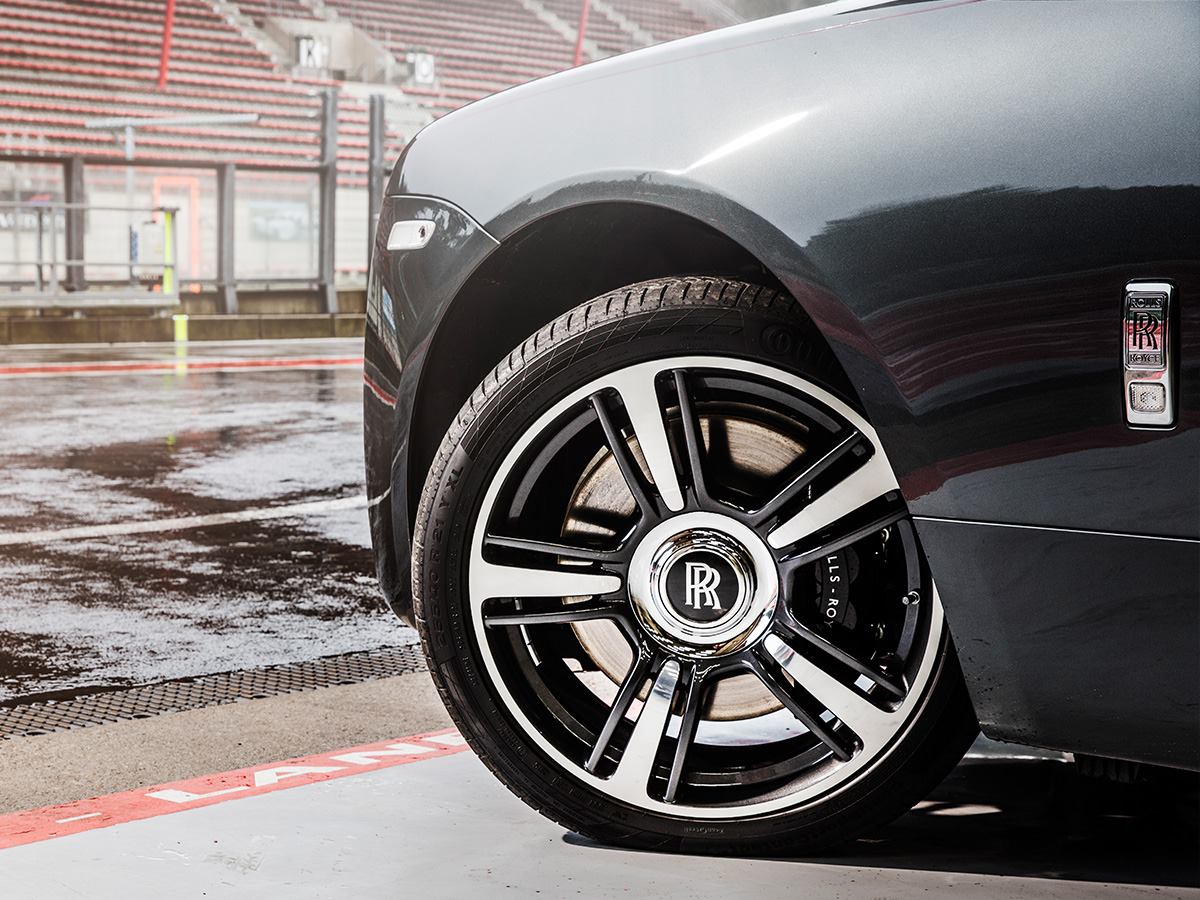 The Wraith features a “Flagstone” exterior – described as a new take on the traditional “racing green” hue – paired with a Consort Red coachline, while the silhouette of the Spa-Francorchamps race track forms a distinctive motif on the Tan leather headrests.