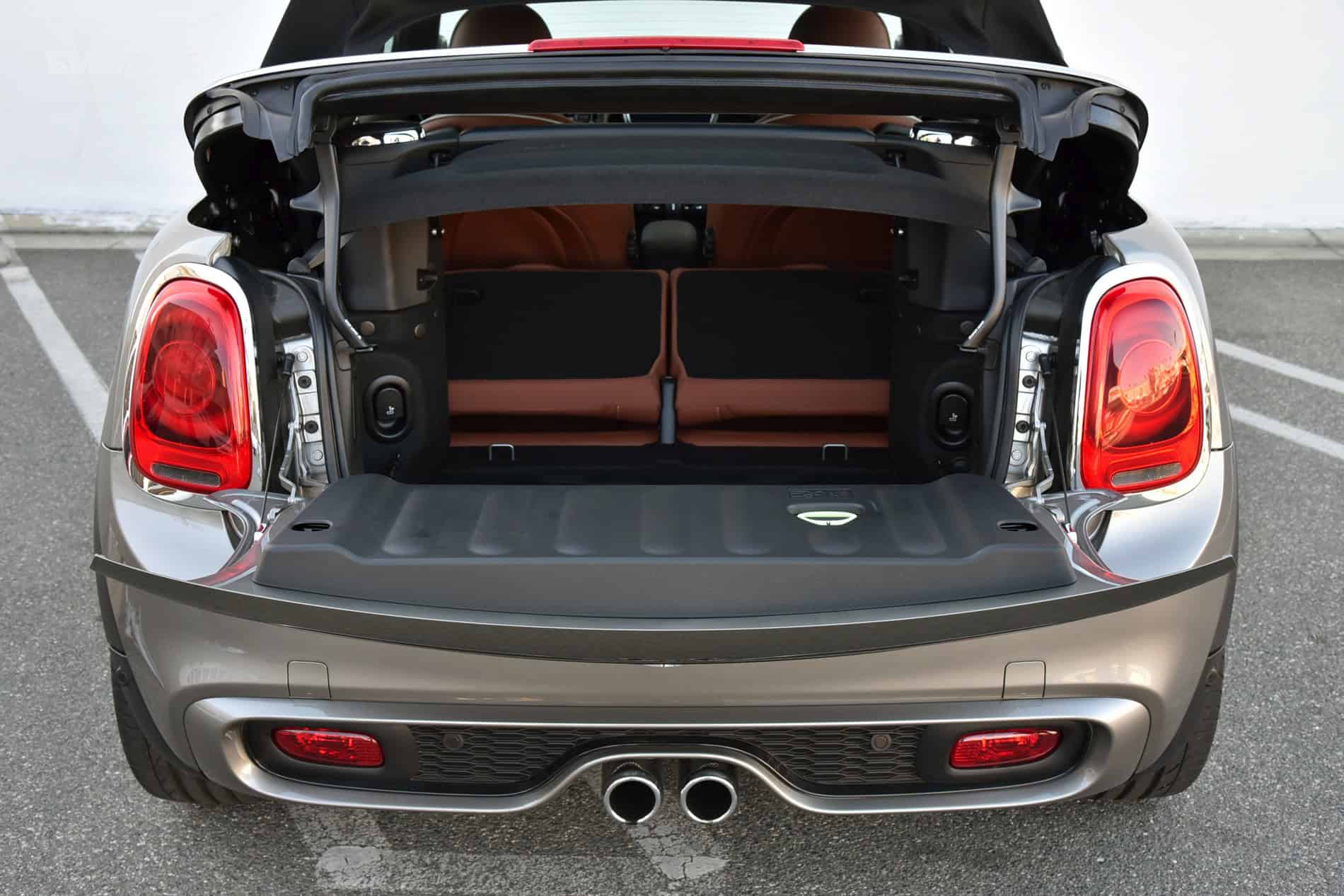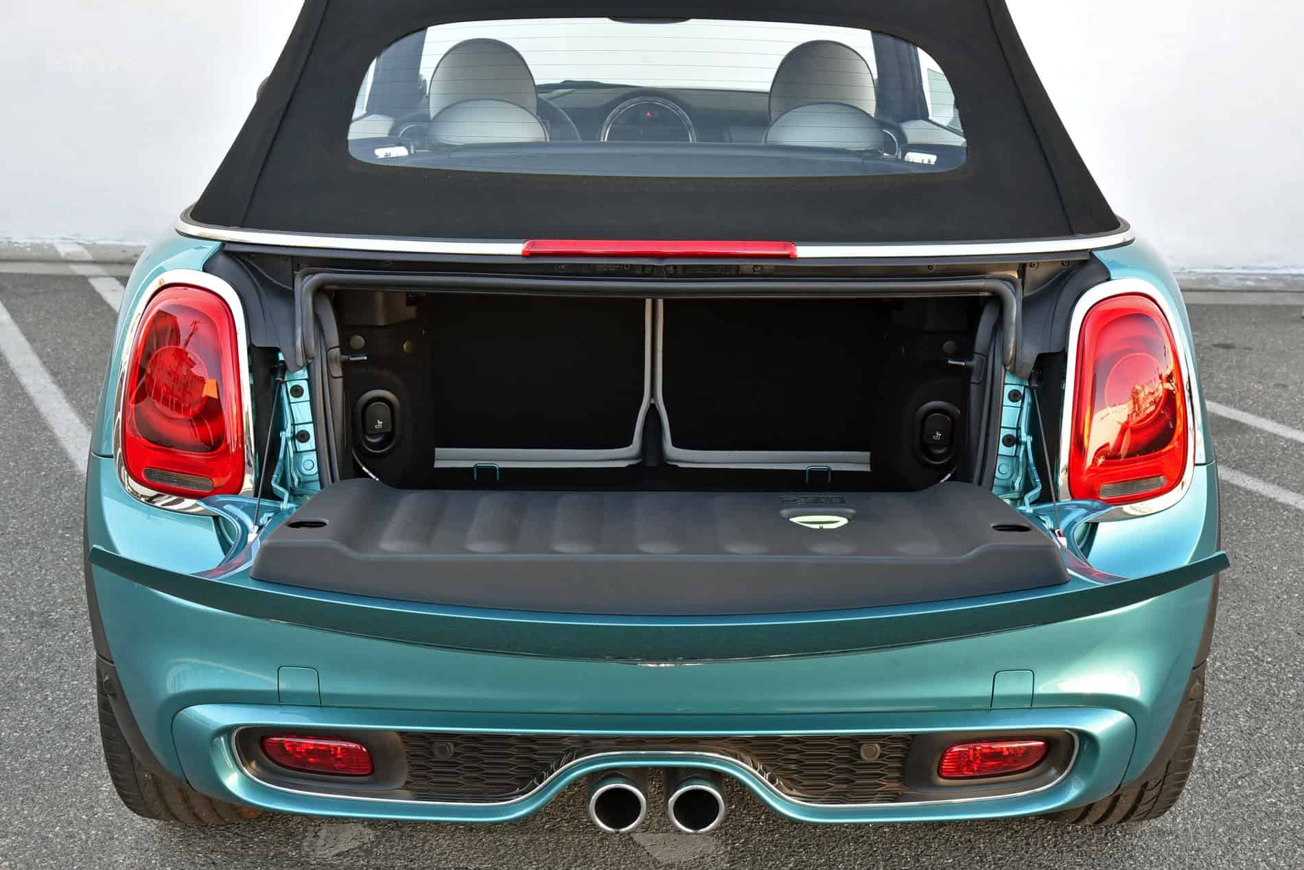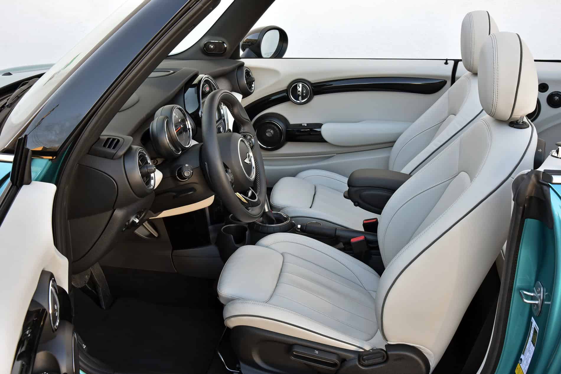 But quirks aside, the interior is just as well built and filled with as many quality materials as the Coupe. With the top up, it’s quieter than expected on the inside and MINI does a nice job of filtering out road noise. With the top down, the cabin is also quite calm and serene, with very little buffeting, as the Convertible’s windscreen is more upright and the shoulder line has been elongated. And to keep drop-top passengers safe in case of a rollover, two pyrotechnic-controlled aluminum rollover bars eject from behind the passengers’ heads when the car detects a rollover. The windscreen and A-pillars have also been reinforced in case of a rollover.