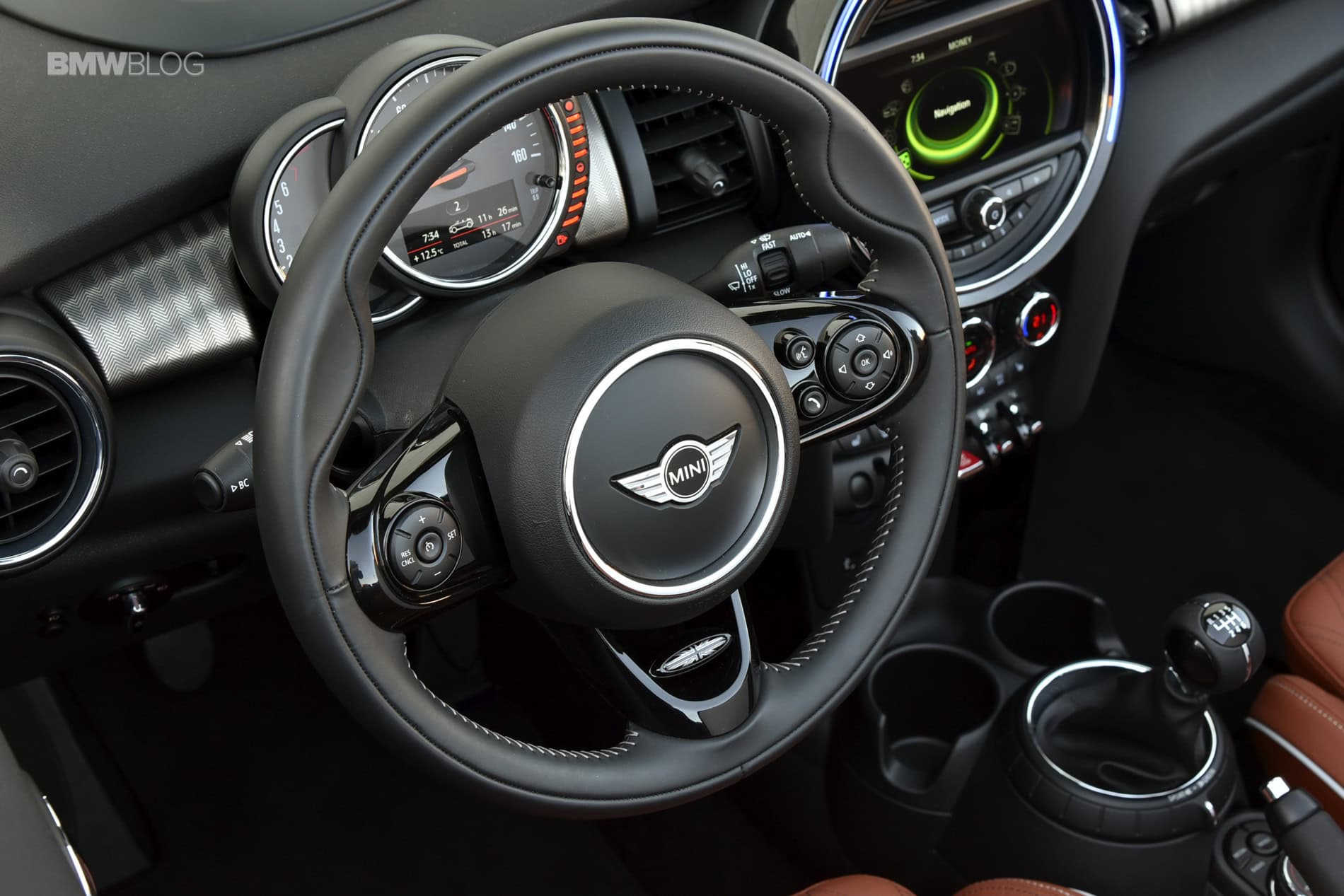 On the inside, very little has changed, if anything at all, as MINI’s new interior design has been much better with this latest generation. It still has its quirks about it, like the center red start/stop toggle, and it is very small, but is just fine ergonomically. Is it as easy to use as a BMW interior, or as attractive and well built? No, but it’s fun and interesting and it shakes things up a bit. Many German interiors are a bit too serious, so MINI’s typical British humor is quite refreshing. It’s good to get some Monty Python every now and again.