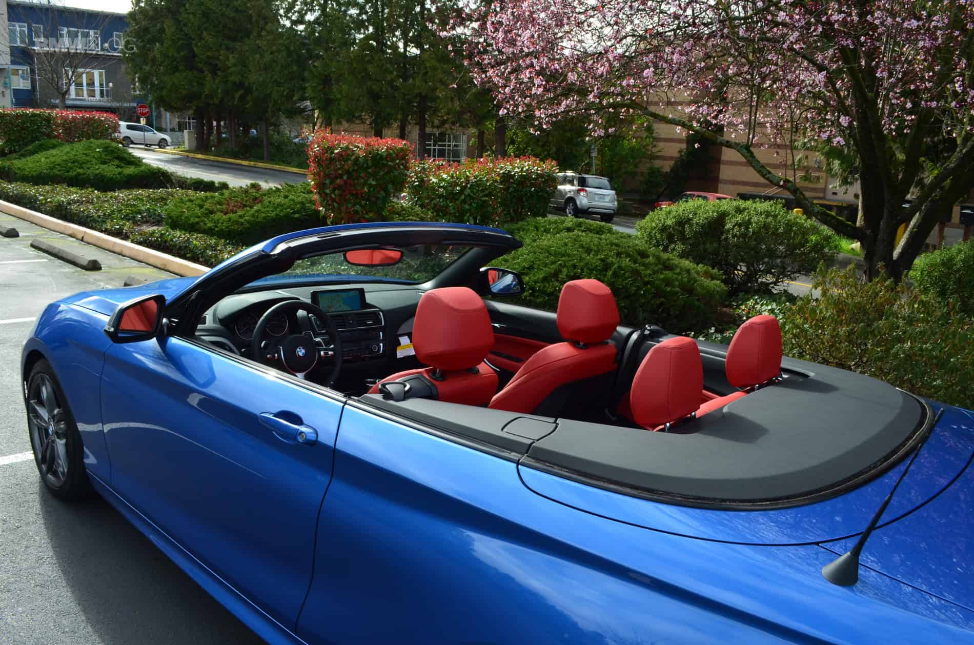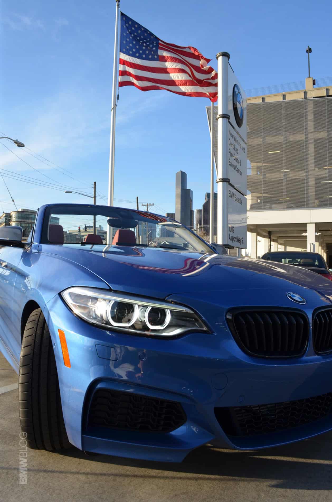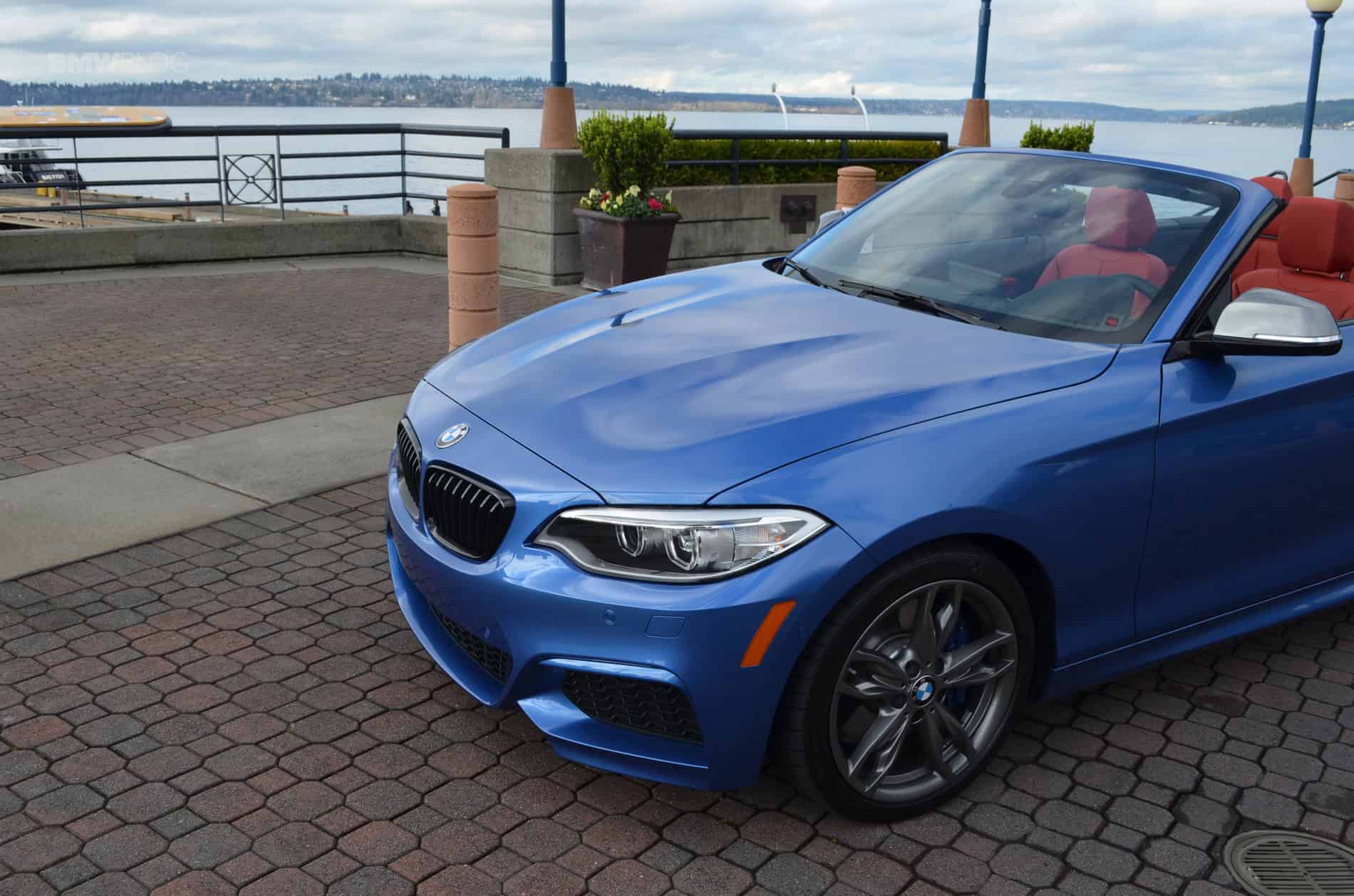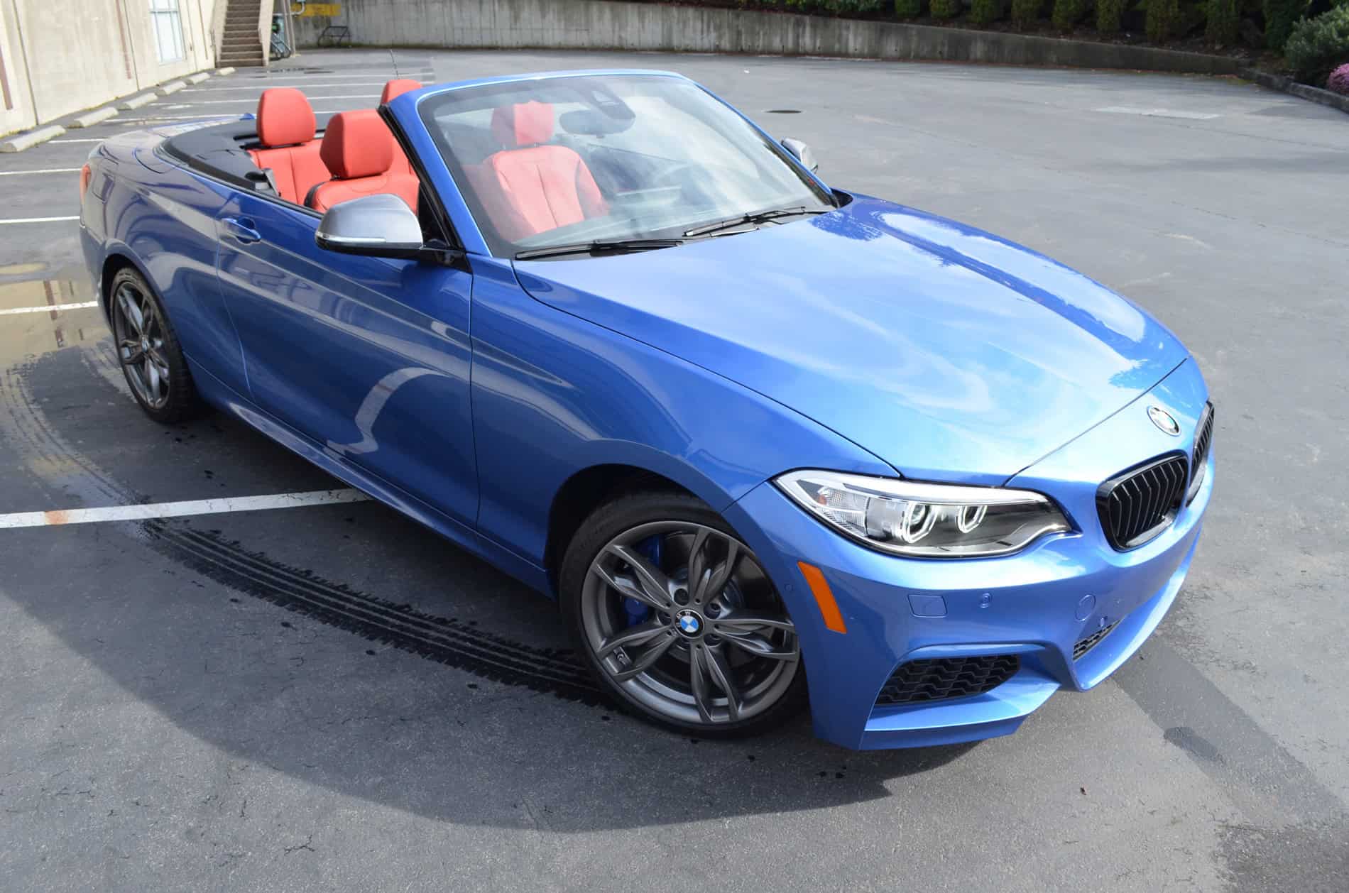 Alas, 8:30am arrived and I am now ready to drive a fully equipped M235i xDrive Convertible in place of the less expensive rear-wheel drive solid roof variant. I’m handed the keys and Adam says “the Superman M235 is just outside.” Why Superman? Because of the Estoril Blue exterior color and the Coral Red interior leather of course.