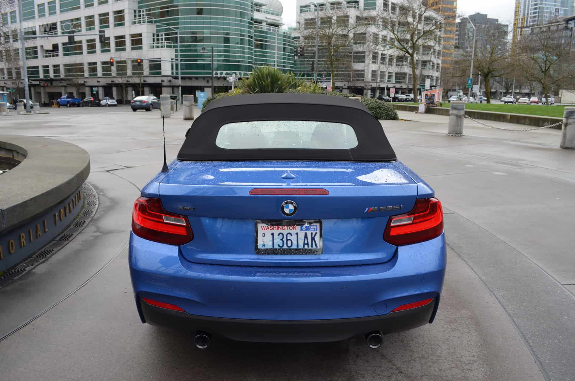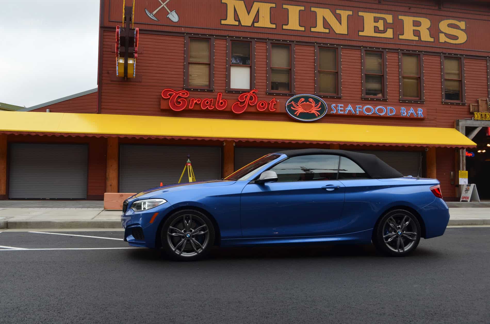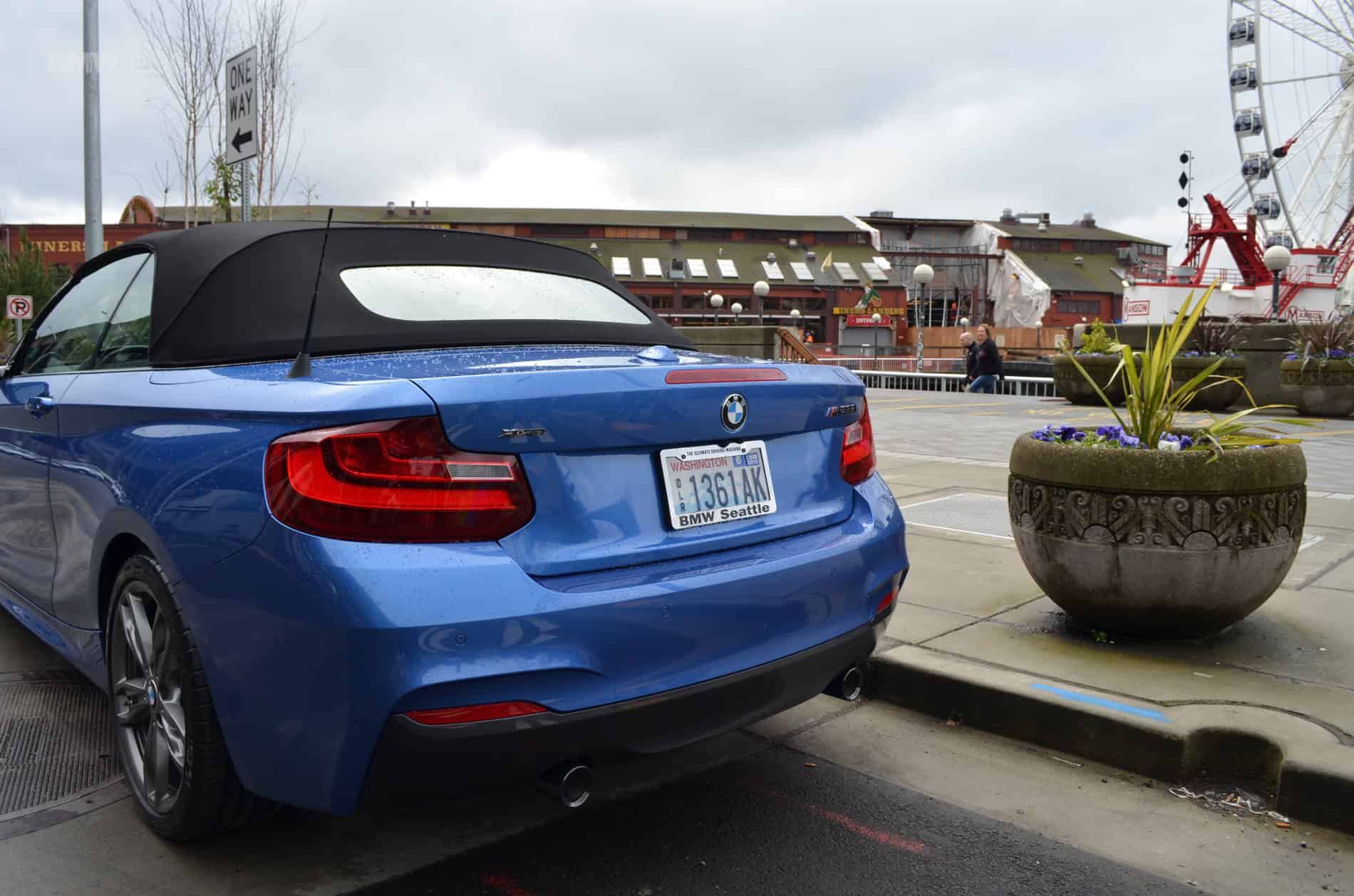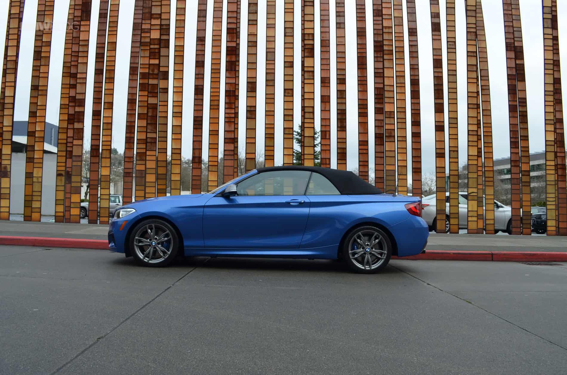 Alas, 8:30am arrived and I am now ready to drive a fully equipped M235i xDrive Convertible in place of the less expensive rear-wheel drive solid roof variant. I’m handed the keys and Adam says “the Superman M235 is just outside.” Why Superman? Because of the Estoril Blue exterior color and the Coral Red interior leather of course.