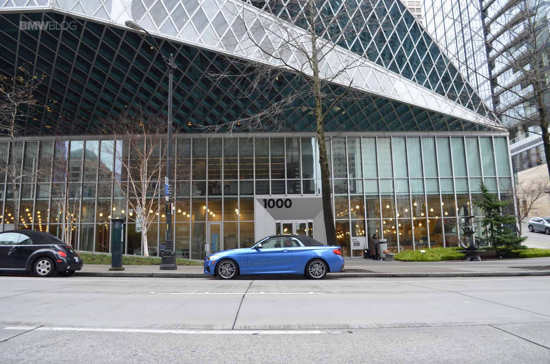 I leave Kirkland and head back towards Seattle, this time in Sport + Mode. The sound the exhaust makes under heavy acceleration is intoxicatingly good and addictive, so I had to contain myself from mashing the loud pedal too often while driving through the tunnels. Steering felt good, and it’s been said before but I believe the Electric Power Steering in the M235i is the best I’ve seen to date. Agile and light in the city, tighter and more direct at higher speeds. Cabin feels clean and purposeful and the seats were very supportive and highly adjustable.