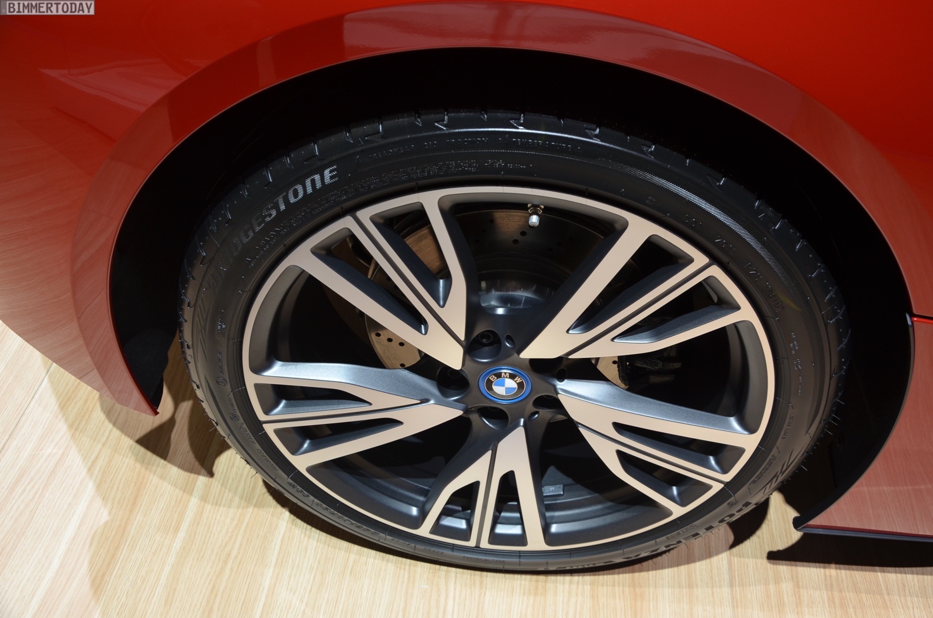 The BMW i8 Protonic Red Edition is painted in a new color called – Protonic Red – which will come with Frozen Grey Metallic contrast accents. This special edition i8 will also come with new W-spoke 470 light-allow wheels painted in Orbit Grey Metallic with hubs painted in Aluminum Matte. The contrast of the car to the wheels make the Protonic Red i8 look very good and very exclusive.