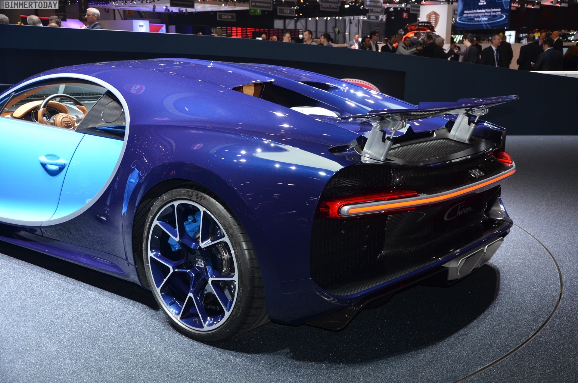 The Chiron is built on a fully carbon-fiber unibody, unlike the Veyron whose rear section was also steel. “If all the fibres used in the monocoque were laid out end to end, they would stretch nine times the distance between the earth and the moon,” Bugatti said.