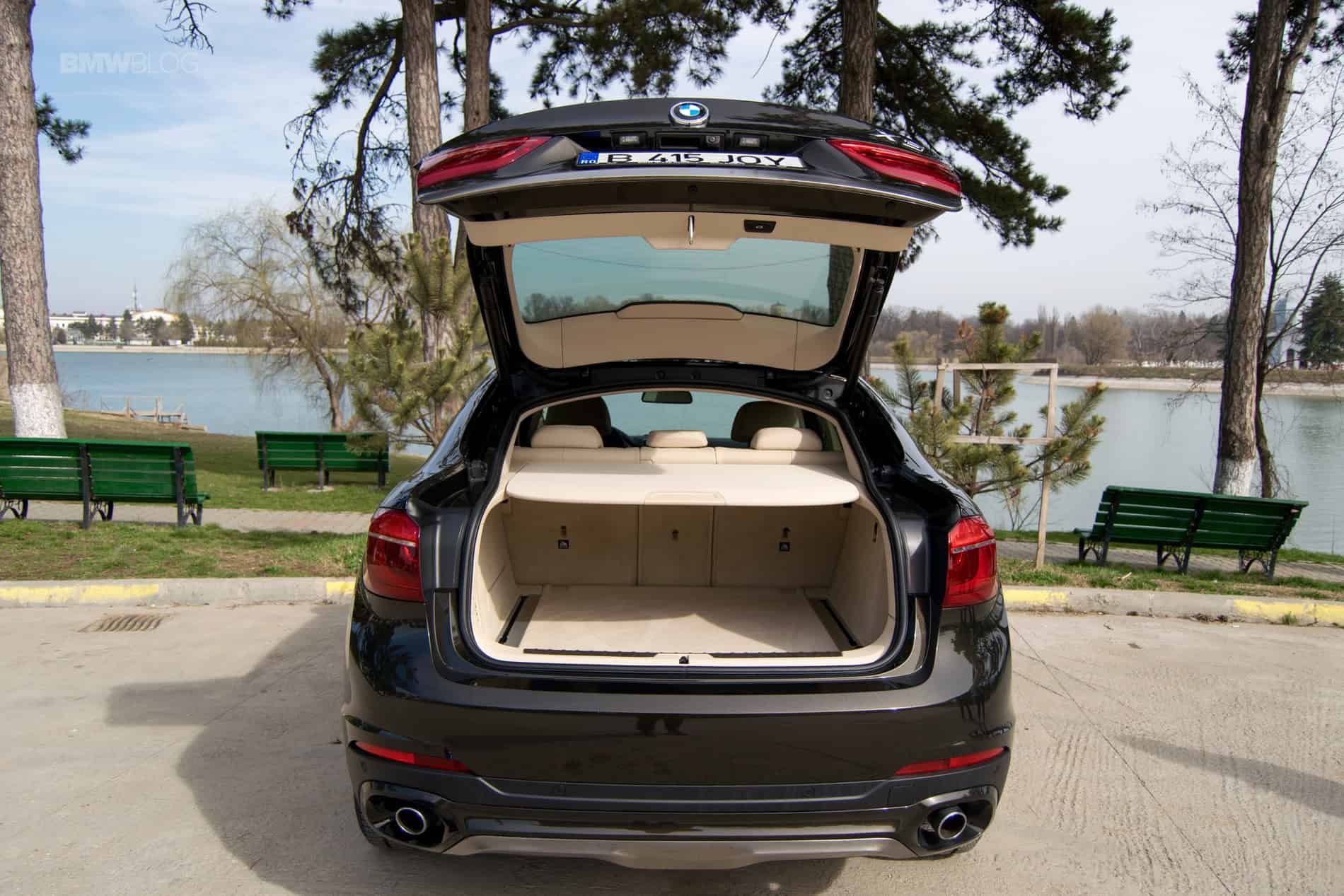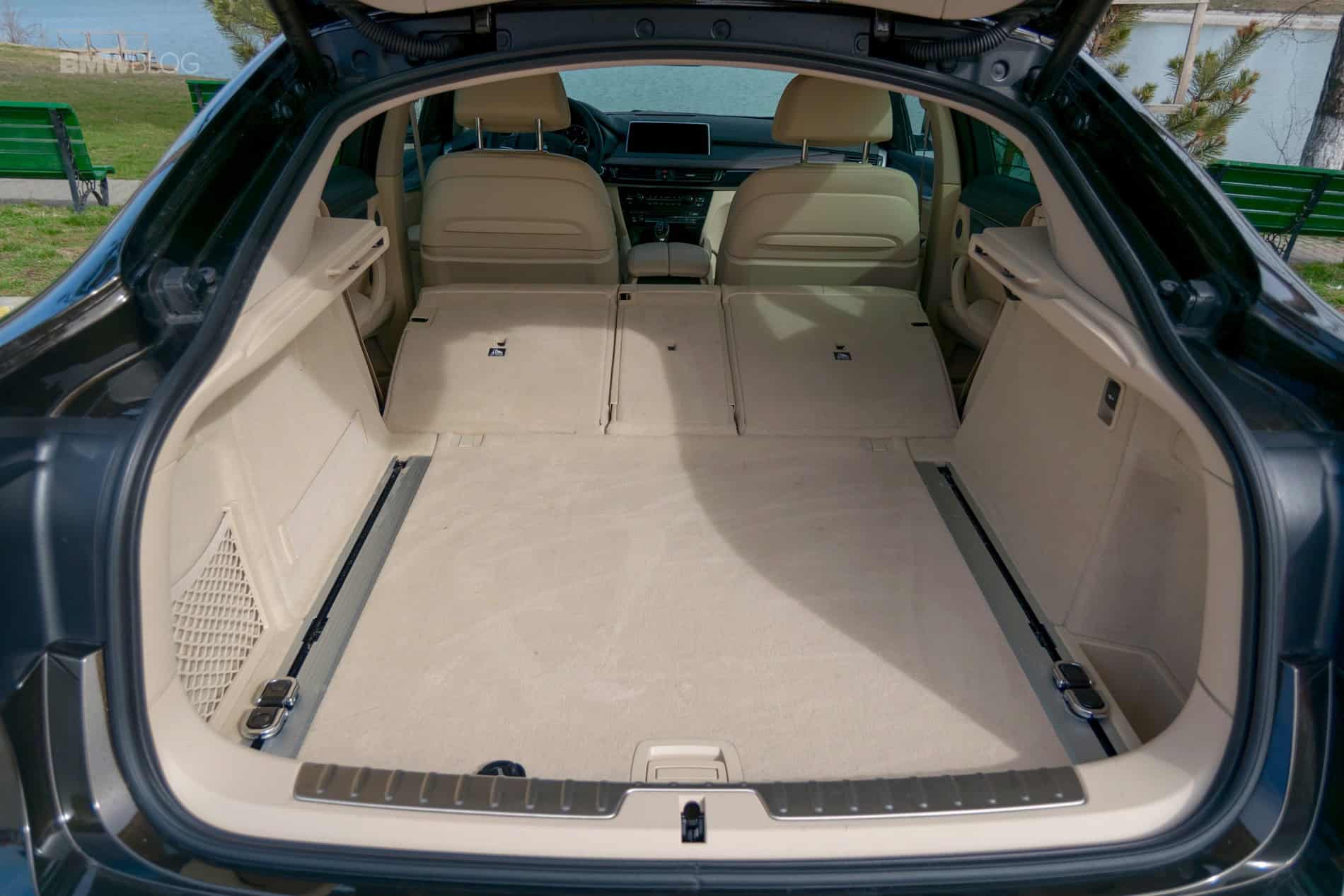 So there’s enough room for four adults, but how about five? Well, we wouldn’t recommend stuffing three adults abreast in the back for longer trips for a number of reasons. Sure, you could do it but nobody would be satisfied with the results. The X6 is best to be experienced by up to four people at a time. This way you’ll also have enough room for luggage in the back, as the sloping line of the rear window does cut into the boot by quite a considerable amount. In total you should have access to about 580 liters (20.5 cubic feet) but that figure doesn’t say much when you read it, does it? In reality, you’ll be able to store about four or five medium sized suitcases in there which should be enough anyhow. There are also other clever storage spaces included throughout the cabin and even under the boot’s floor, an area that’s more generous than meets the eye.