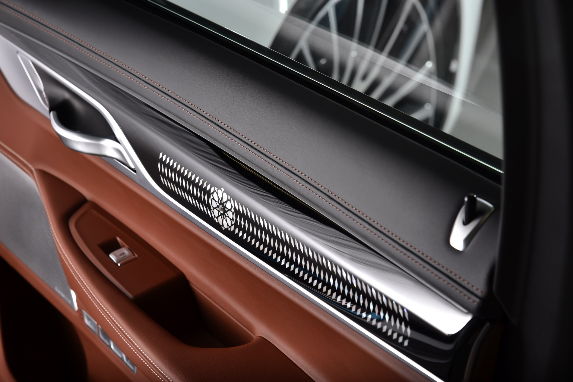 Inside the car, i.e. where comfort is experienced first hand by the customer, a large number of exclusive features emphasize the aesthetics, luxury and elegance of these edition models. The exclusive BMW Individual fine-grain full leather trim Merino in the colour Tartufo as well as the Alcantara roof liner in the same colour contribute considerably towards the vehicle’s ambience. Extremely soft floor mats made from sheared lambskin in Tartufo, storage compartments for cosmetic tissues finished in color-matching leather in both rear doors as well as soft, Alcantara covered cushions in the color Tartufo bearing the embroidered lettering “Solitaire” or “Master Class” respectively all enhance the luxurious character of the BMW 750Li xDrive. A bar compartment with tulip sparkling wine glasses and an integrated cooling box in the rear compartment center console are available for refreshments, whilst a silver-plated plaque on the cent re console discreetly informs passengers that they are traveling in a highly exclusive edition model that has been produced only seven times. However, the highlight of these special edition models are undoubtedly the five optional diamond inserts in the interior trims on the dashboard and doors.